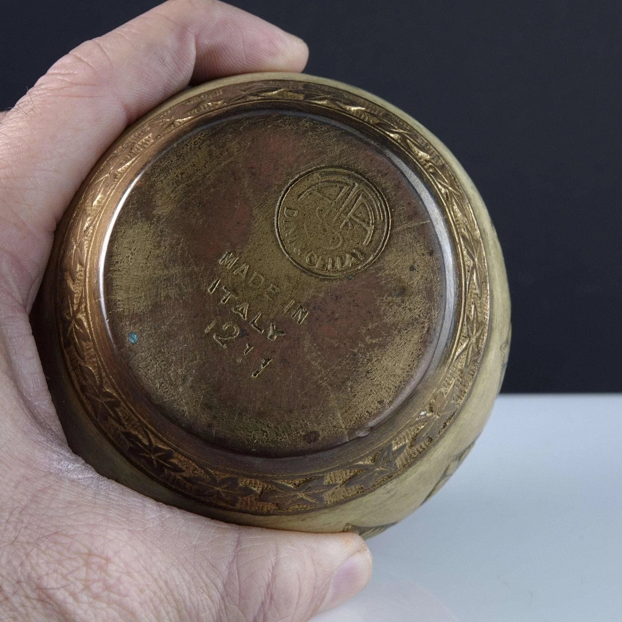 Dini & Cellai 意大利青铜安装赤土陶罐。 20世纪初的好作品。 3.5 英寸高 x 4 英寸宽,无损坏。