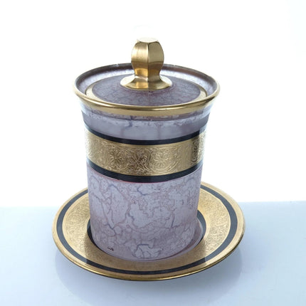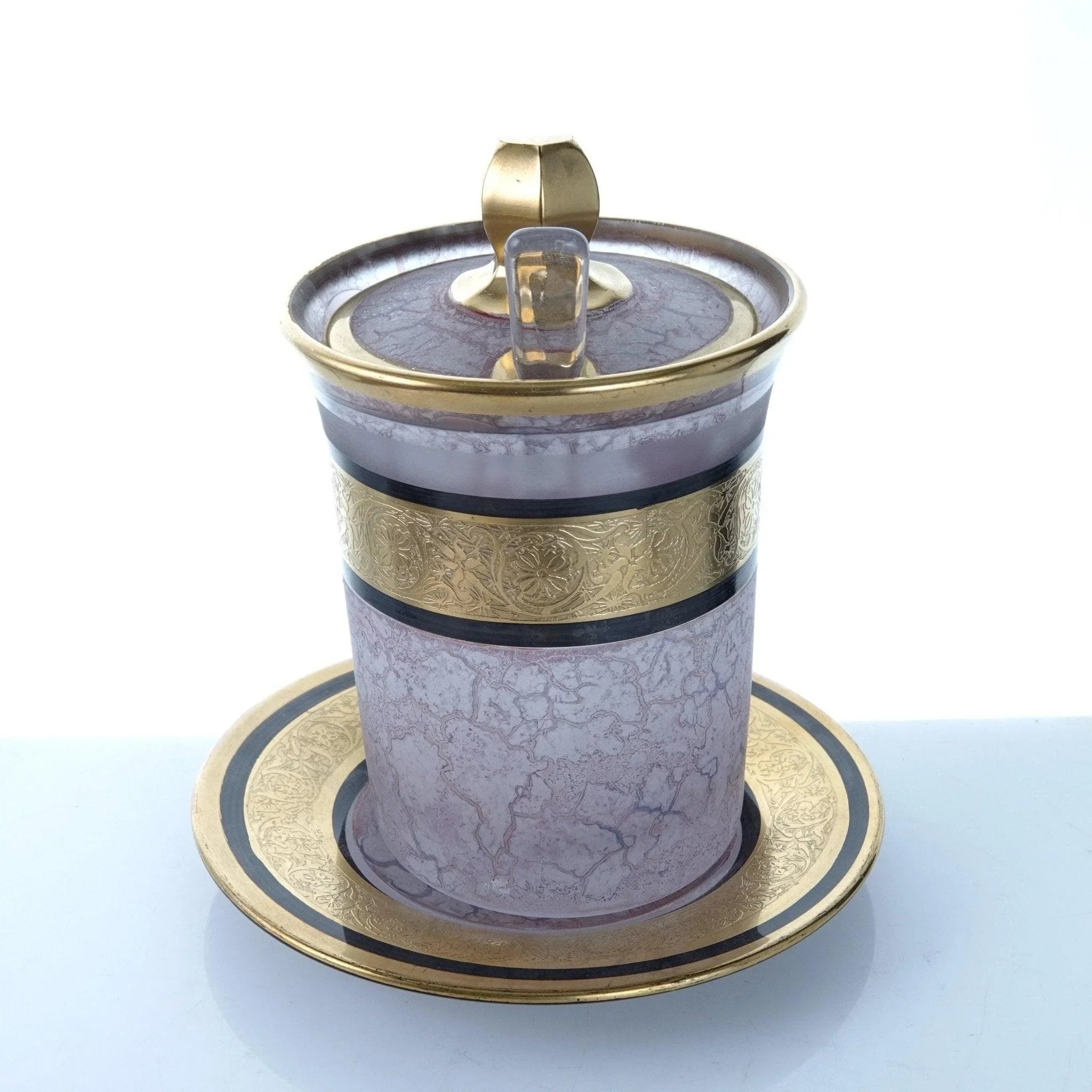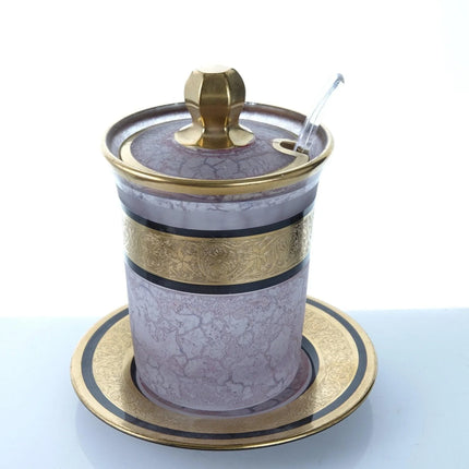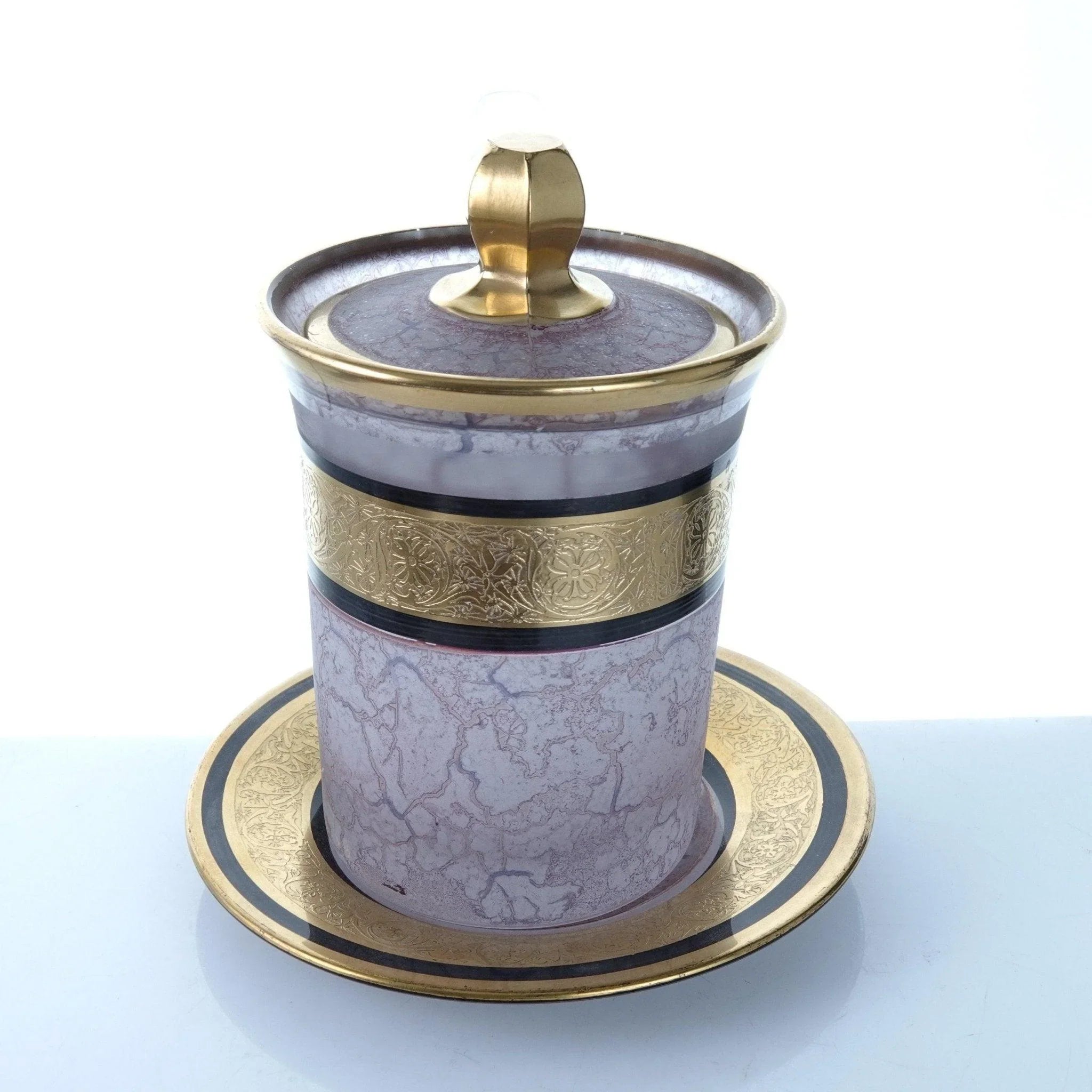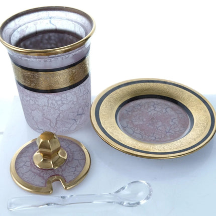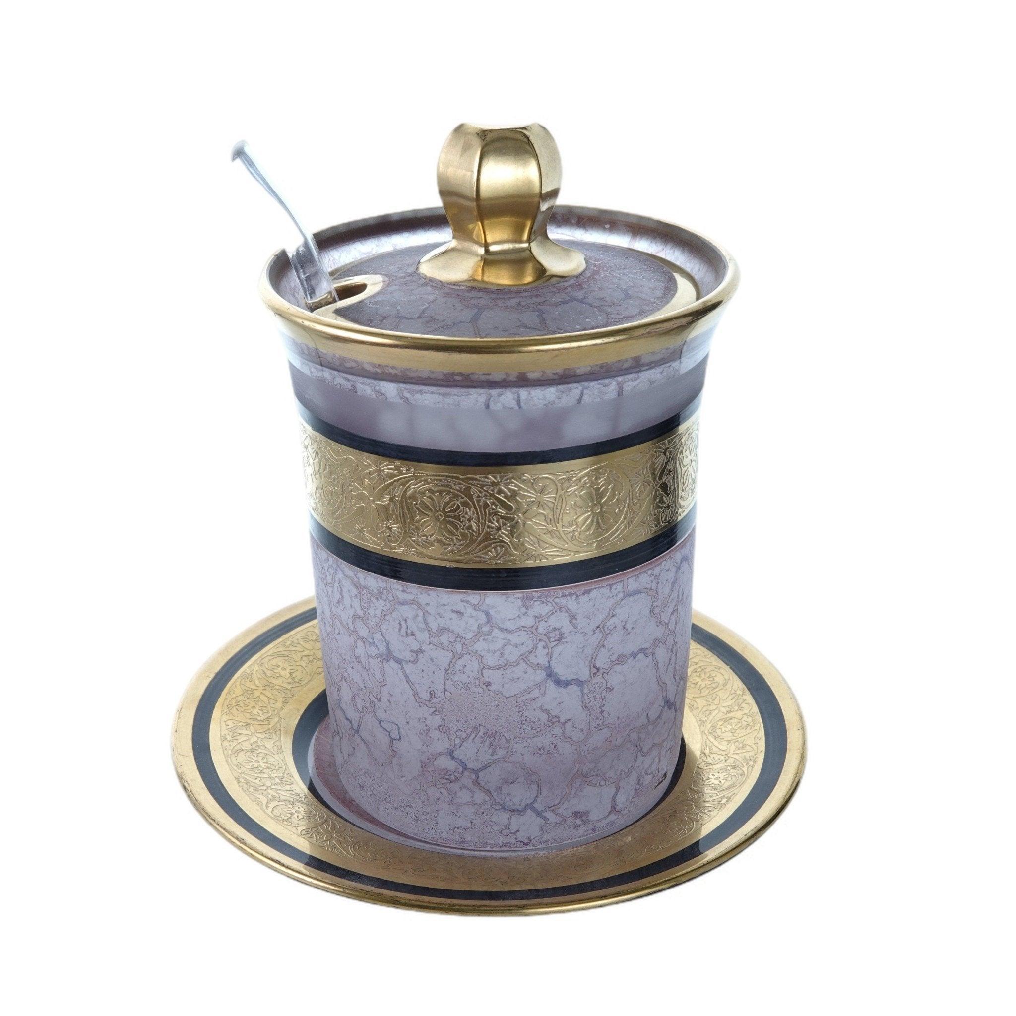 1920 年代的 Heisey 果酱和底板采用罕见的大理石纹缎处理和皮卡德/明顿金