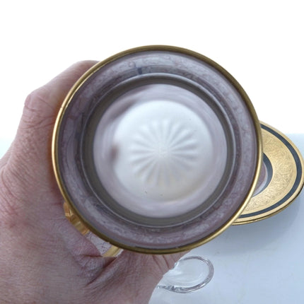 1920 年代的 Heisey Marmalade 和底板采用罕见的大理石纹缎面处理和 Pickard/Minton 金色。即使不是一件同类作品,也是非常不寻常的。底板和果酱内标有 heisey 标记。 5.5 英寸高,4.5 英寸底板,无损坏或明显磨损。我发现了一些相关信息,它是 Heisey 在 1923 年至 1925 年间为马萨诸塞州温彻斯特的 RV Pettingell 主人定制设计和制造的,并通过纽约的 John J. Hines 出售。