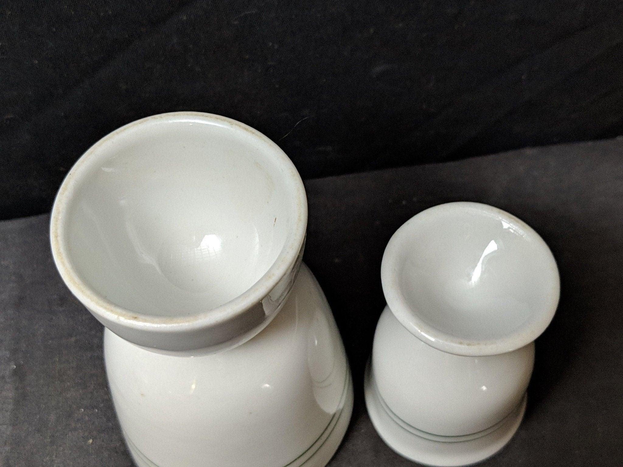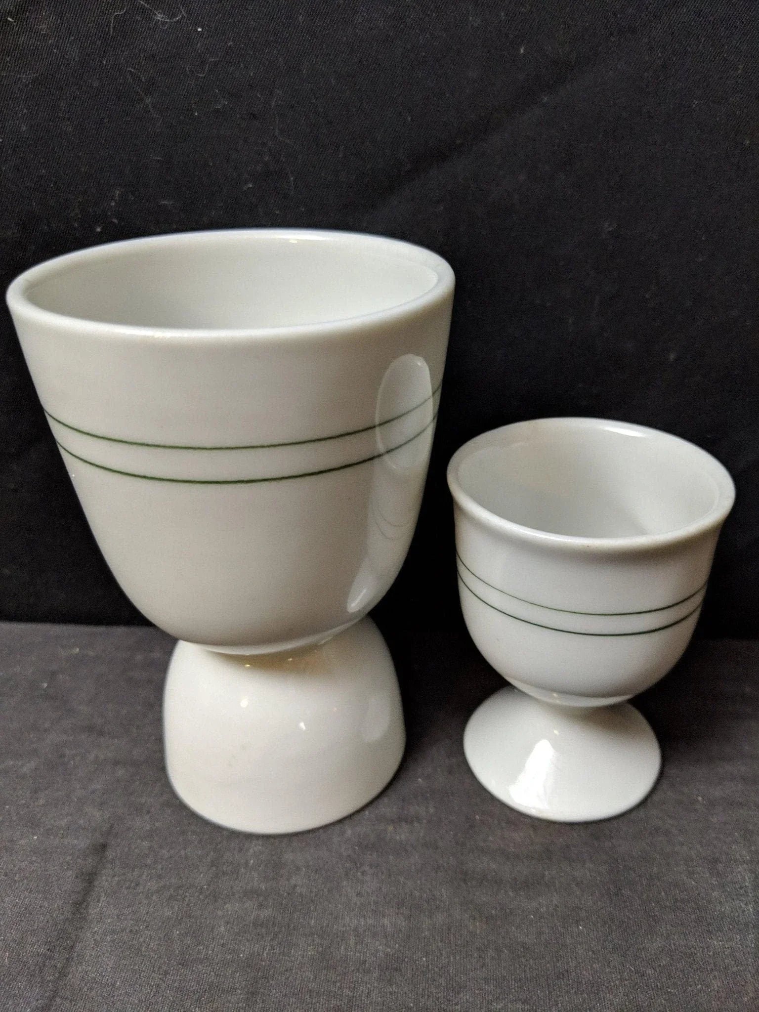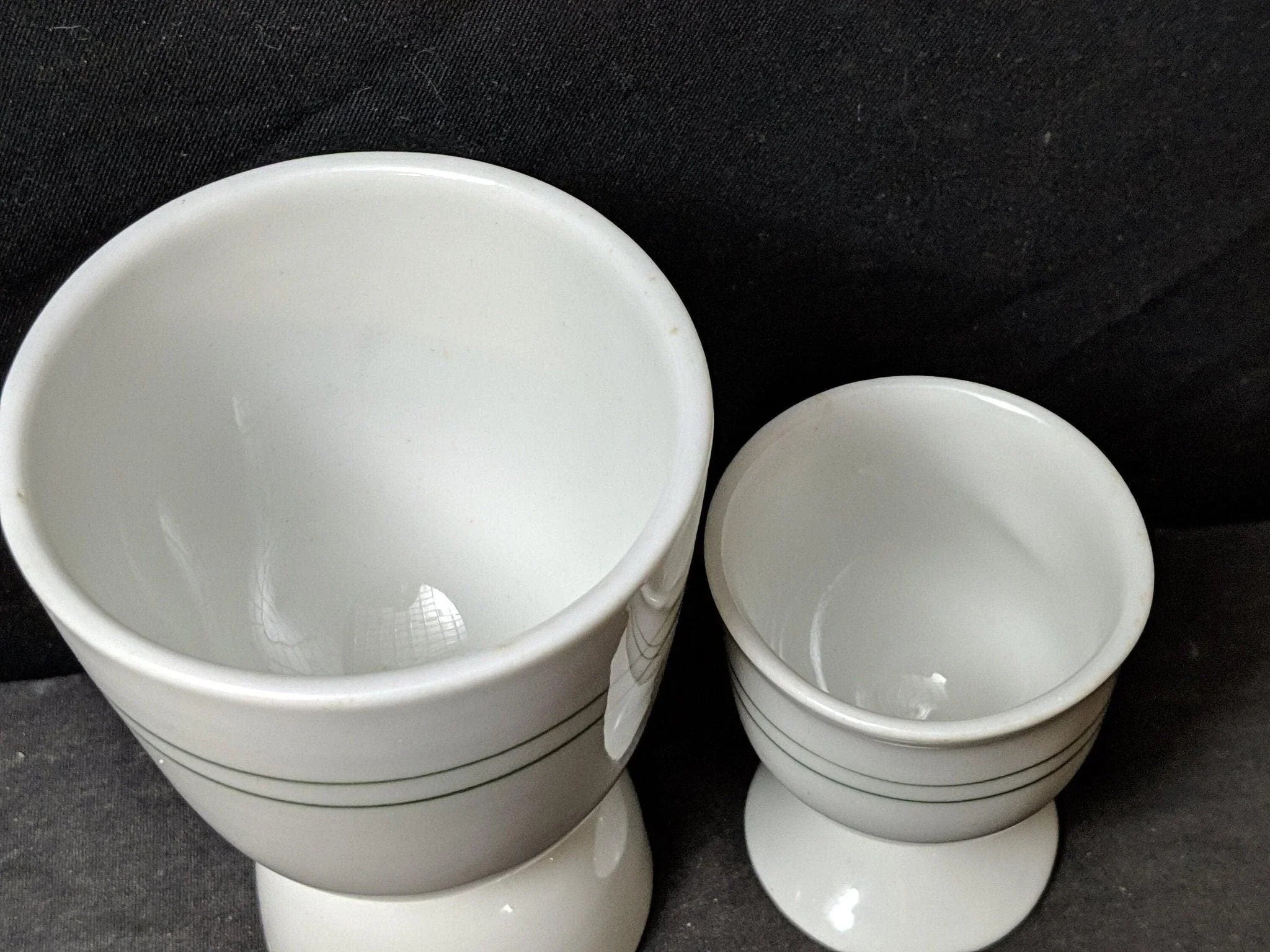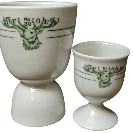 BPOE No 30 New Orleans Elk Lodge restaurant China Egg Cups early 20th century,<br>very uncommon. Small one shows a short hairline on exterior that doesn't go<br>through to interior. So it's really just stained crazing. No other issues.<br>Selling both.