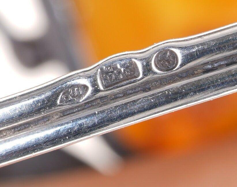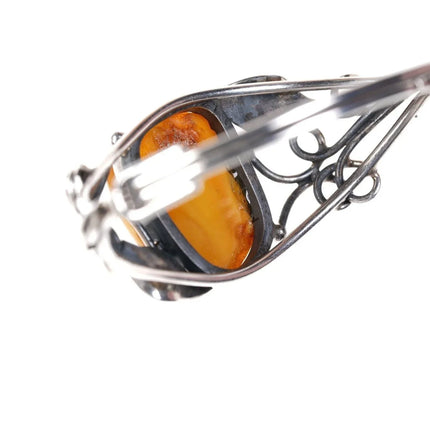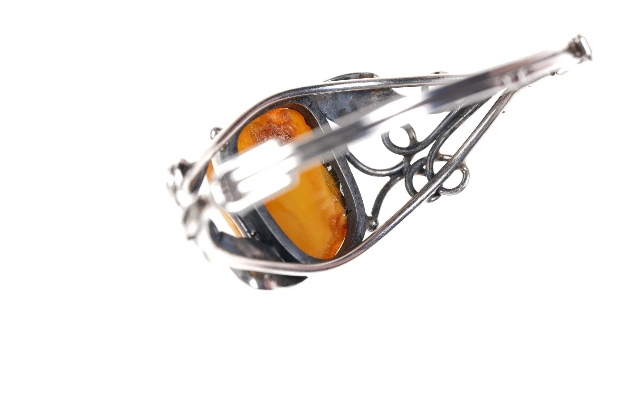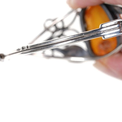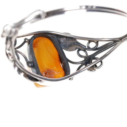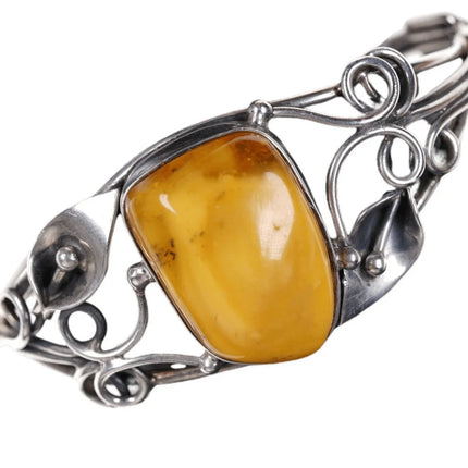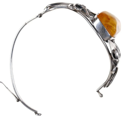 奶油糖琥珀纯银新艺术风格手镯。手镯底部的标志如上图所示。经过英镑标记和测试。非常高品质的天然琥珀手链,没有任何问题。内径 7 英寸,中心宽 1 1/8 英寸。 28.3克。