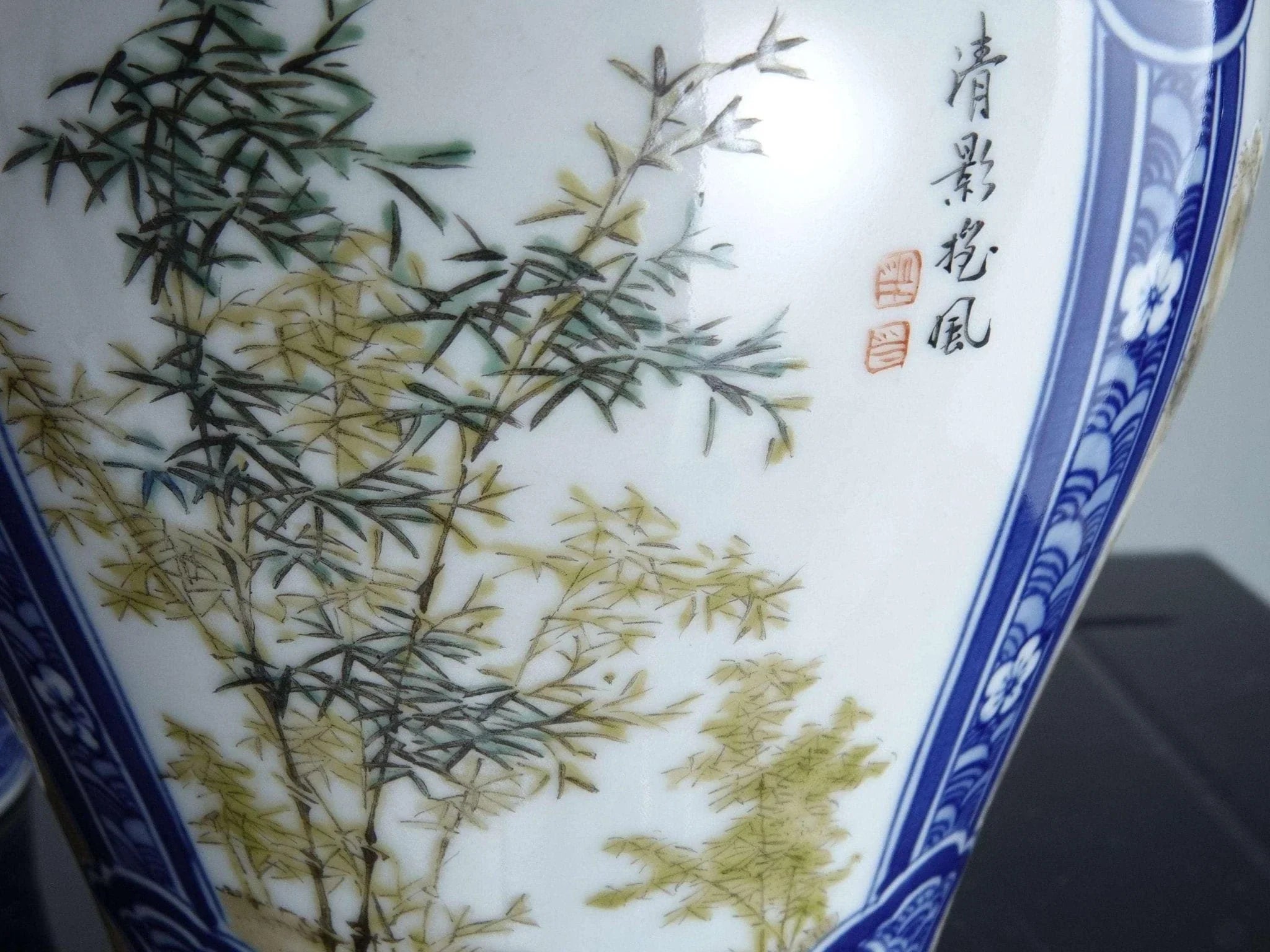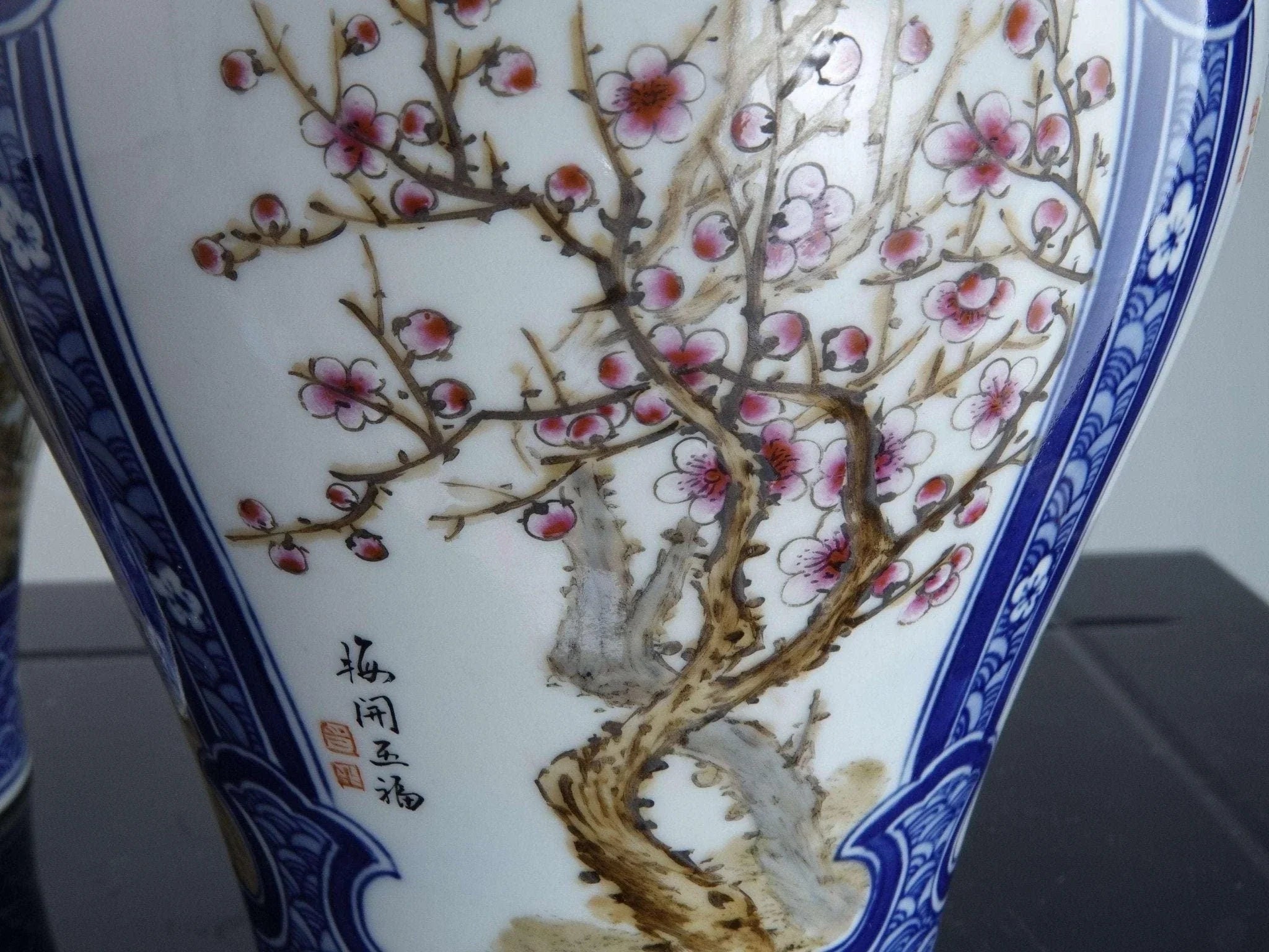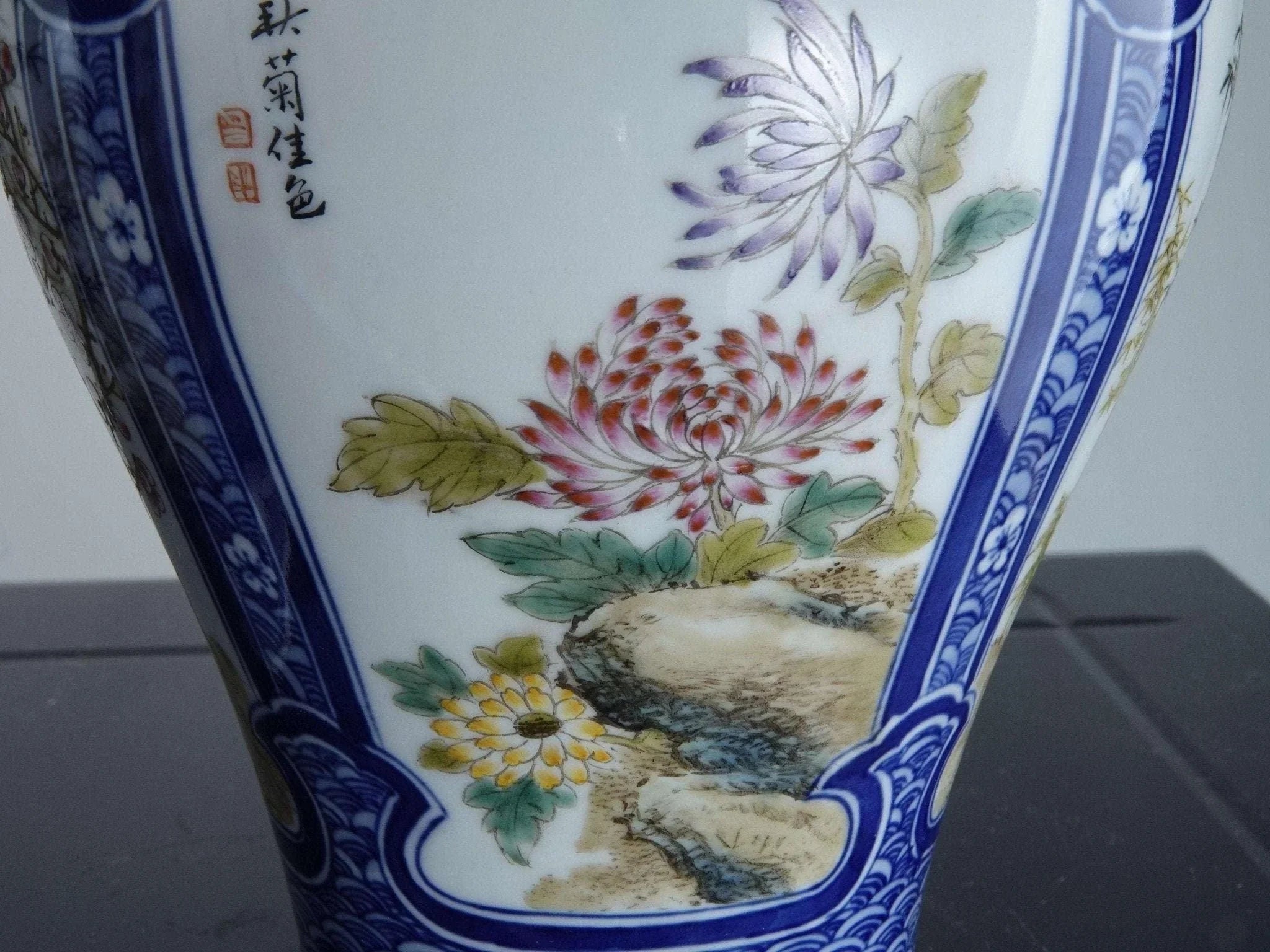中国工艺时期的瓷花瓶。 20 世纪第三季度的高品质鞋子,全手绘。 8 英寸高 x 5.5 英寸宽。无裂纹、缺口或修复。