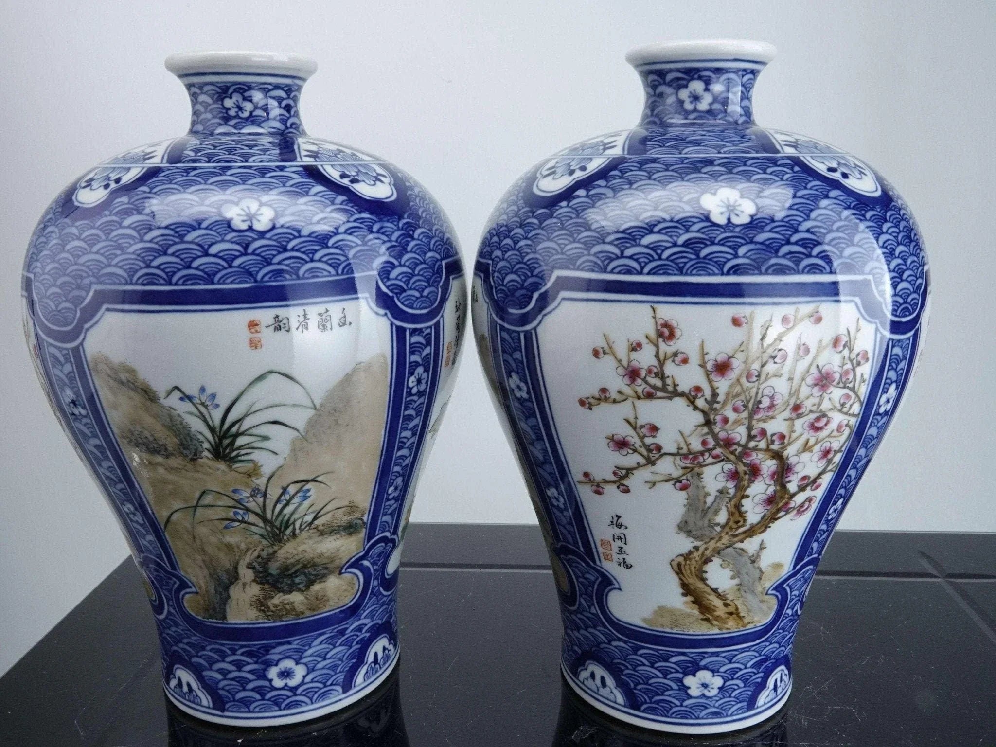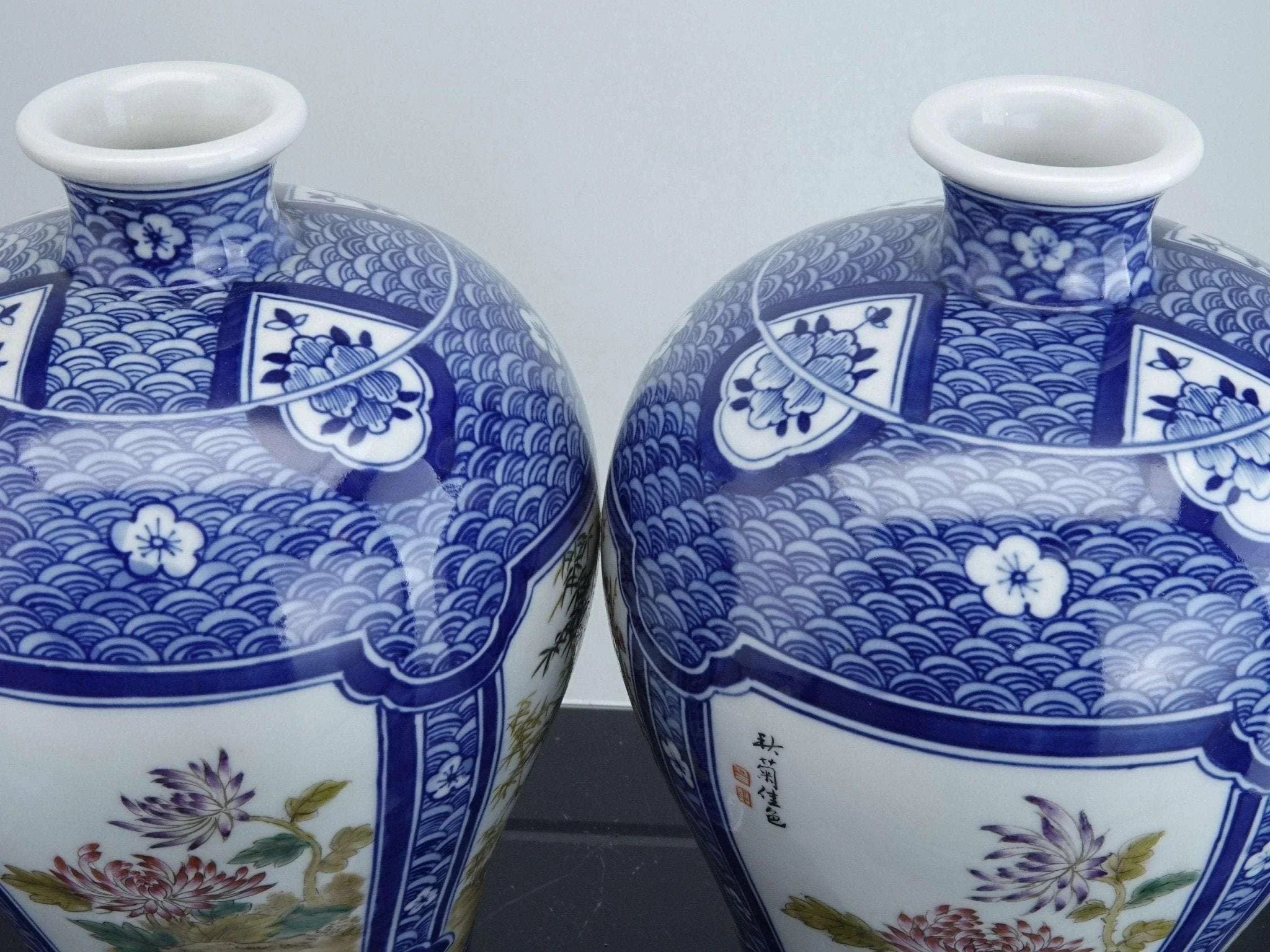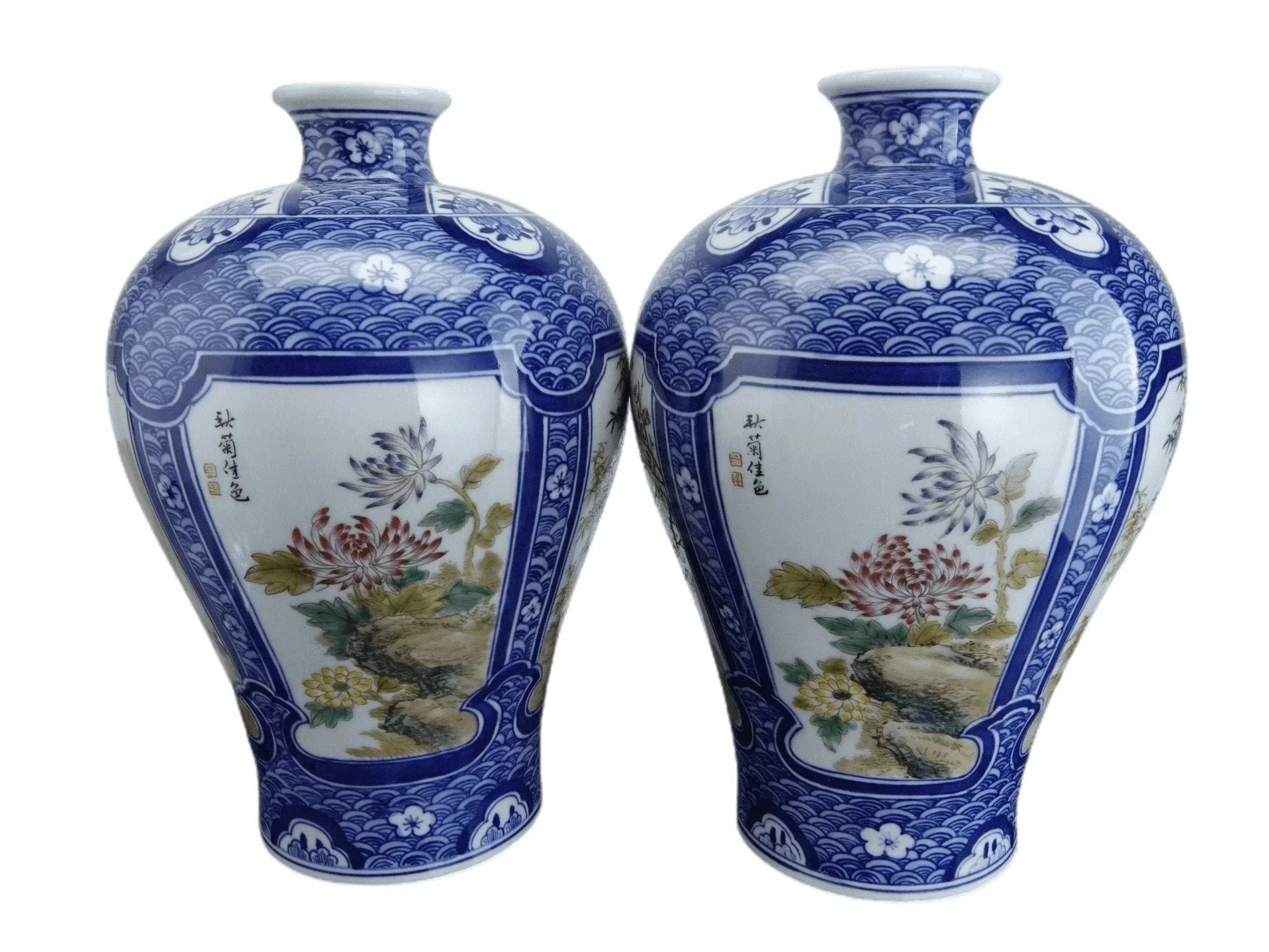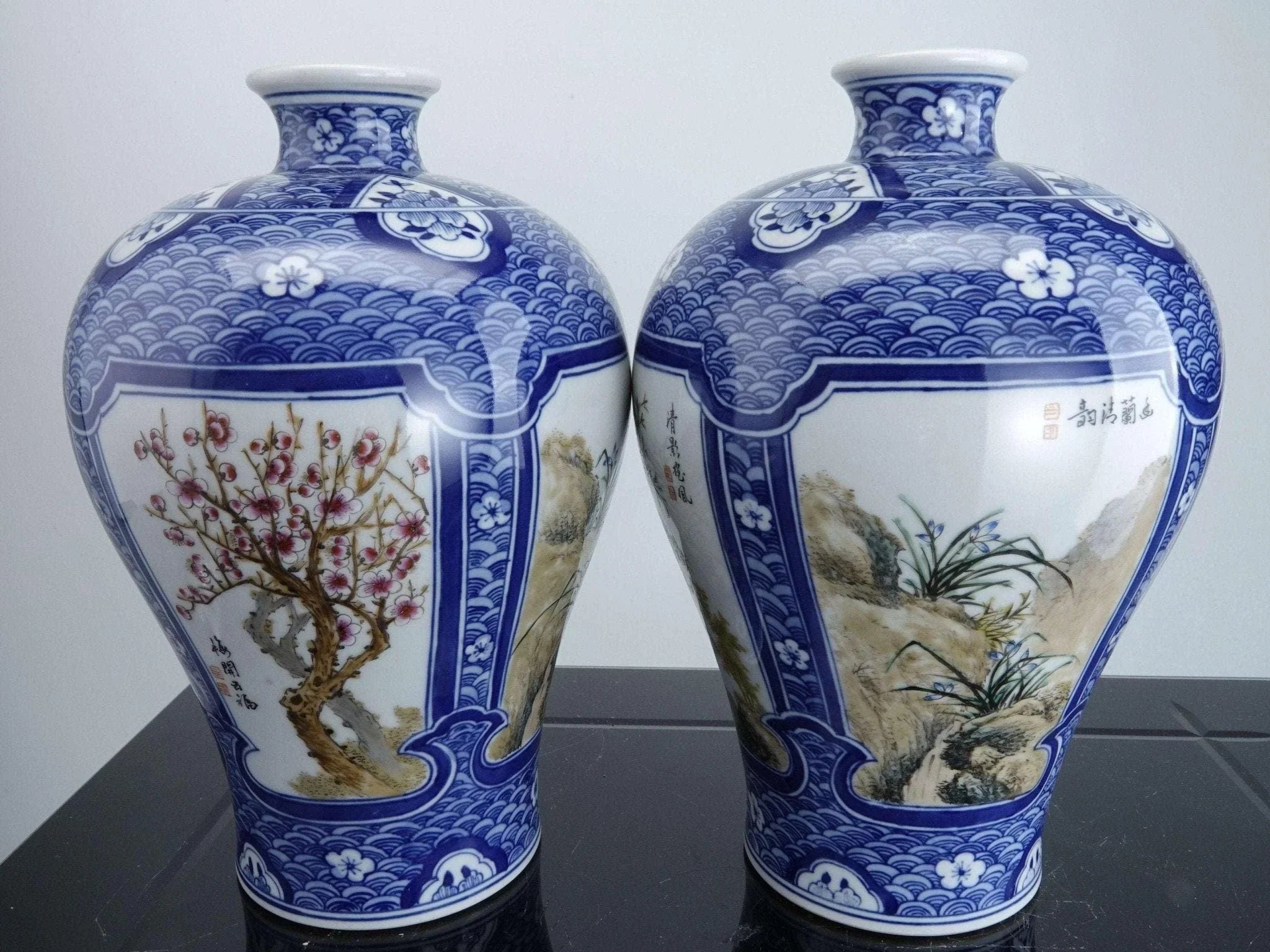 中国工艺时期的瓷花瓶。 20 世纪第三季度的高品质鞋子,全手绘。 8 英寸高 x 5.5 英寸宽。无裂纹、缺口或修复。