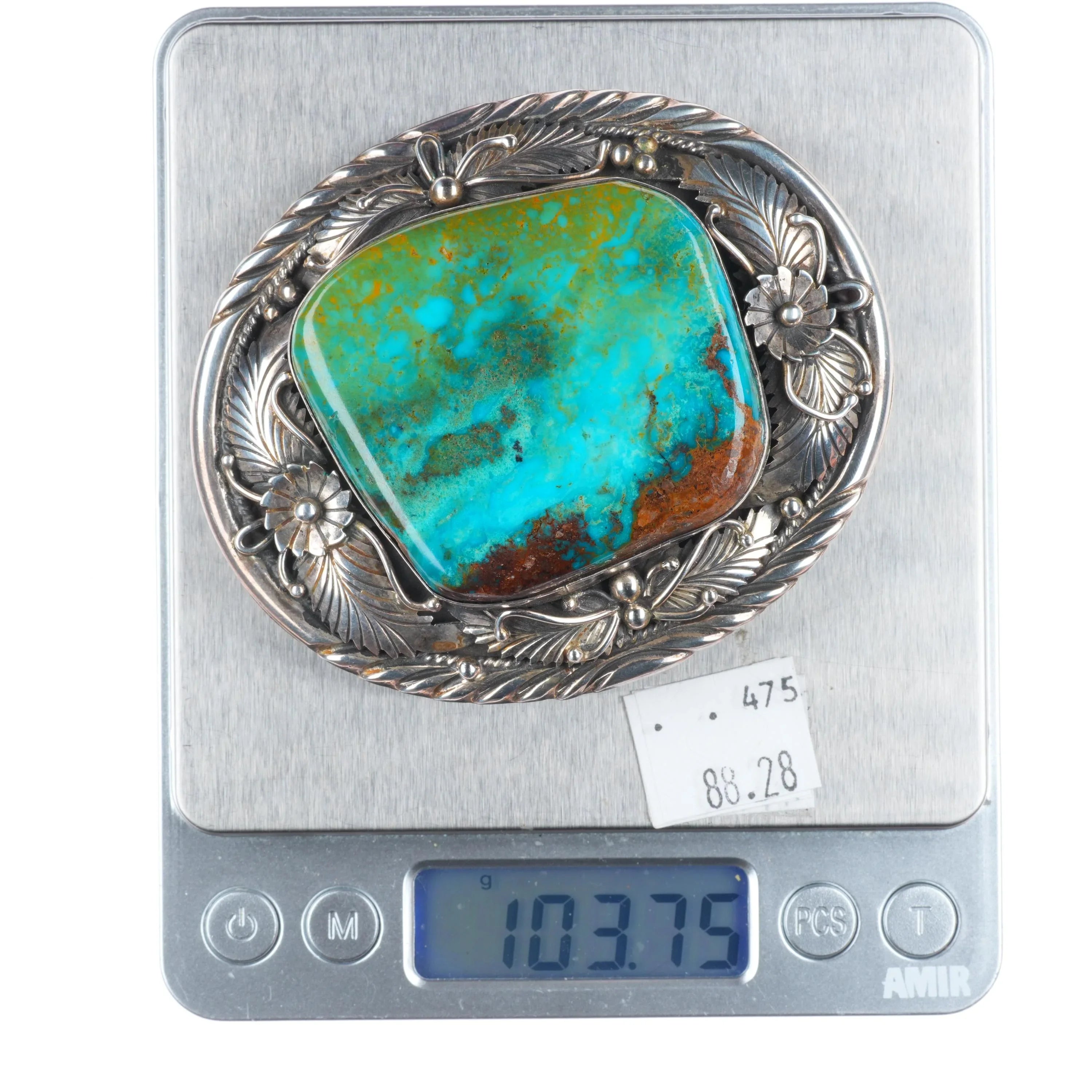 FNG Navajo sterling silver vintage belt buckle w/large gorgeous turquoise