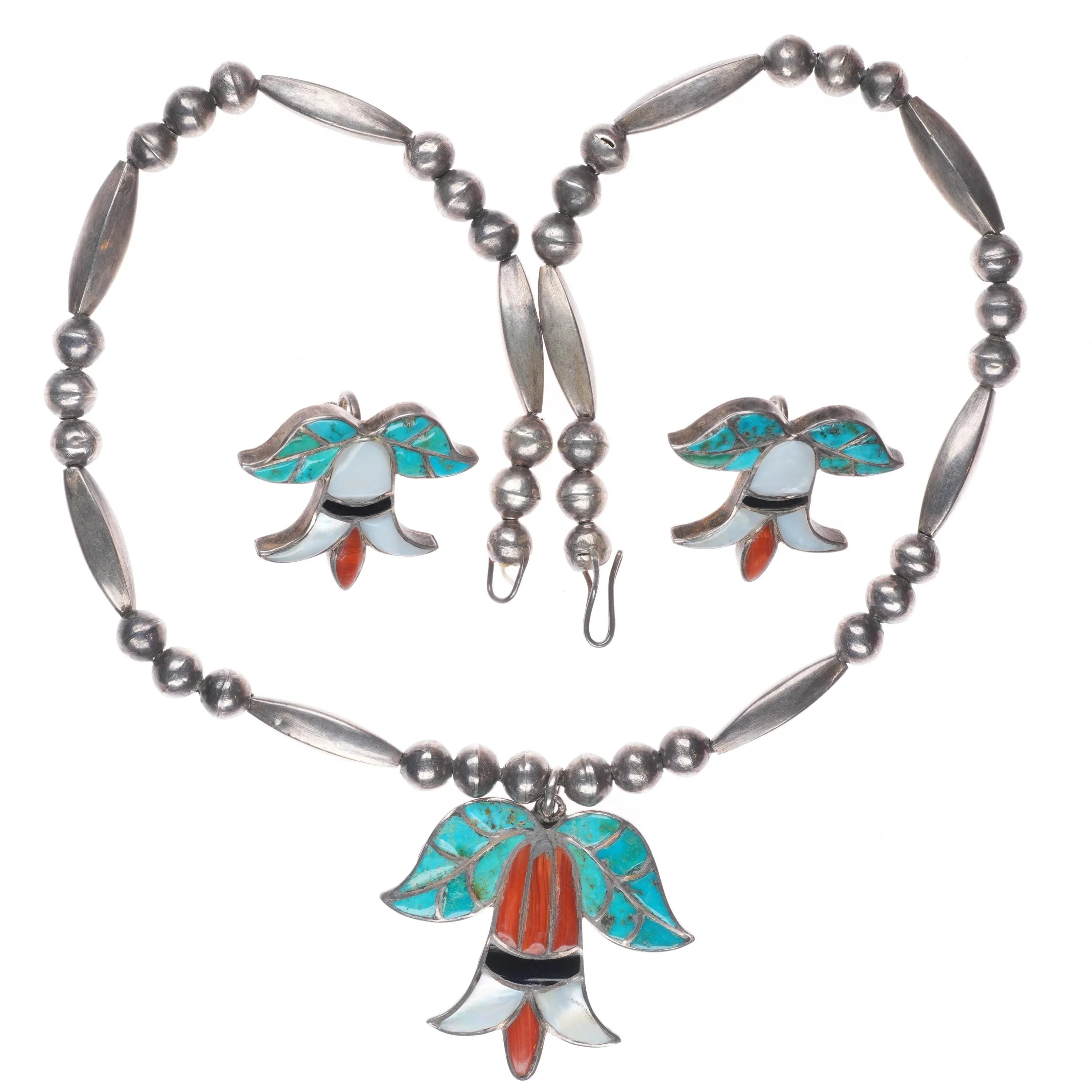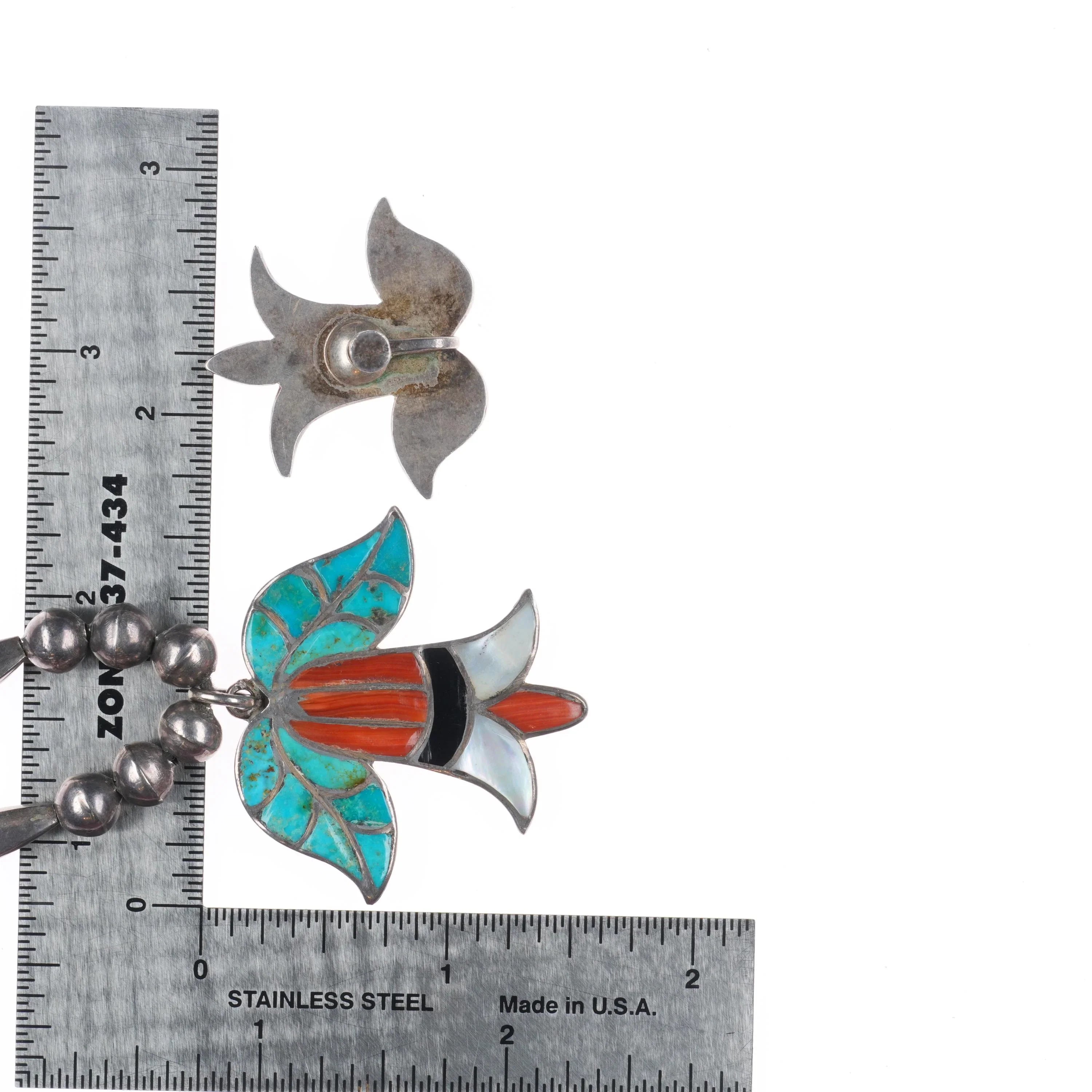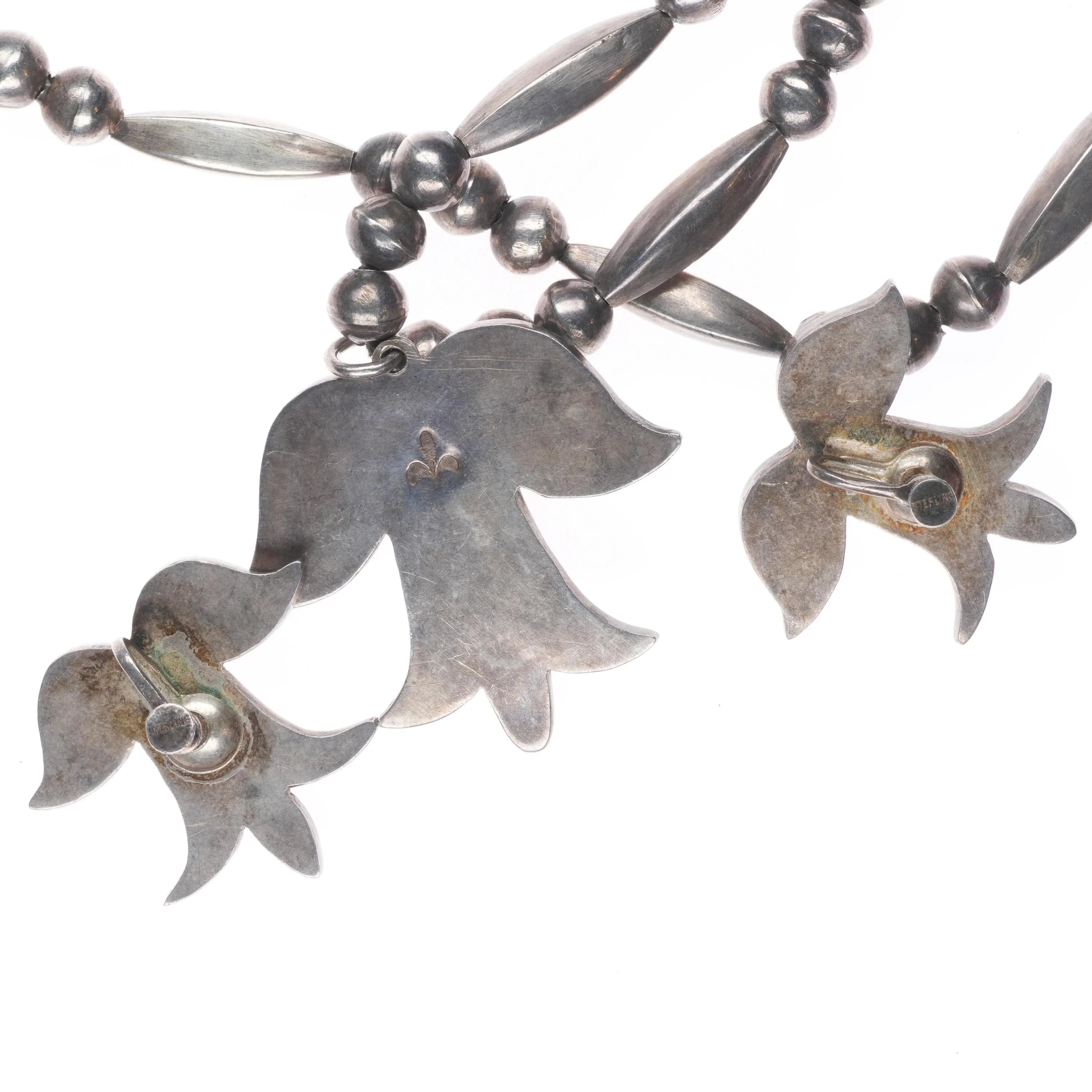 Frank Vacit Zuni sterling silver flower necklace pendant/screw back earrings. Solid sterling silver tested and guaranteed with weight and measurements in the pictures. No issues, circa 50‘s-60‘s.