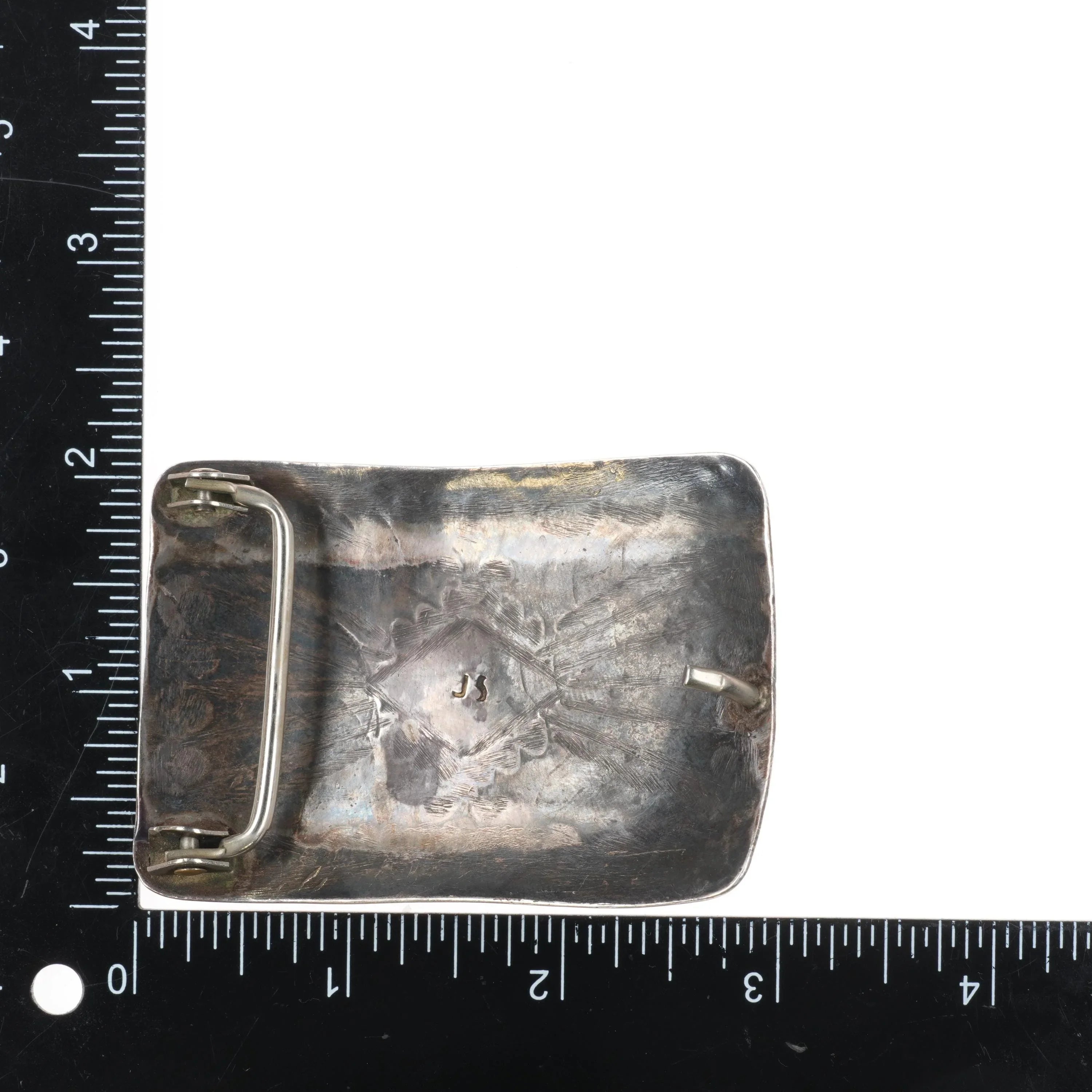 JS Vintage Navajo sterling silver turquoise belt buckle hand stamped