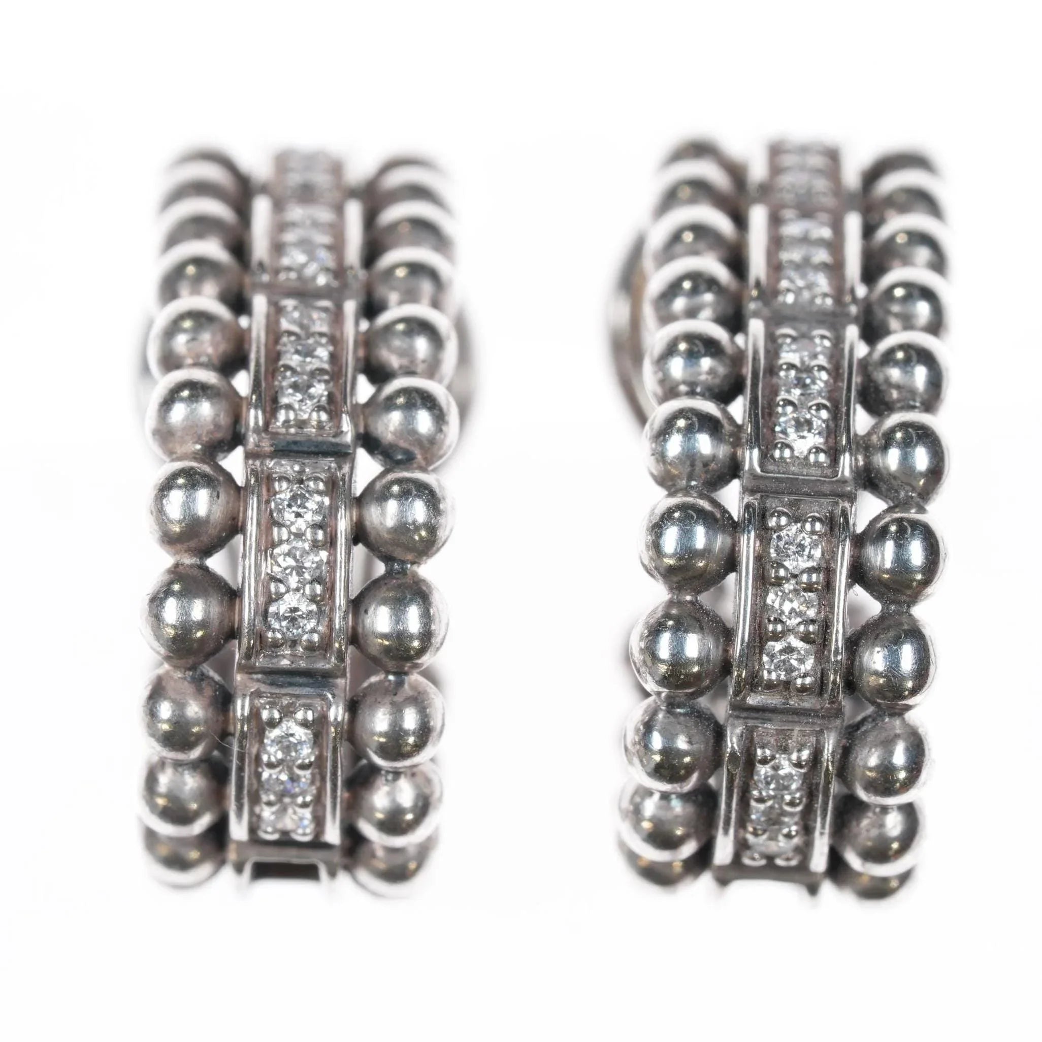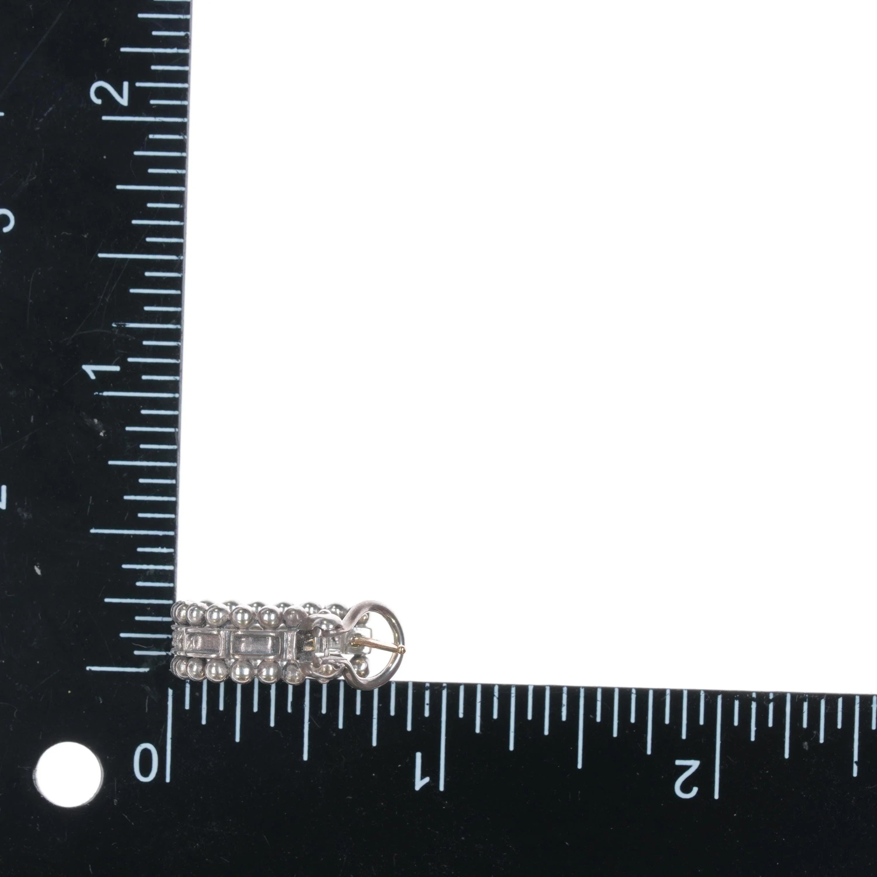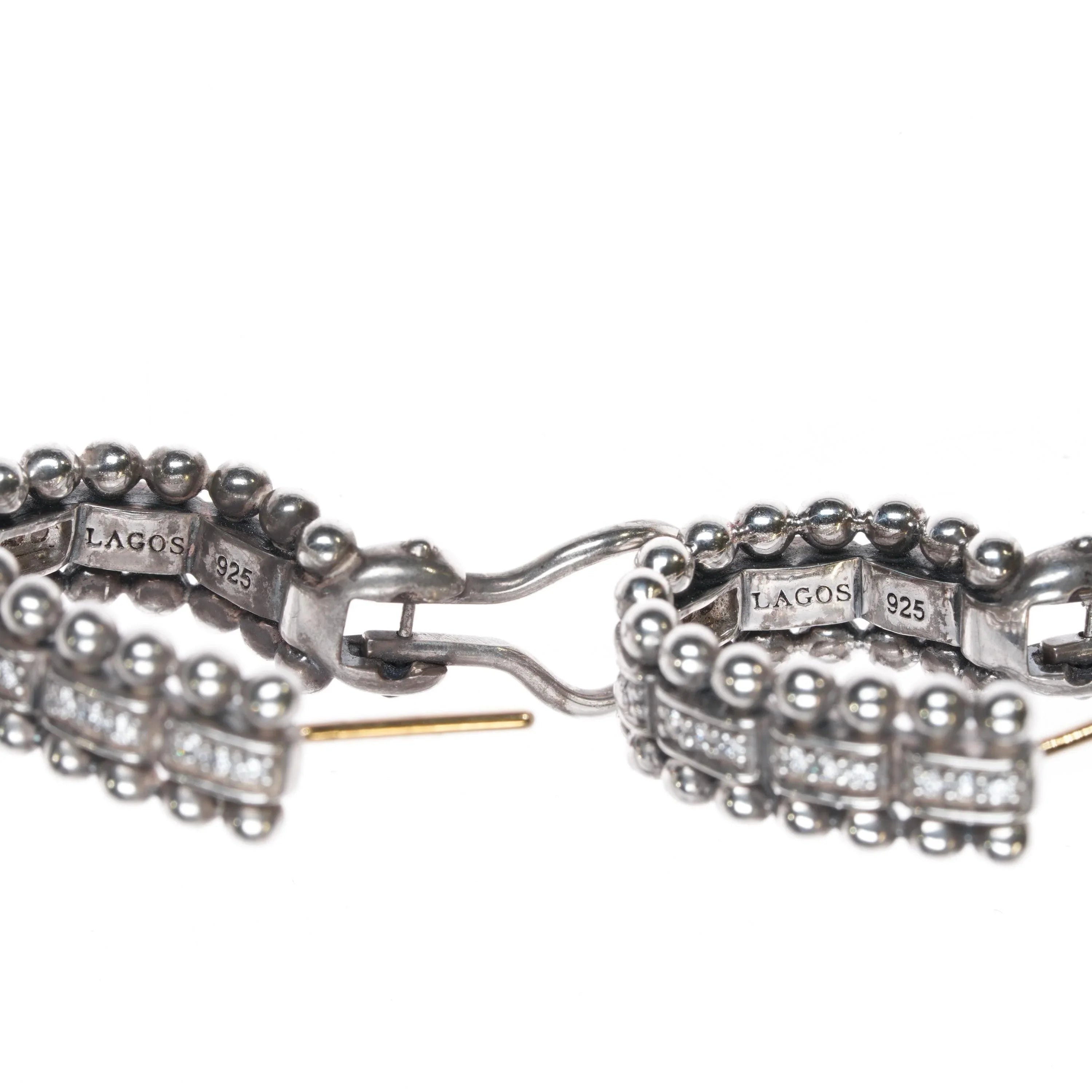LAGOS Caviar Spark Diamond Huggie Earrings Sterling/14k posts. White diamonds in sterling silver and solid 14k gold posts. Please see pictures for weight and measurements. No issues, pre-owned with little wear. Guaranteed authentic, these retail for 1k.