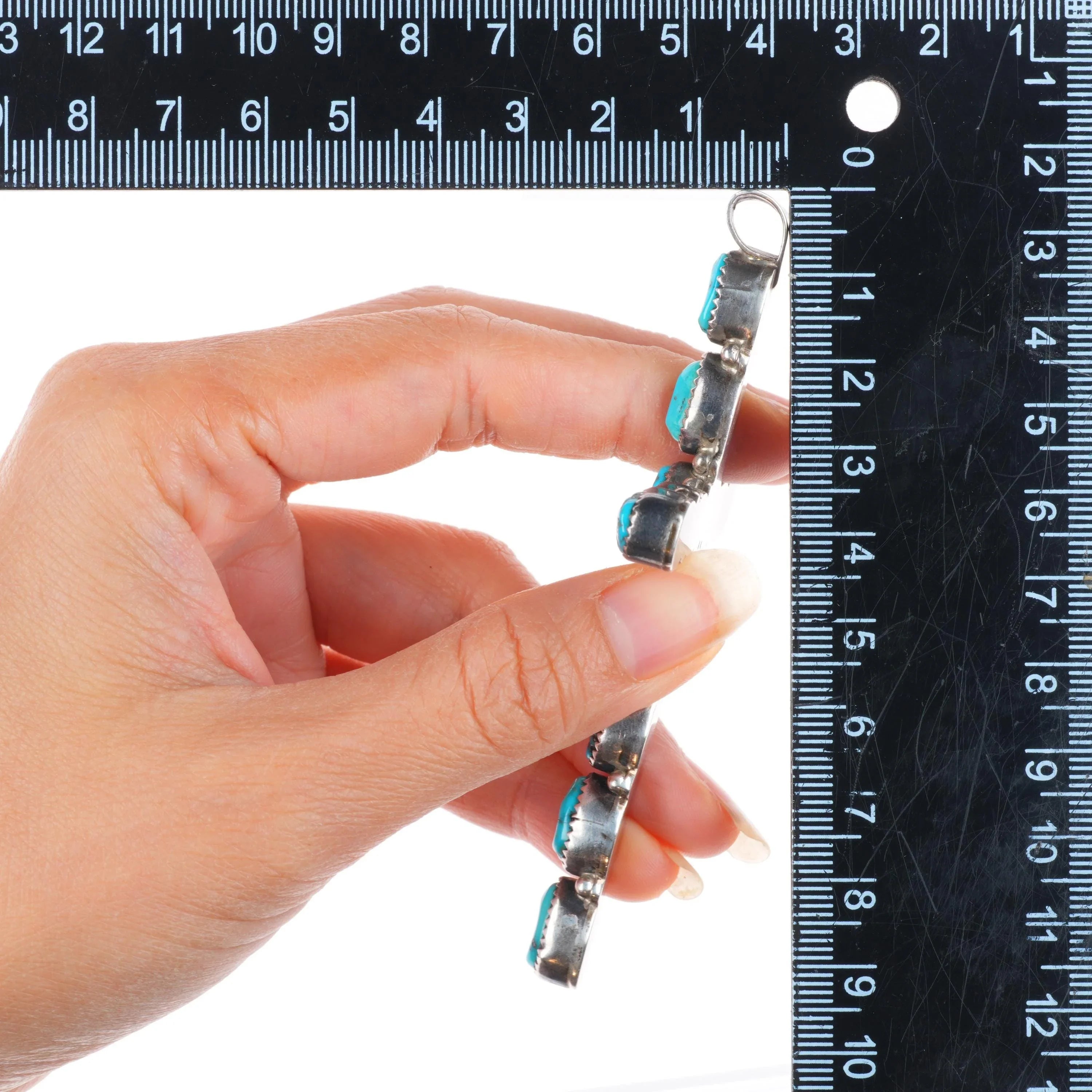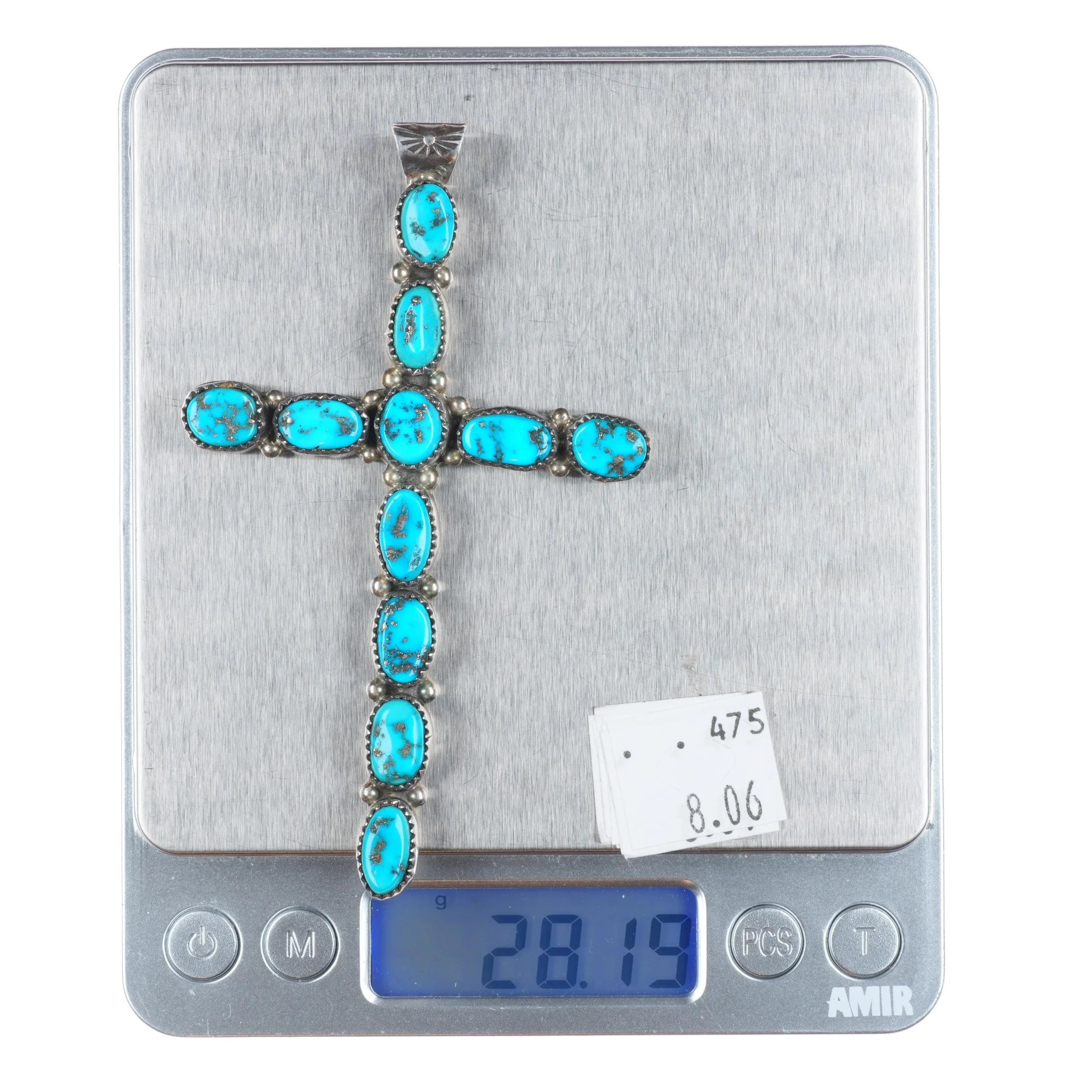 Large BM Navajo sterling silver Kingman turquoise row cross pendant
