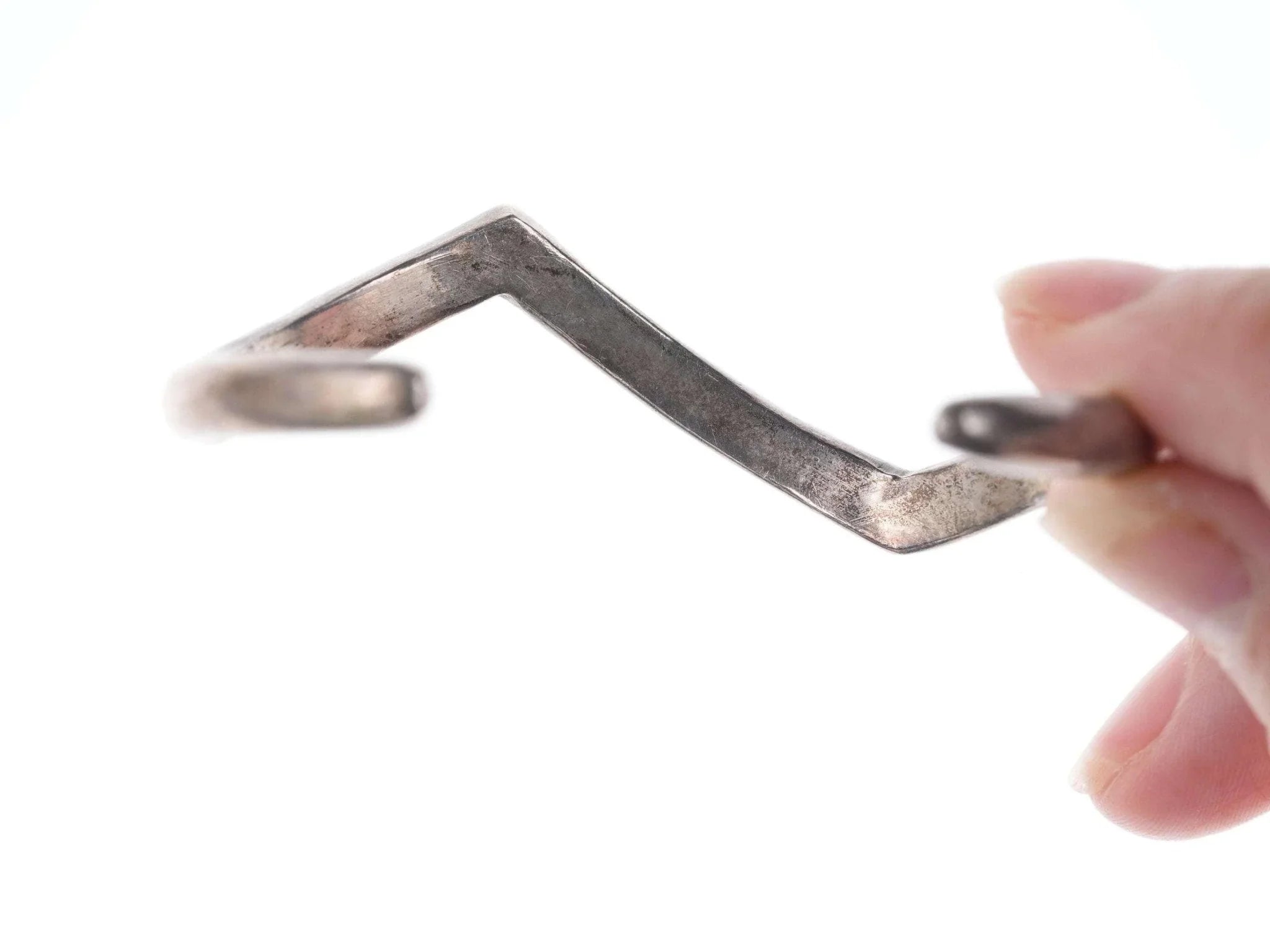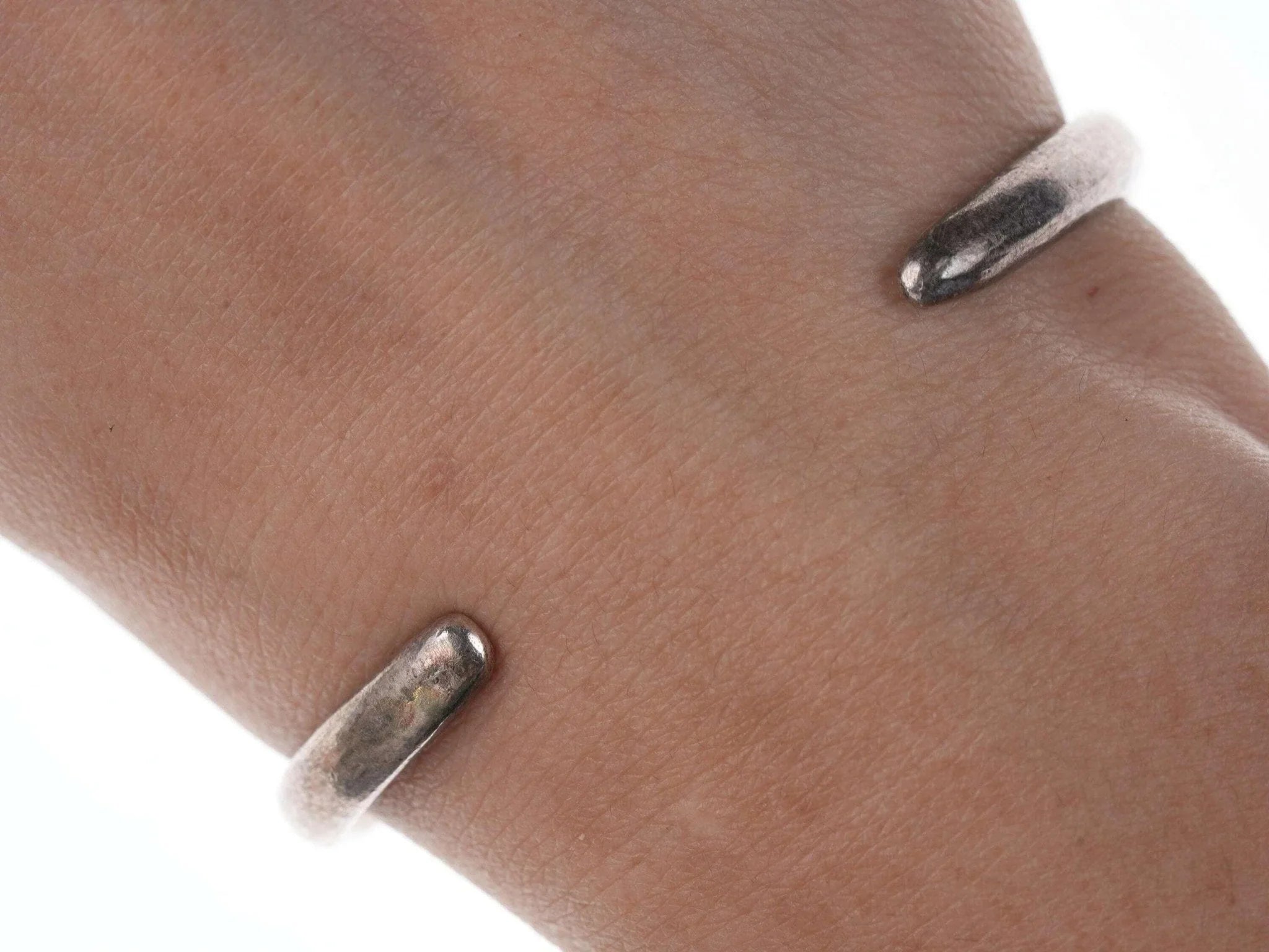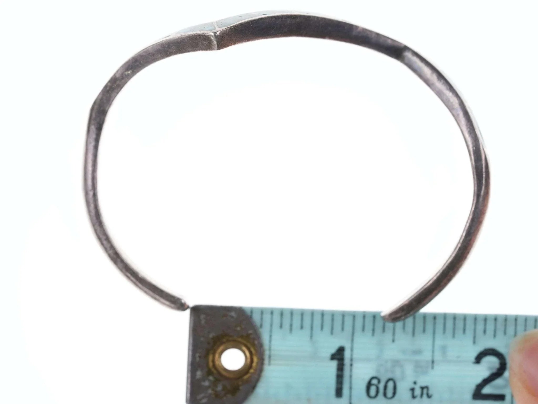 美洲原住民纯银/绿松石芯片通道镶嵌手镯。 20 世纪第三季度的漂亮小手镯。无标记,经过纯正测试,无损坏。