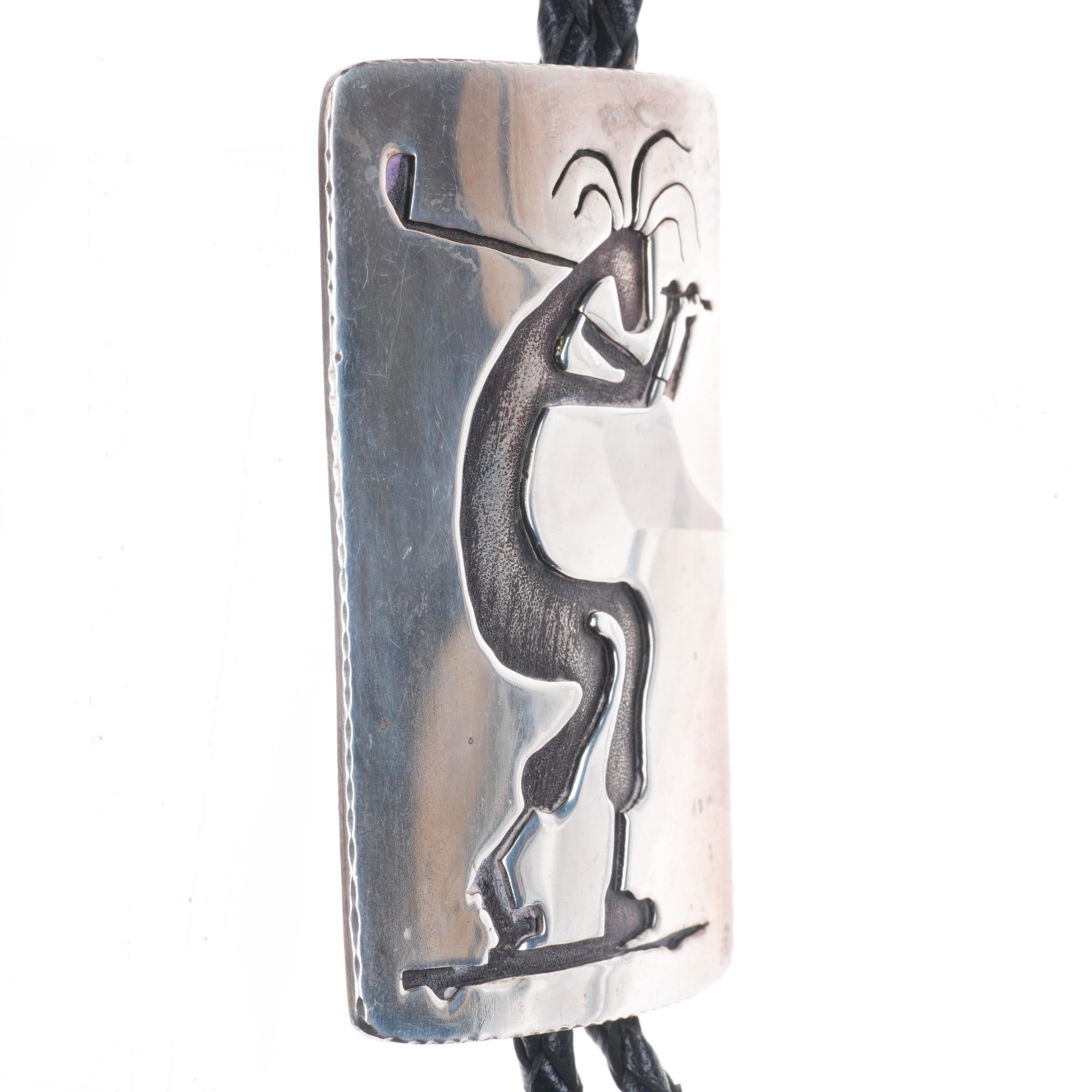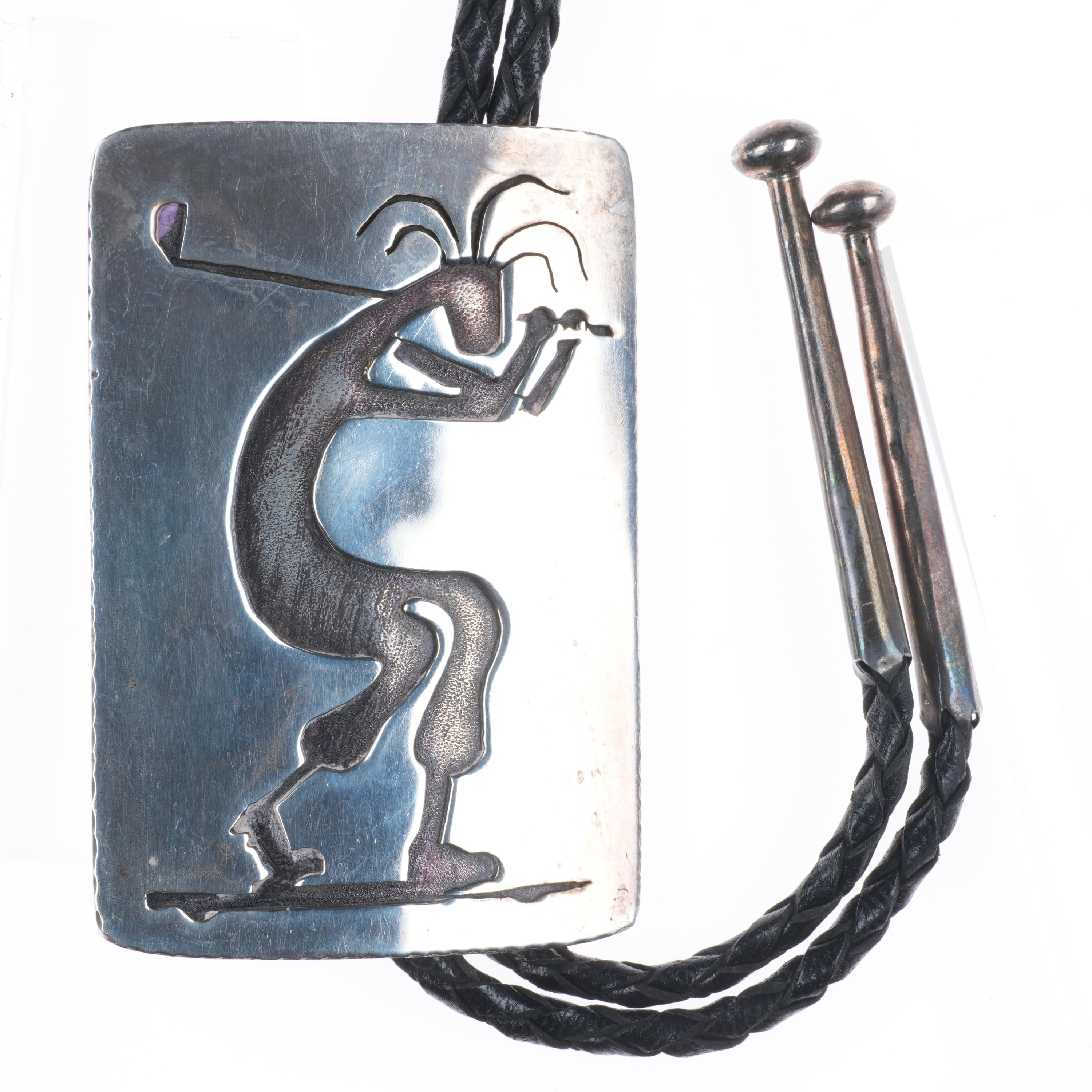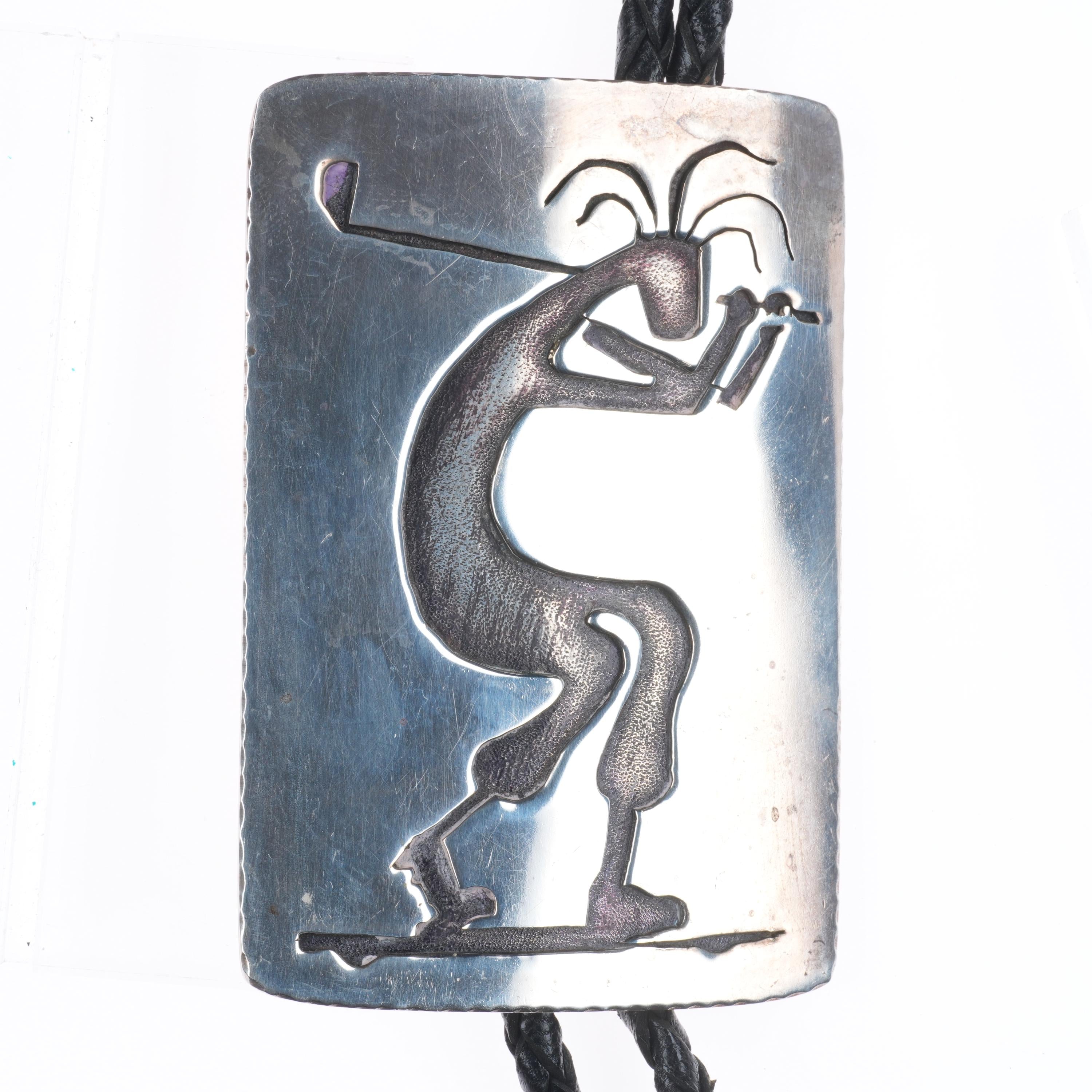 Retro Southwestern sterling silver golfing Kokopelli bolo tie