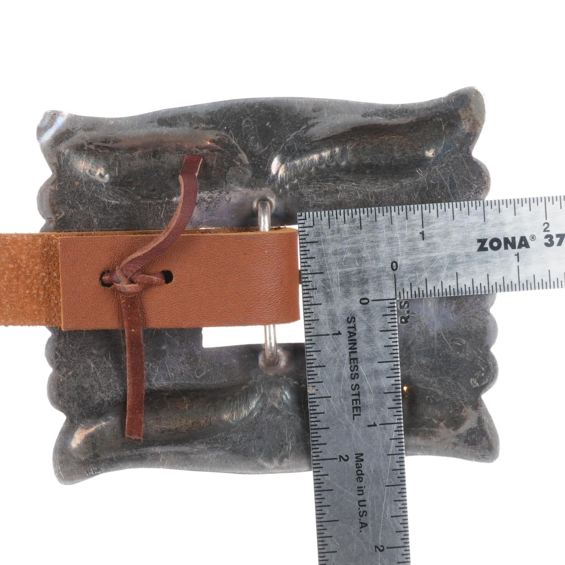 Roger Skeet Jr Navajo King's Manassa turquoise sterling silver concho belt. I think the leather is over 60" long, but obviously could be worn shorter. I would be happy to add holes upon request at requested intervals.. Tape measure shown in pics.. Weight and measurements in pictures. No damage or issues, tested and guaranteed solid sterling silver. 6 Conchos, 7 butterfly Conchos and 1 Buckle. All solid sterling silver, circa early 4th quarter of the 20th century.