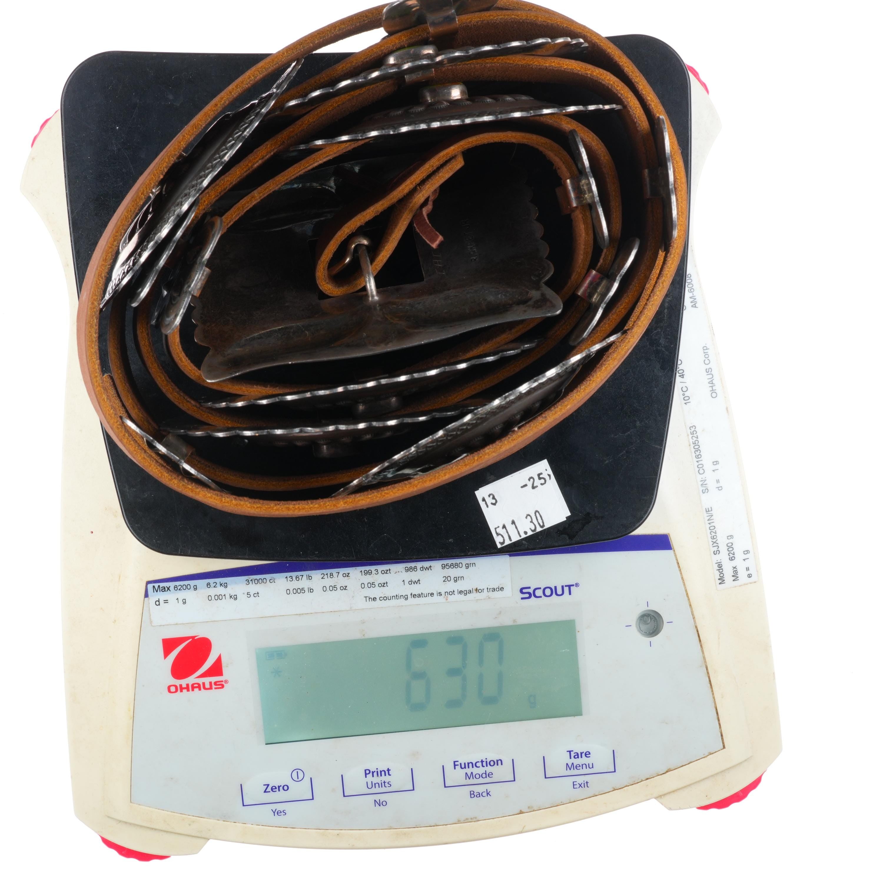 Roger Skeet Jr. ( b. 1932) succeeded his father as an excellent silversmith. He learned and worked with his father until his death in 1959. His work is hallmarked "R.S." while his father's work remains plain. Otherwise, their styles are extremely similar and nearly indistinguishable. Their concho belts remain as an example of their excellent work.