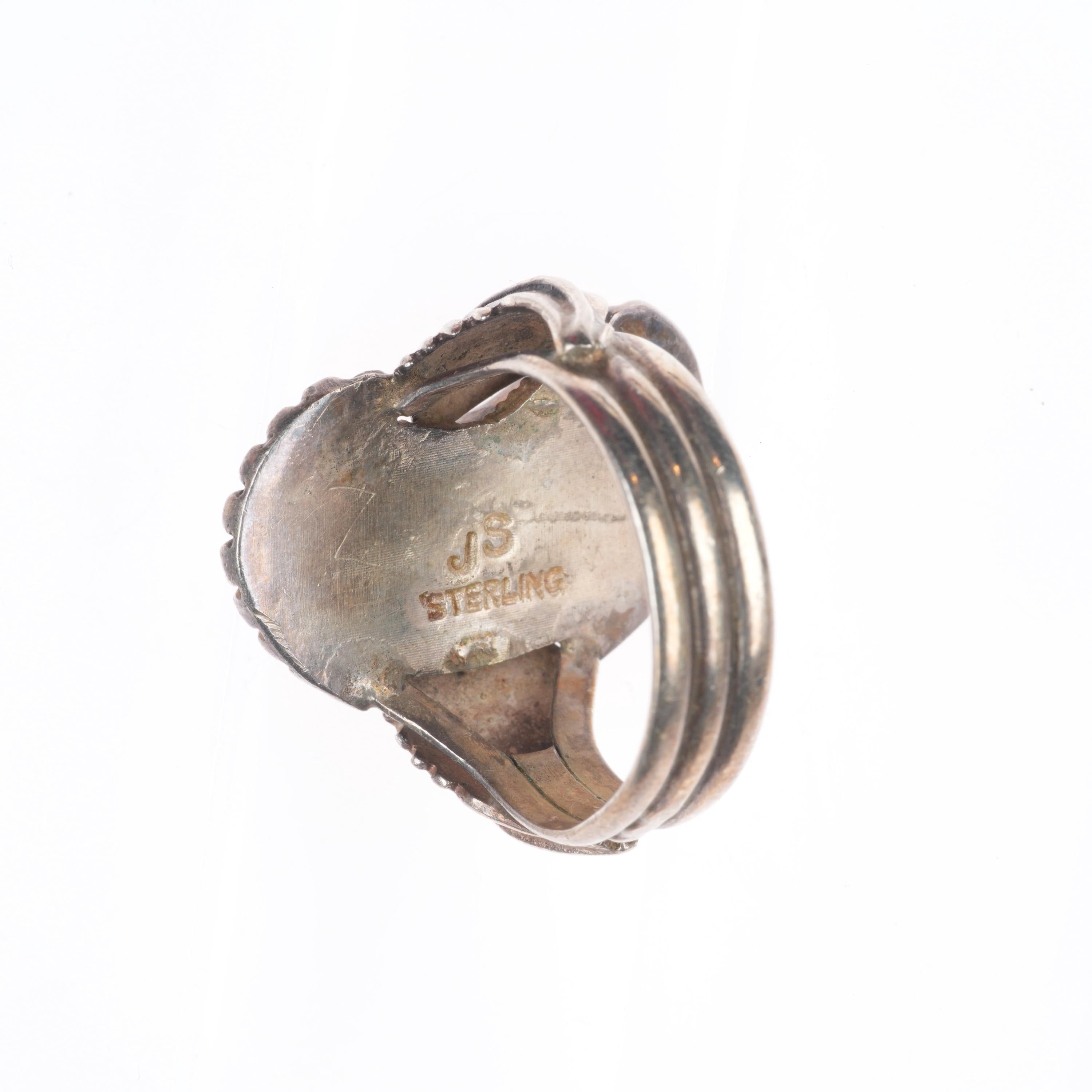 sz10.5 JS Native American sterling silver branch coral ring feather accents. Tested and guaranteed solid sterling silver, circa third quarter... 阅读更多