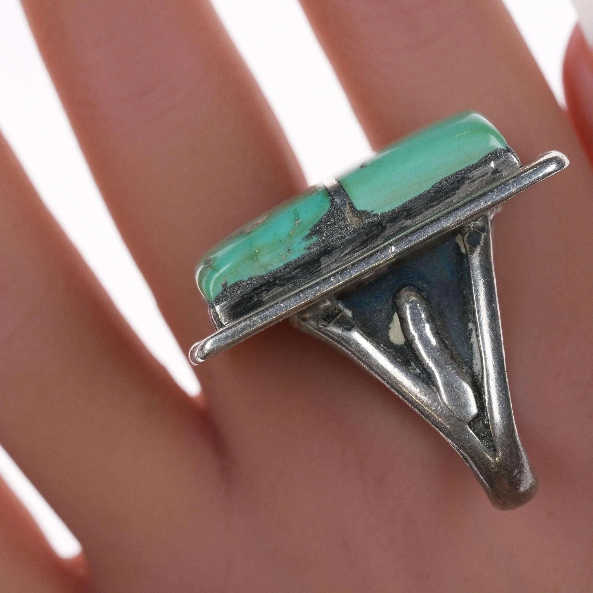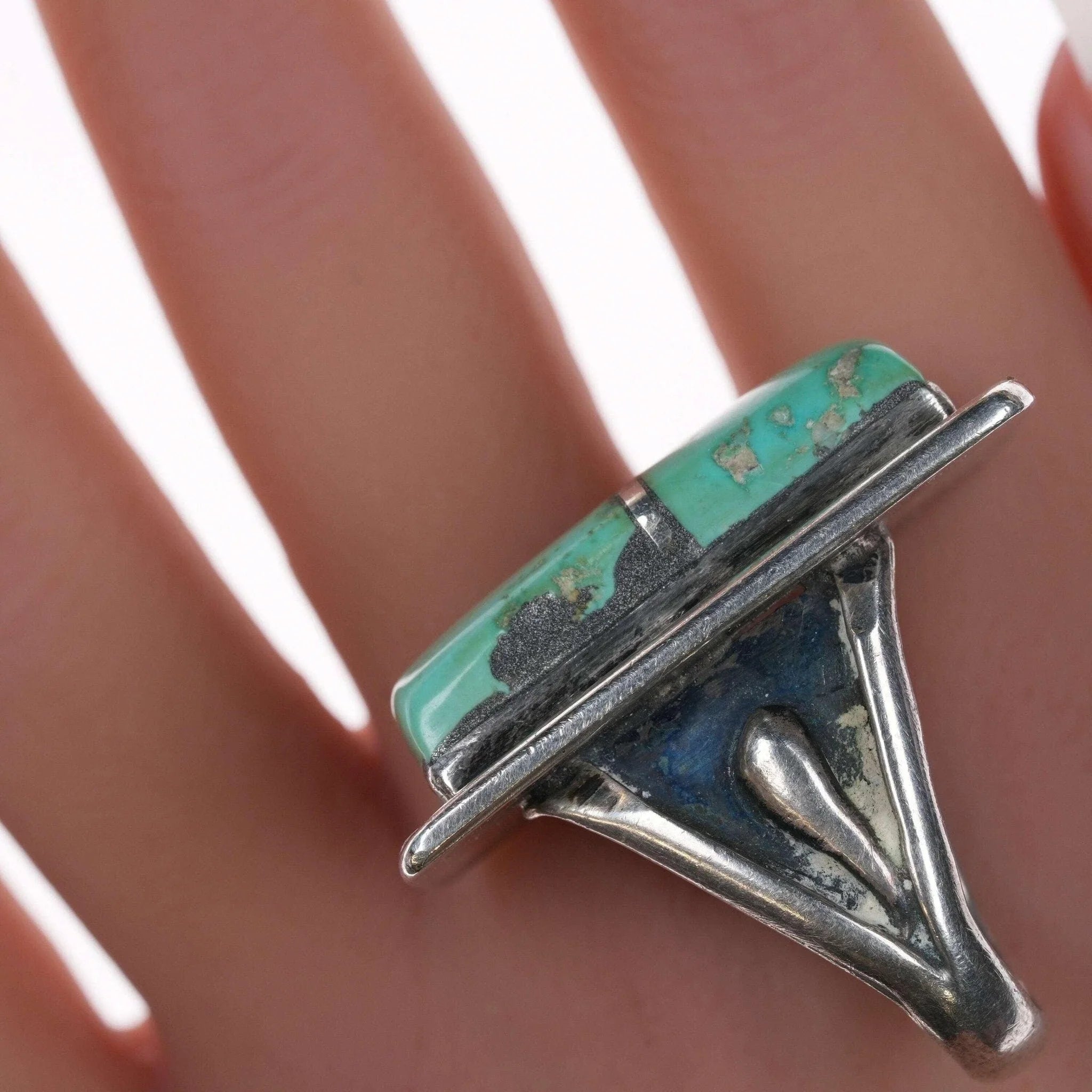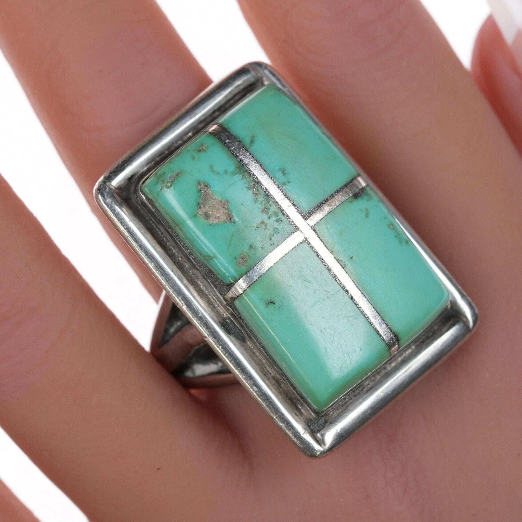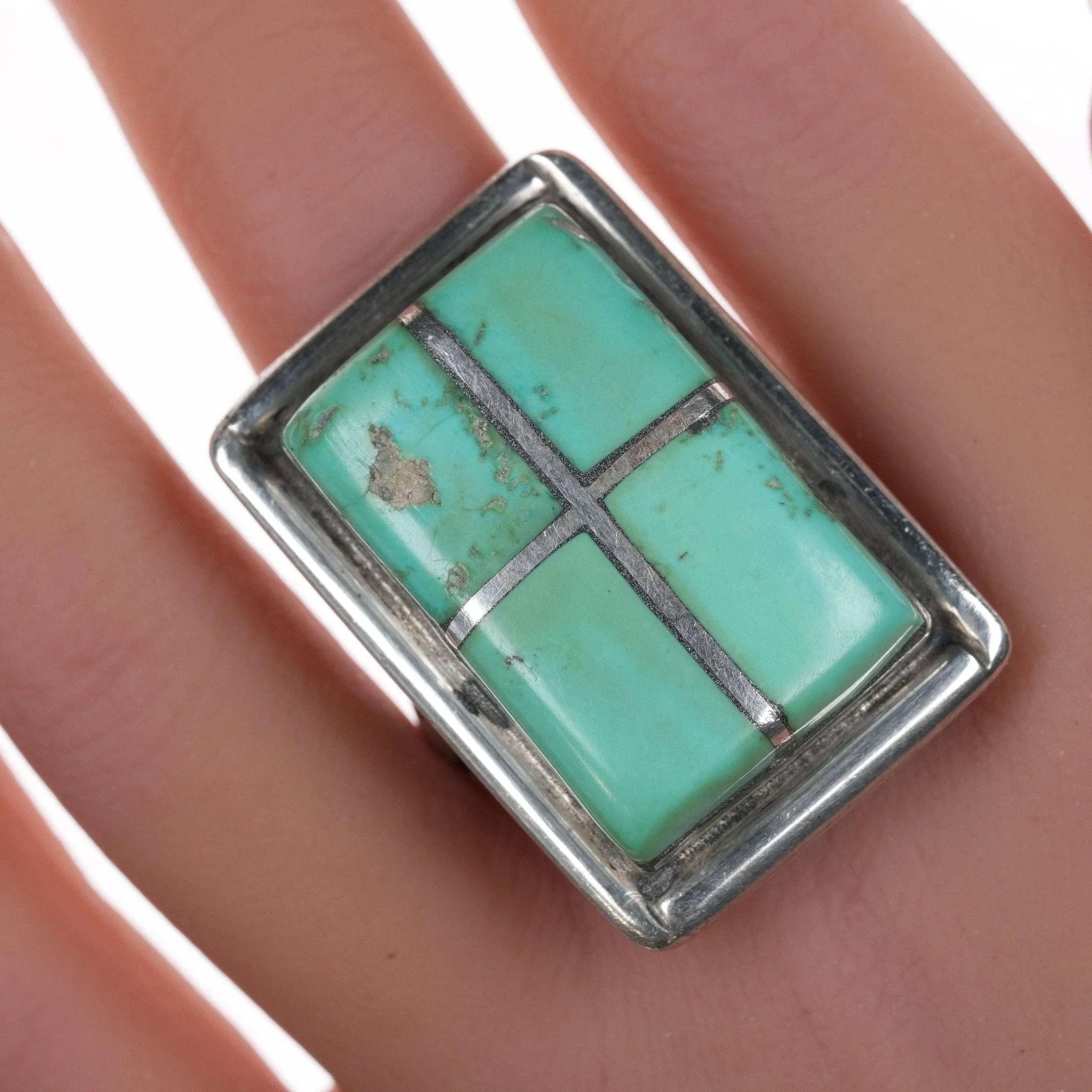 sz10 Large Native American Turquoise Sterling channel inlay ring