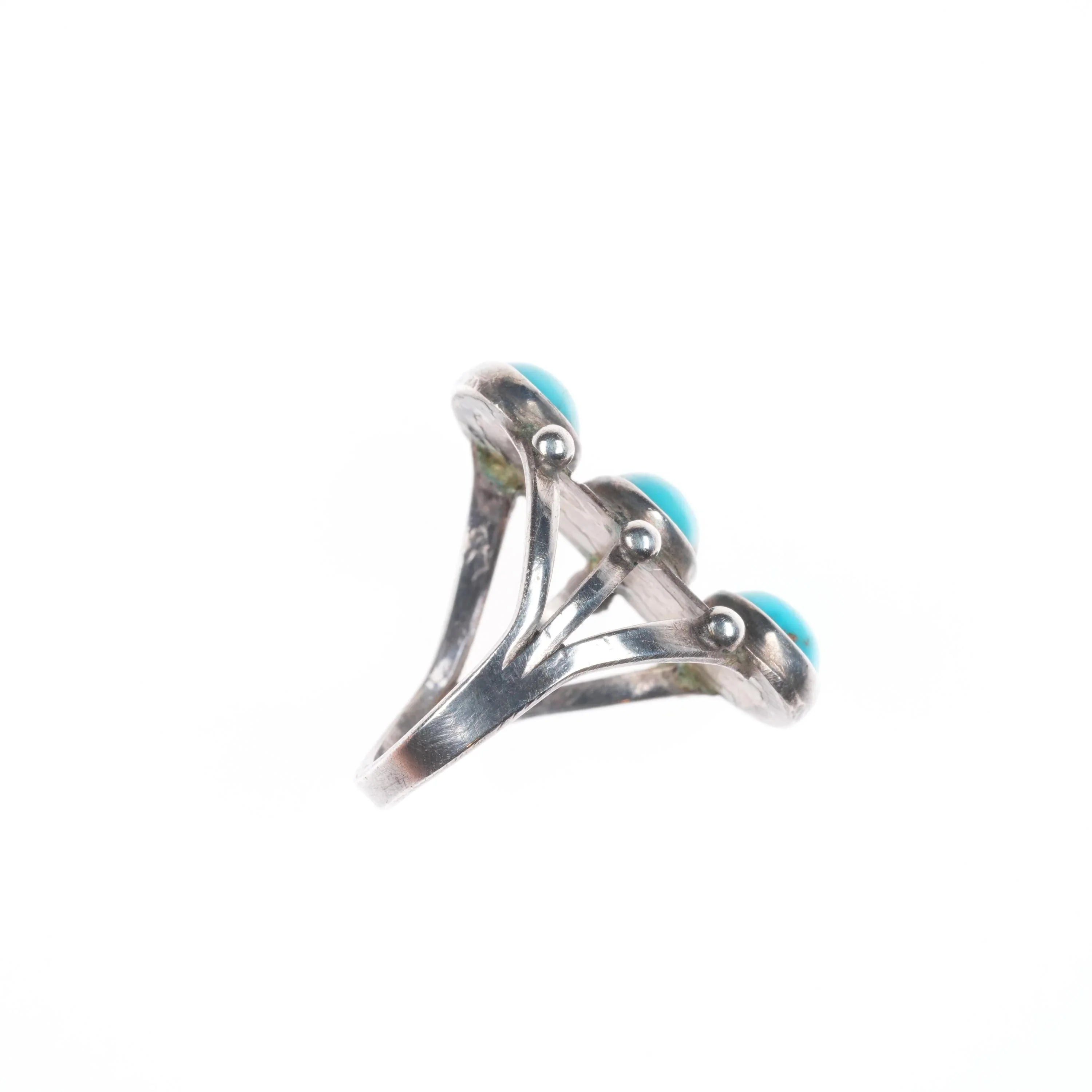 sz5.5 c1940 Navajo sterling silver stoplight 3 stone turquoise ring size 5.5