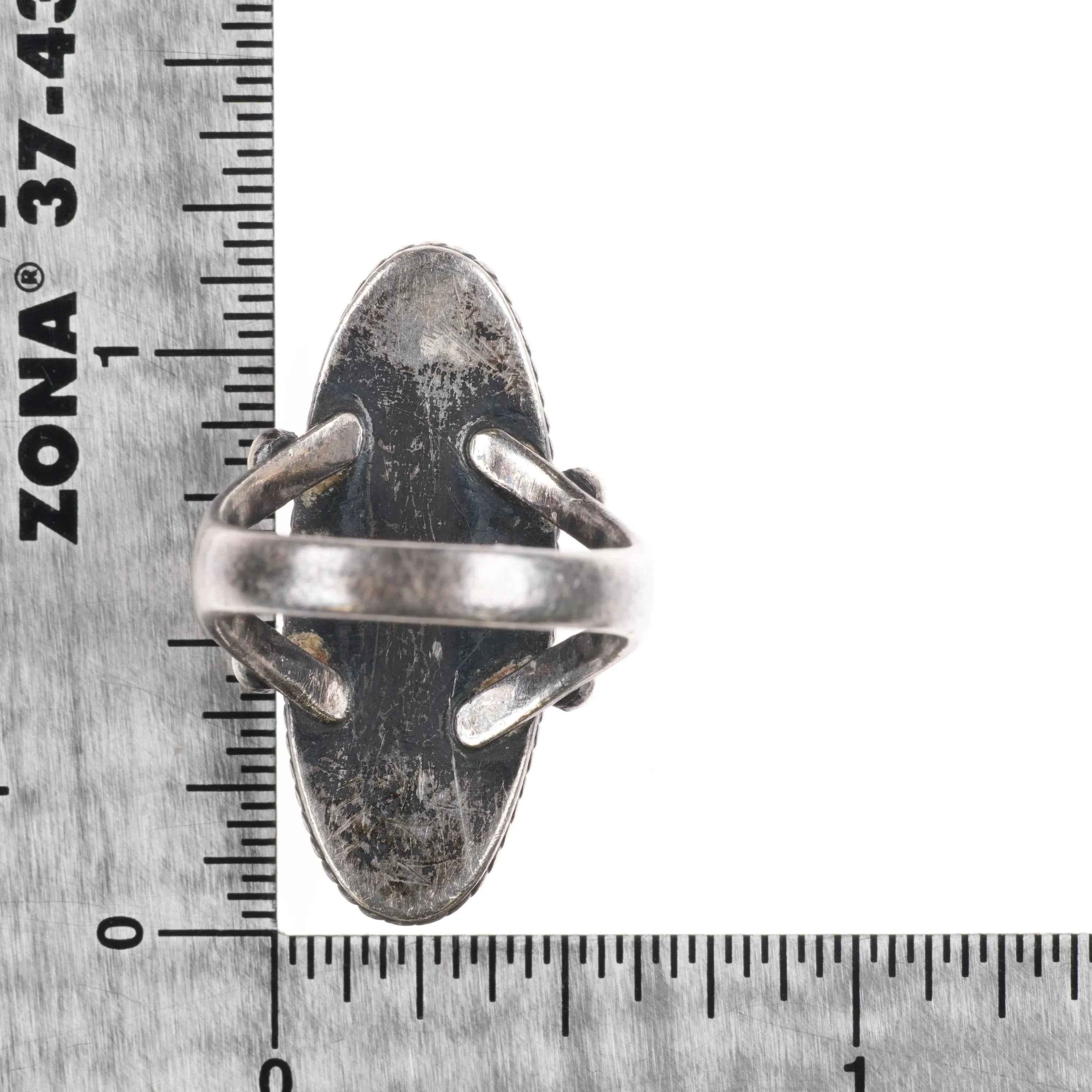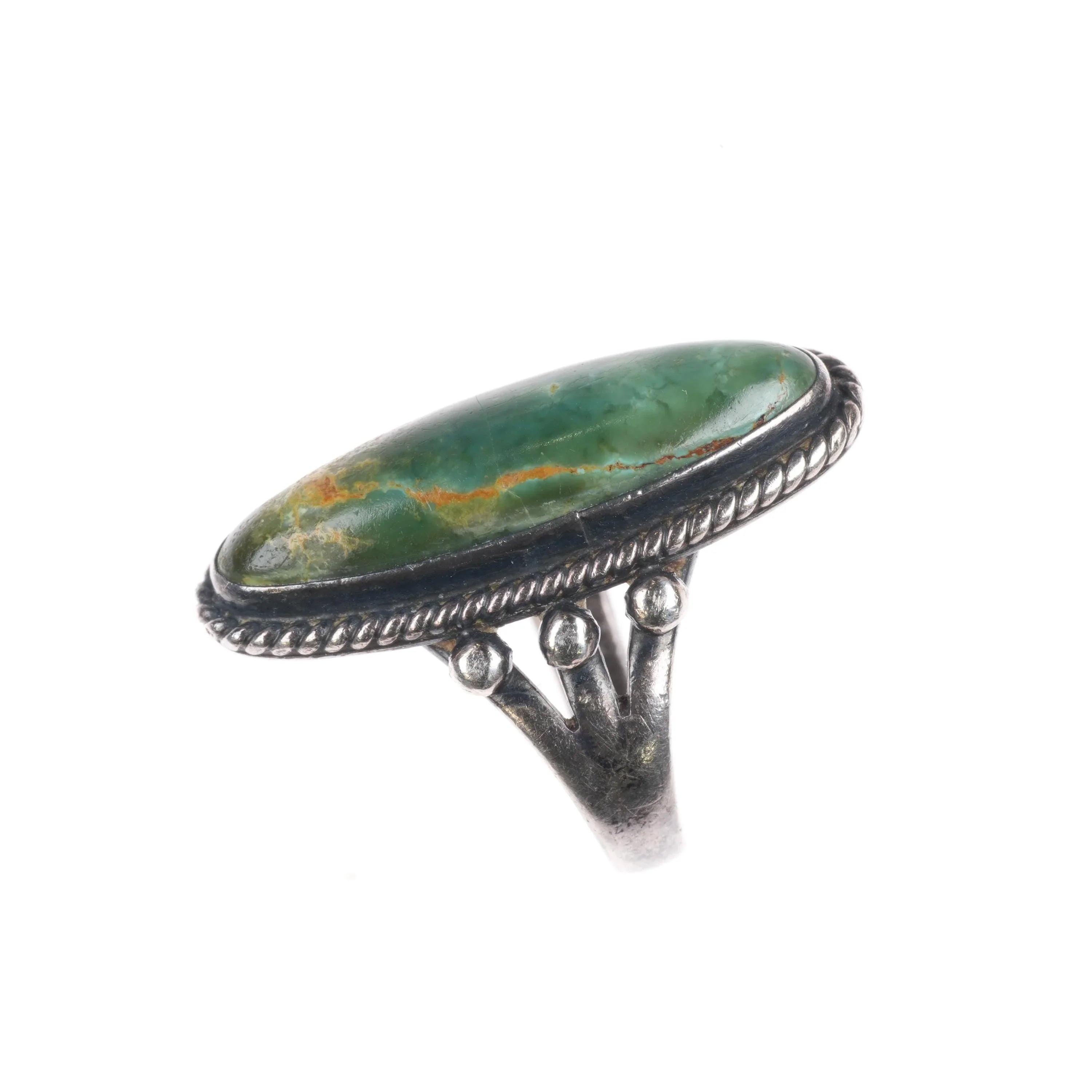 sz6 40's-50's Navajo Cerrillos turquoise sterling silver beaded sides ring