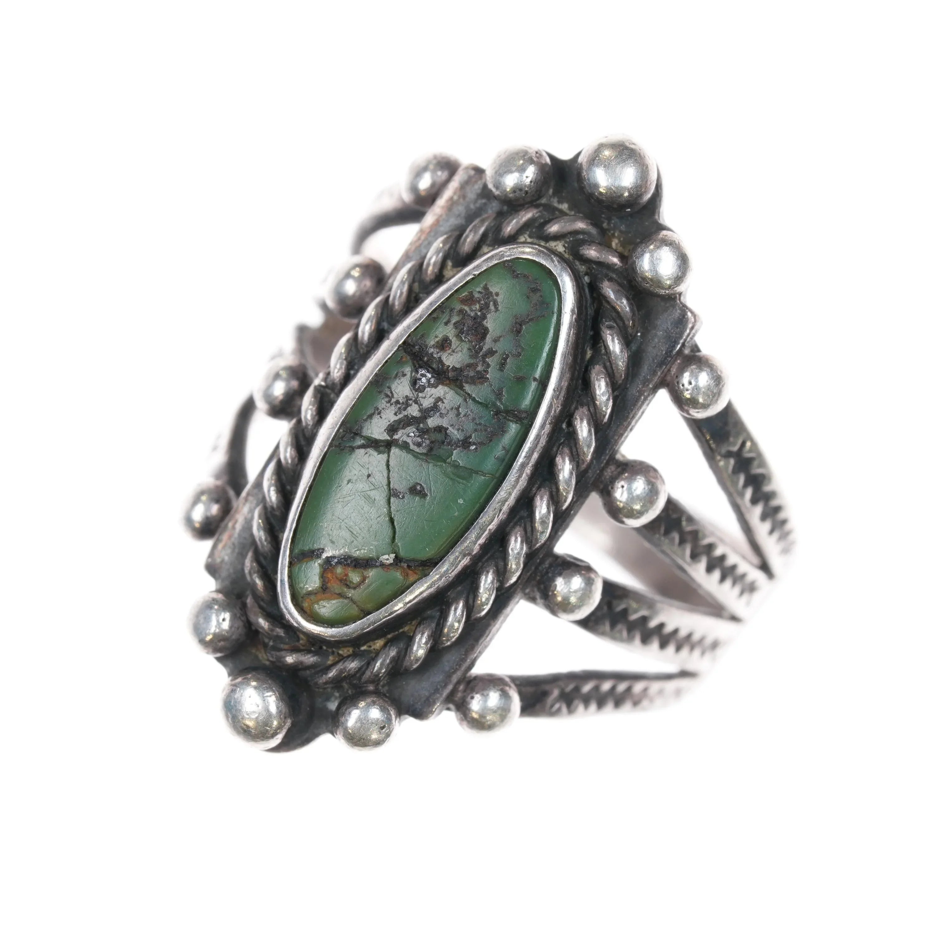 sz6 c1930's Navajo sterling silver Cerrillos turquoise ring