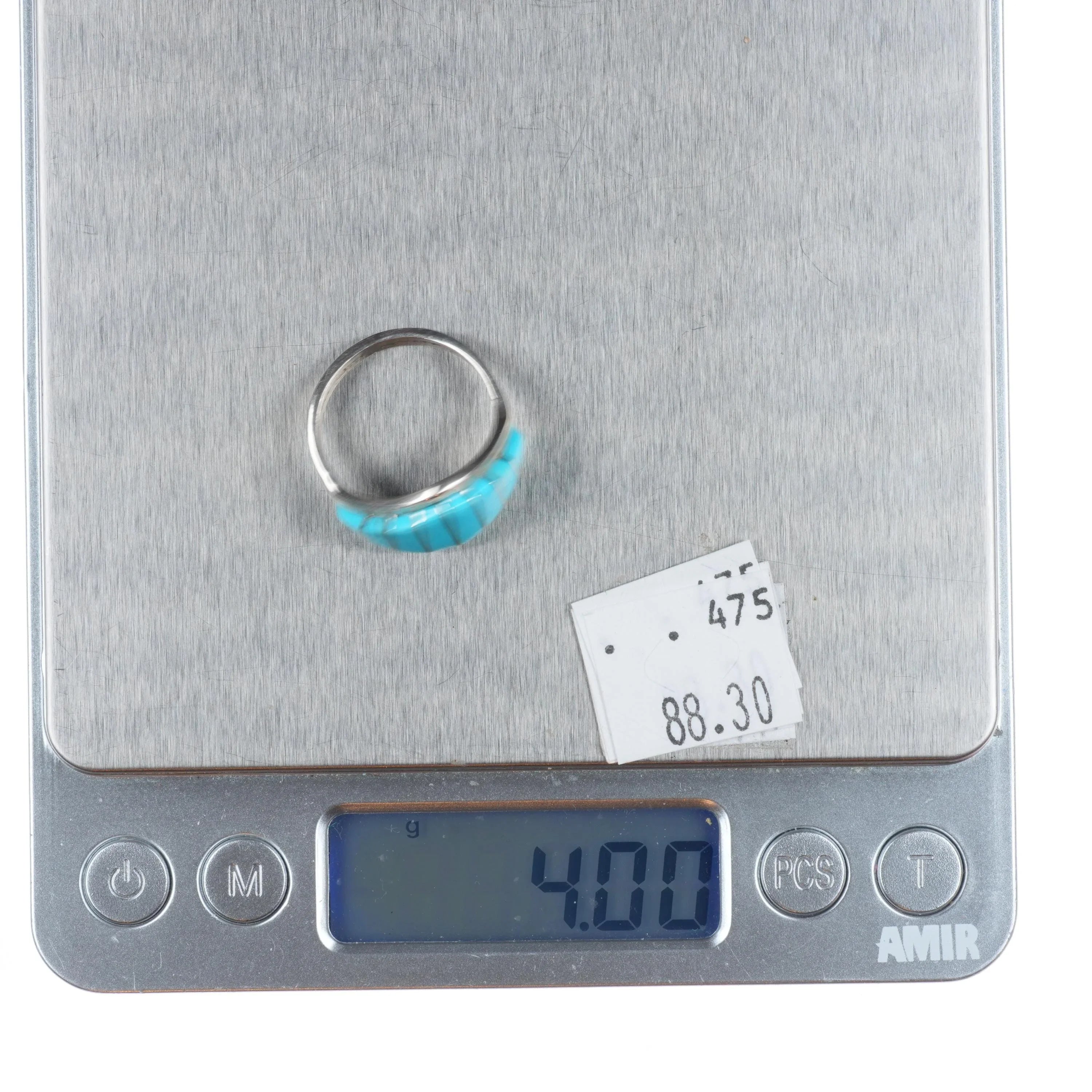 sz8.5 Vintage Zuni sterling silver turquoise channel inlay ring