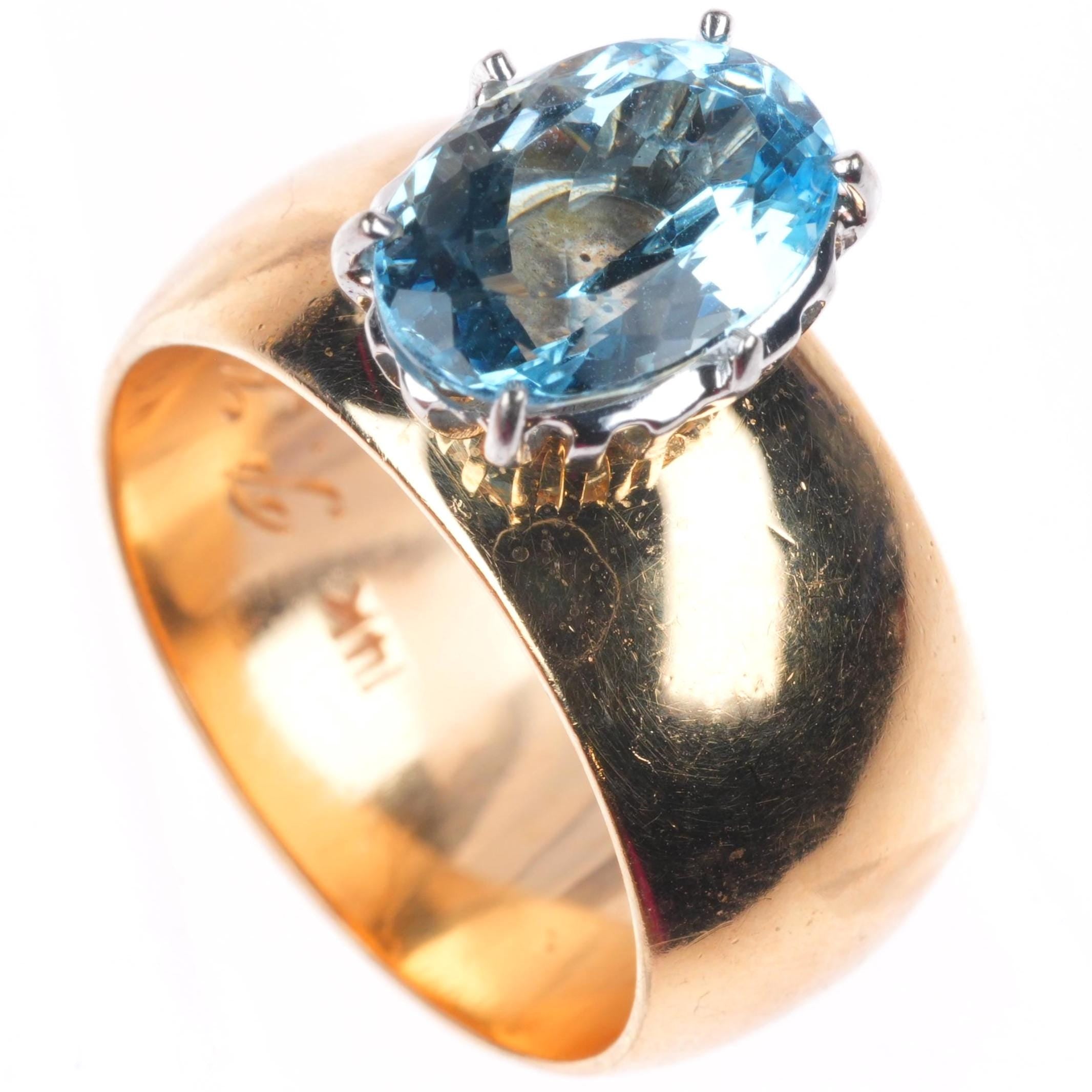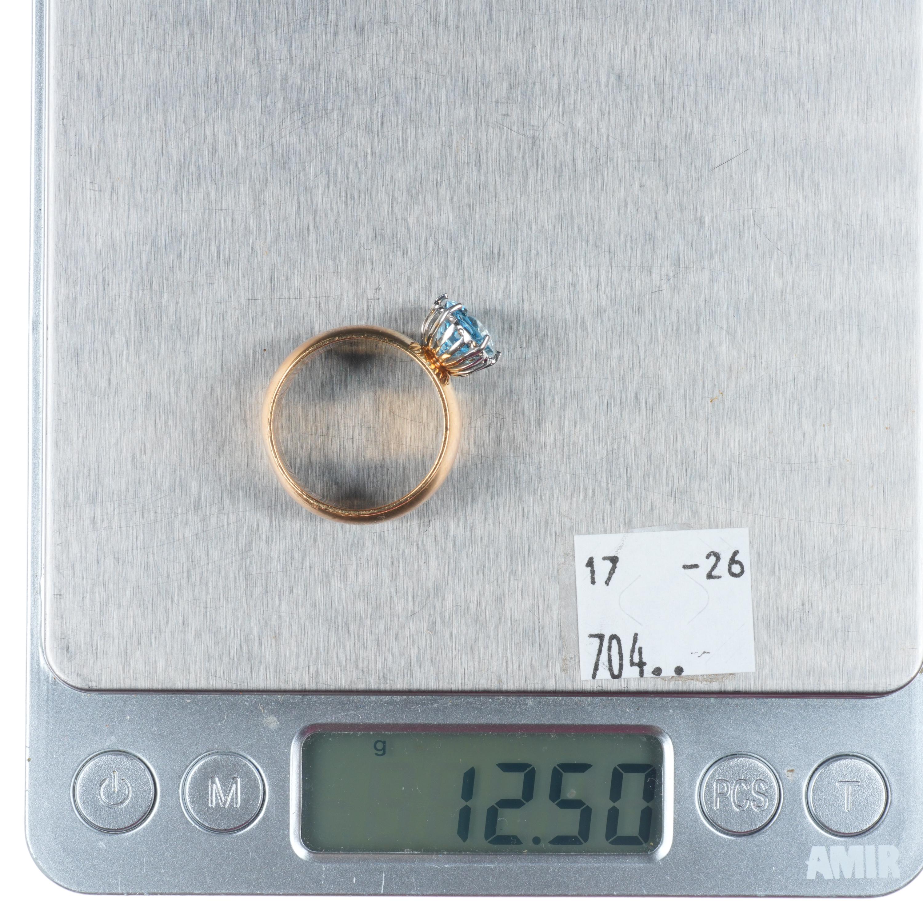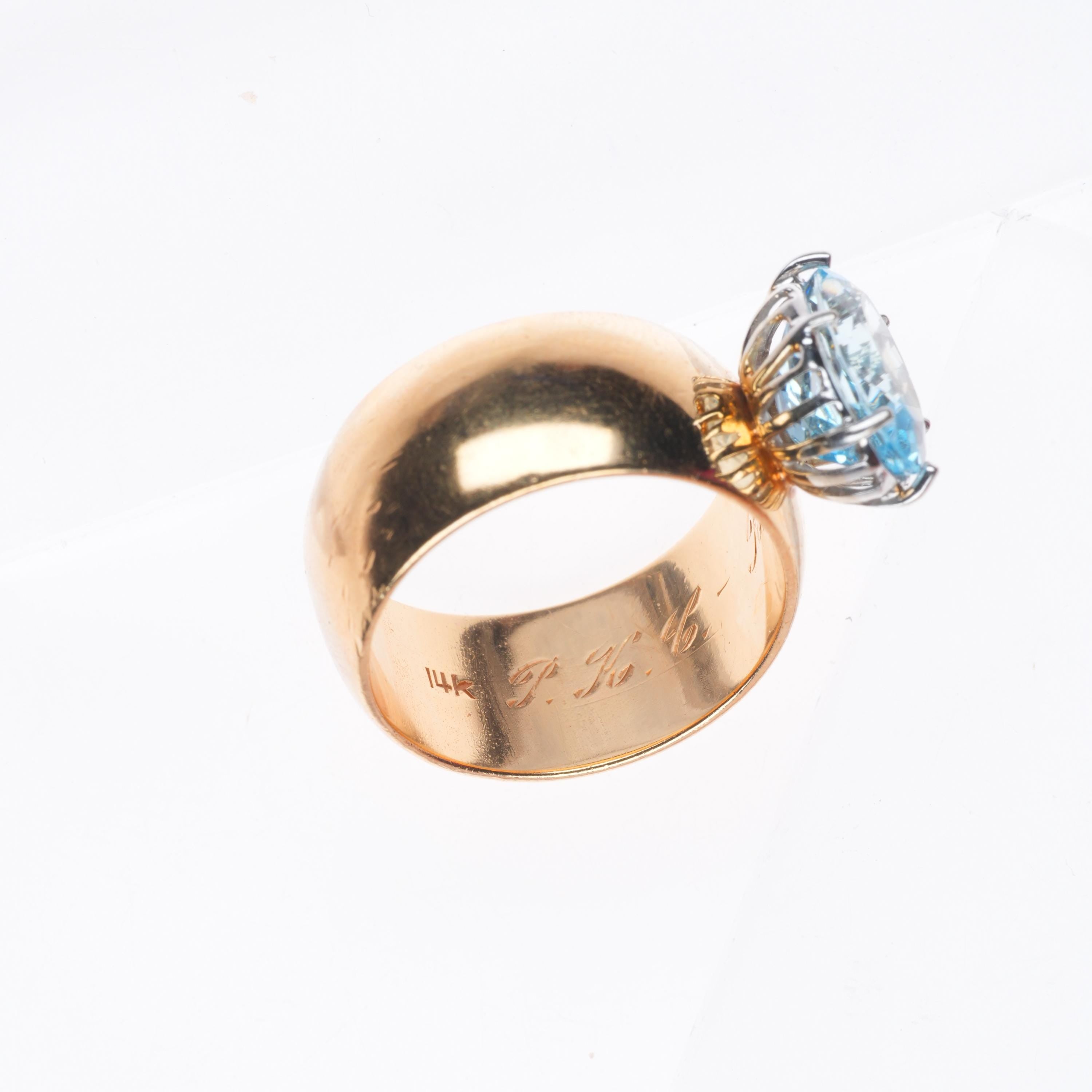 sz9 1950's retro 14k yellow gold blue topaz women's statement size 9 ring
