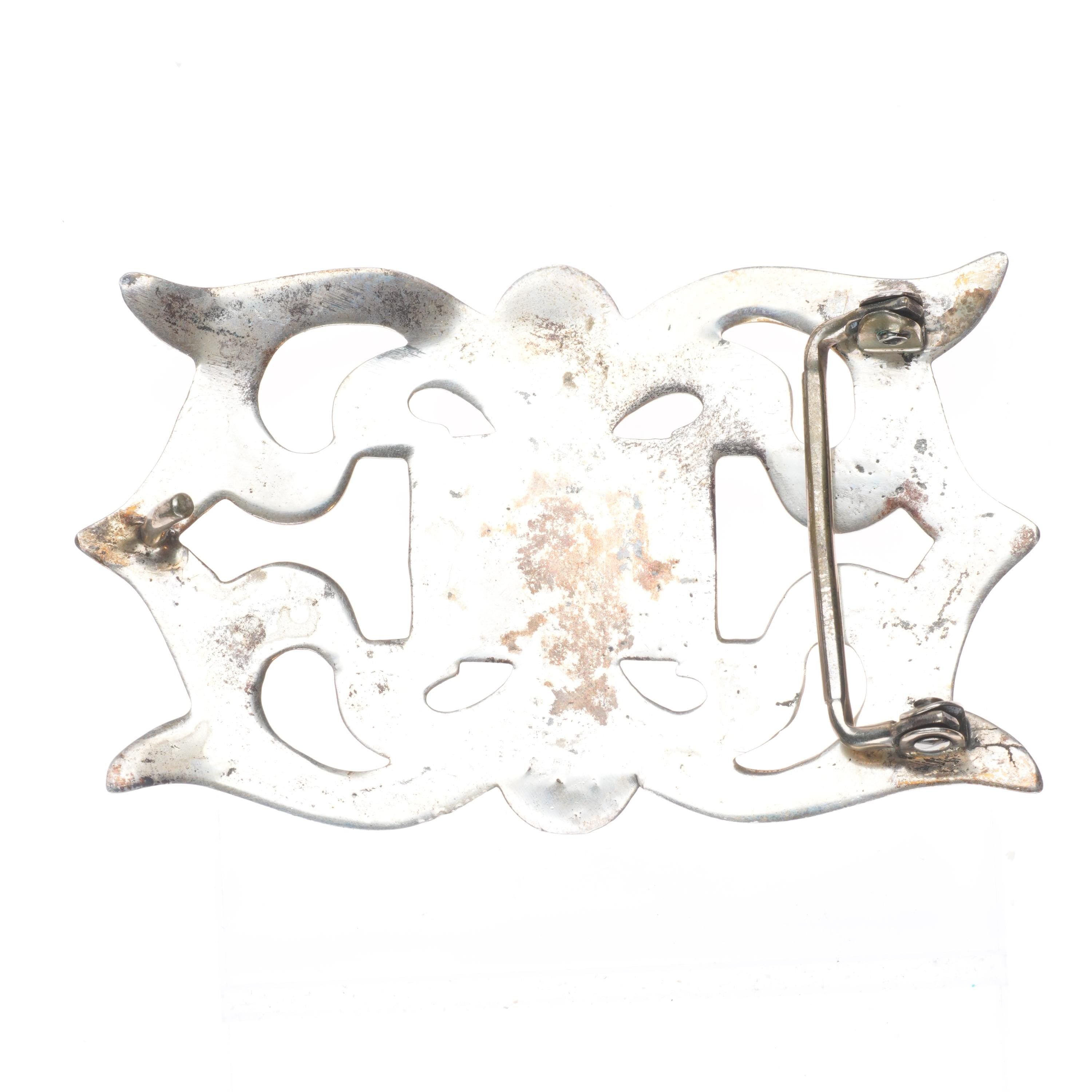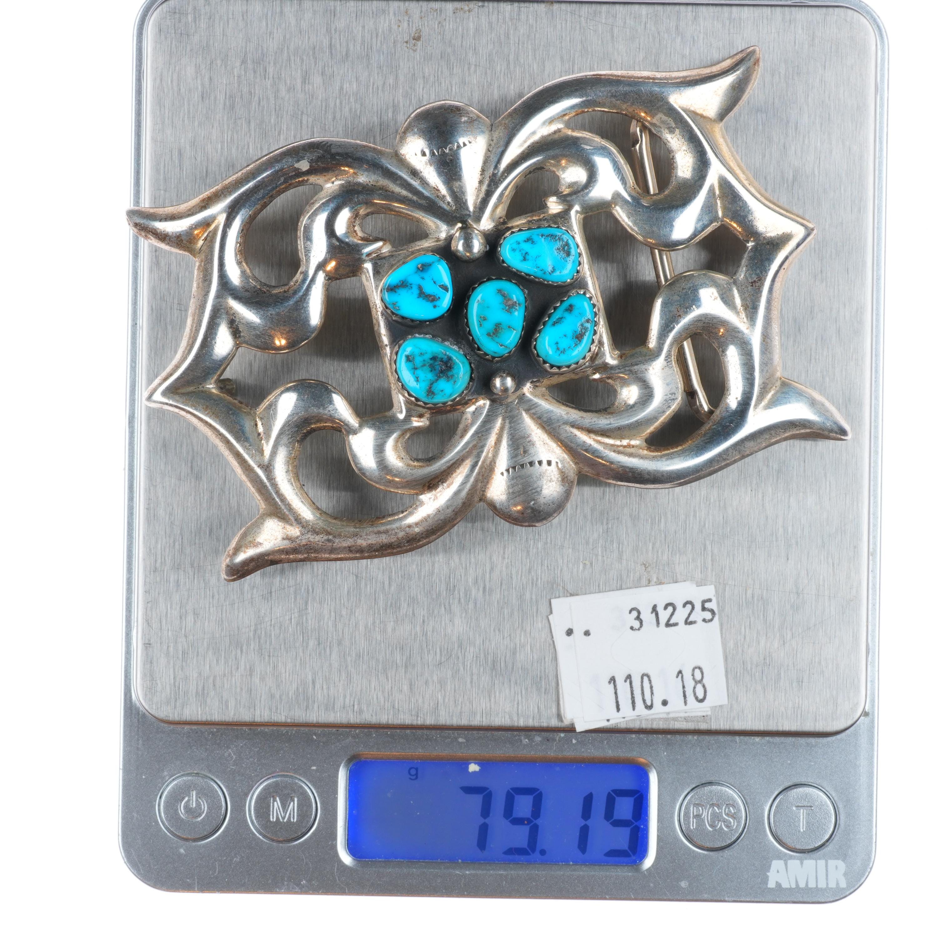 Vintage Navajo cast sterling silver 5 stone turquoise cluster belt buckle