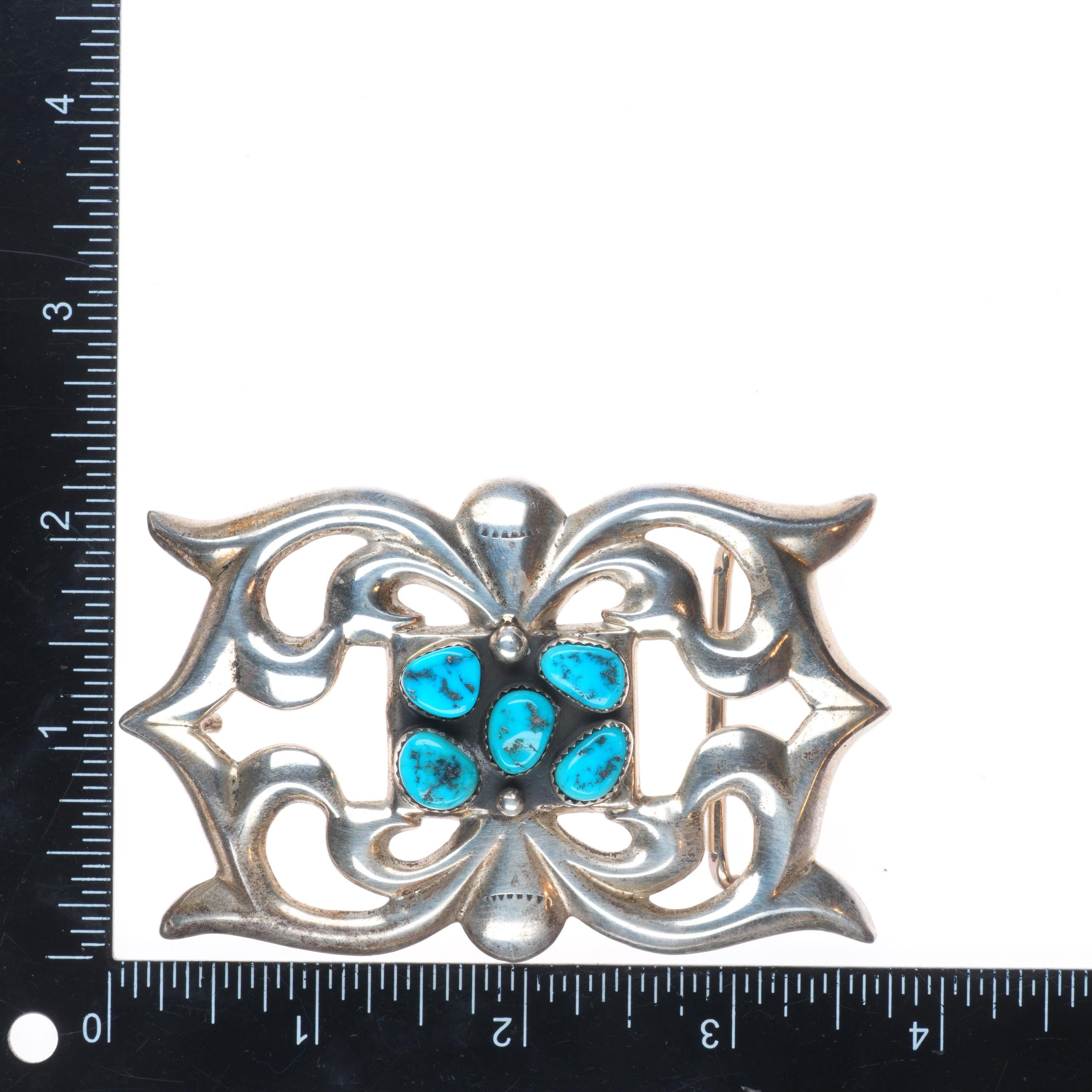 Vintage Navajo cast sterling silver 5 stone turquoise cluster belt buckle. Tested and guaranteed solid sterling silver. Weight and measurements in pictures, circa third quarter of the 20th century. Fits a 1.5" belt.