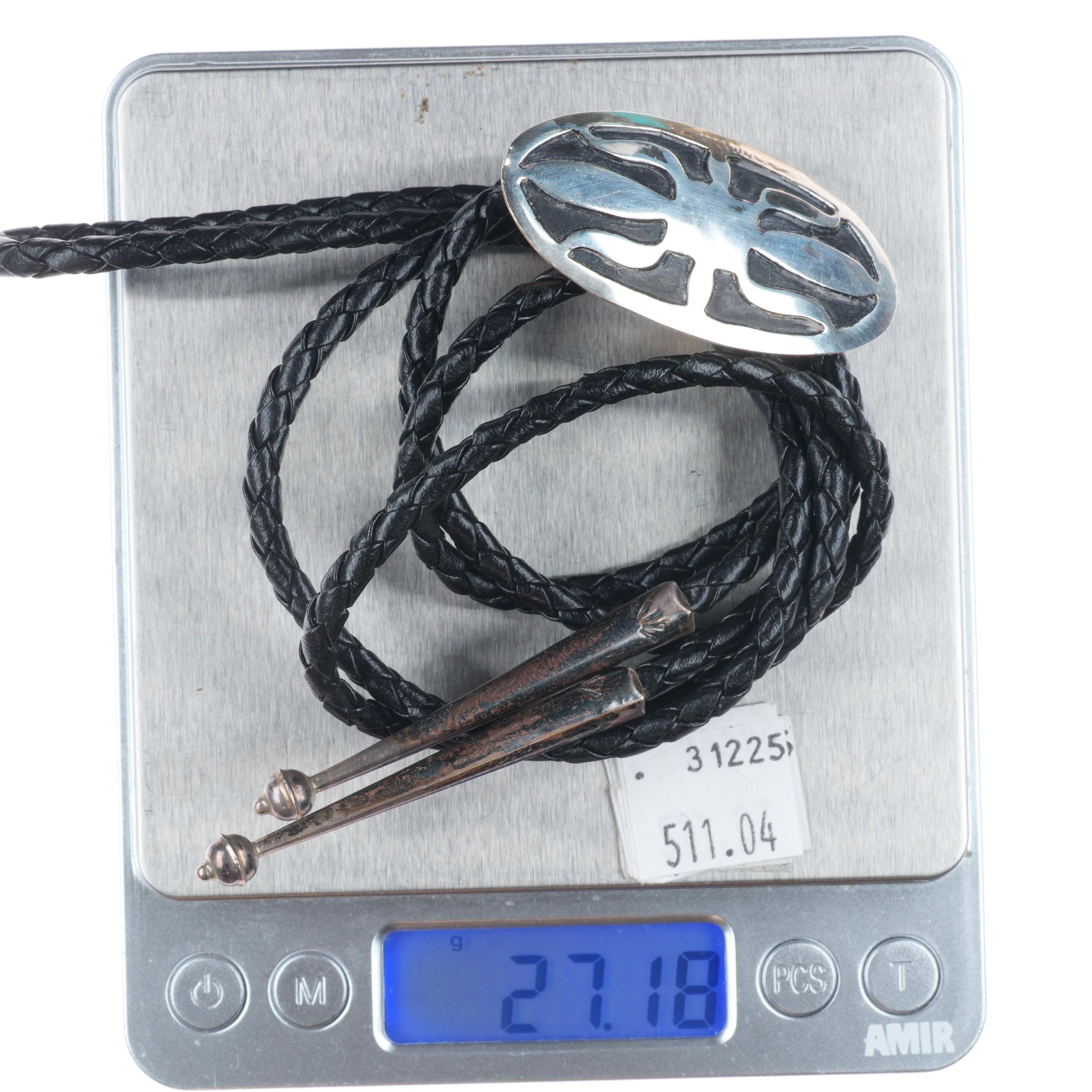 Vintage Navajo sterling silver ketoh design overlay style bolo tie