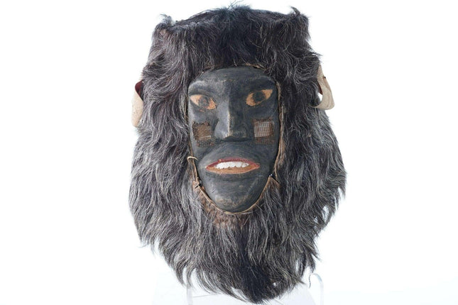 Hand carved Oaxaca ritual mask of Armadillo and fur. The Huave Indians in the<br>Tehuantepec region of Oaxaca wear these masks during Carnival dances to scare<br>away spirits so spring will come sooner. It ia adorned with armadillo skin, and<br>fur from goats and/or wild boar. 14" tall x 9" wide with some minor loss to<br>armadillo shell. From the first half of the 20th century.<br>tw162