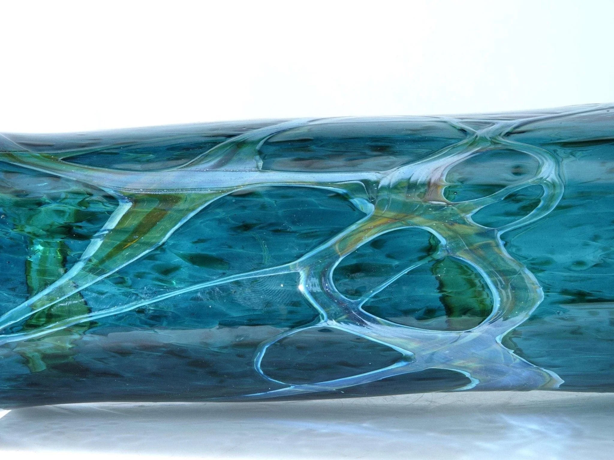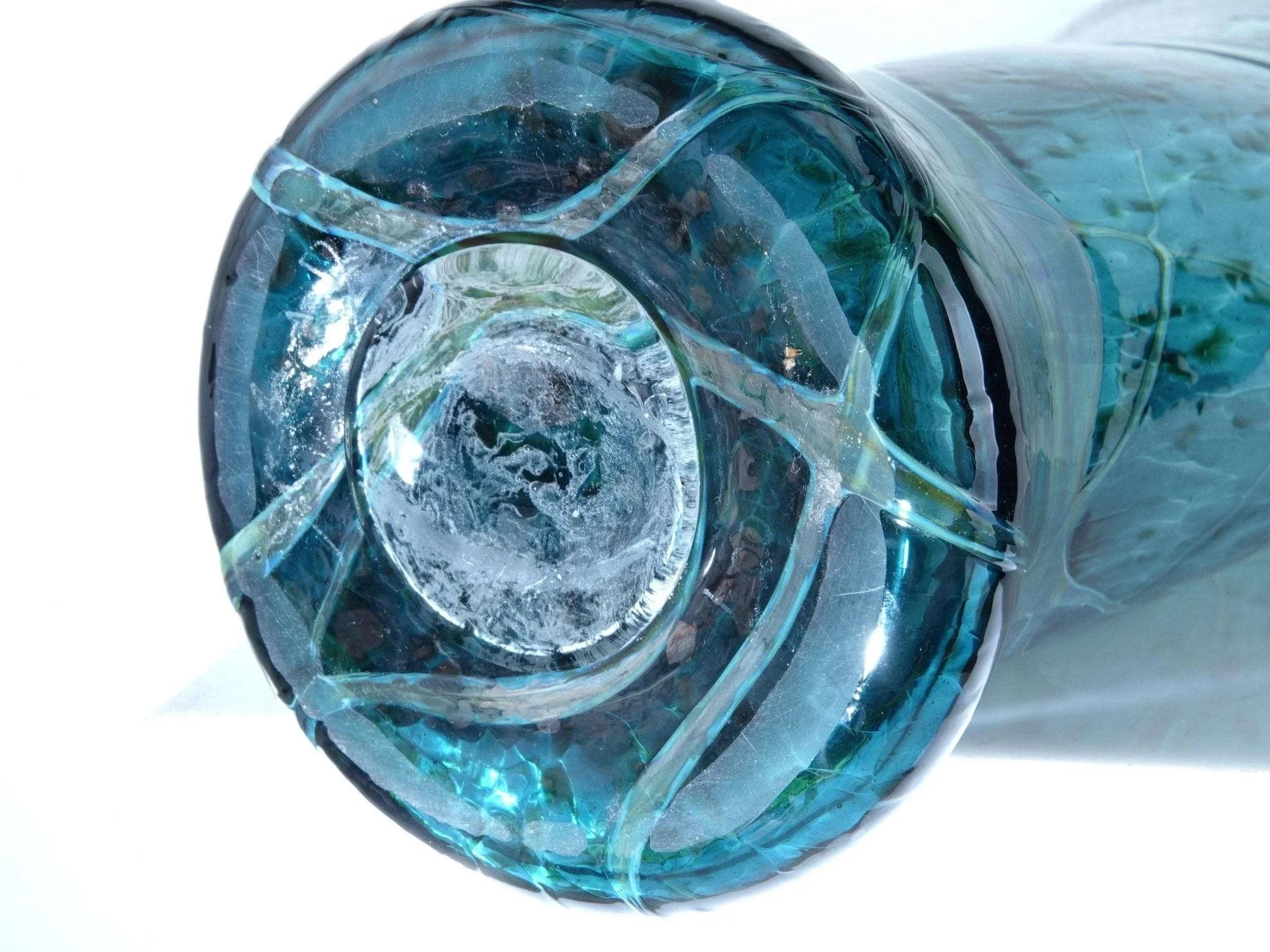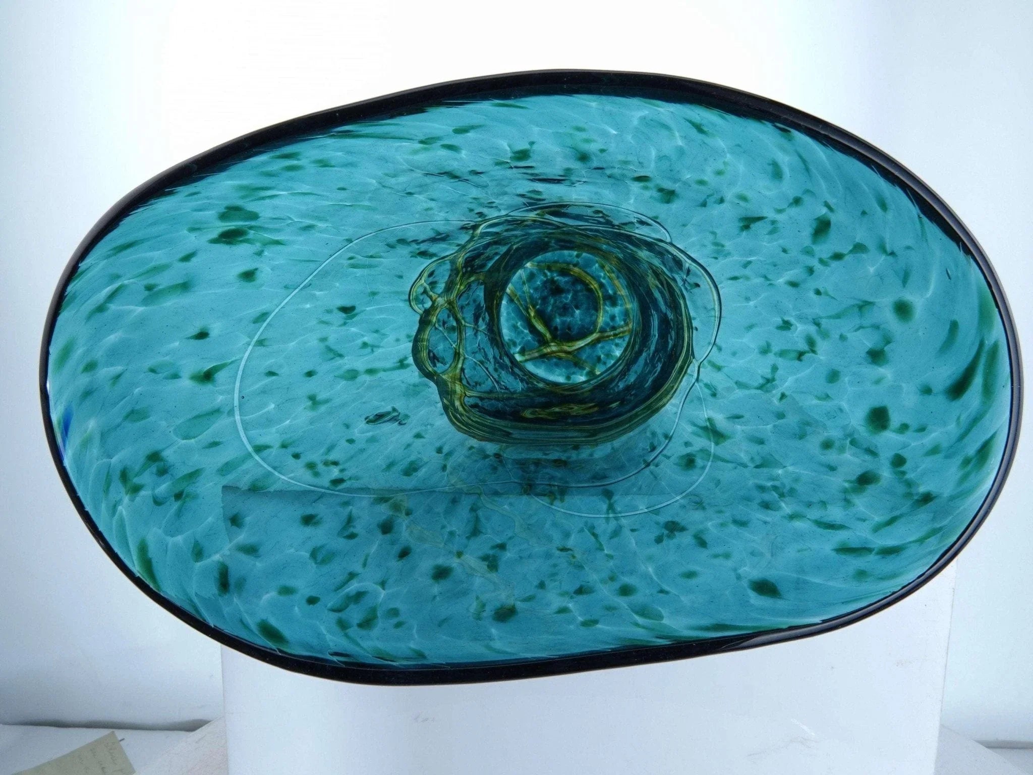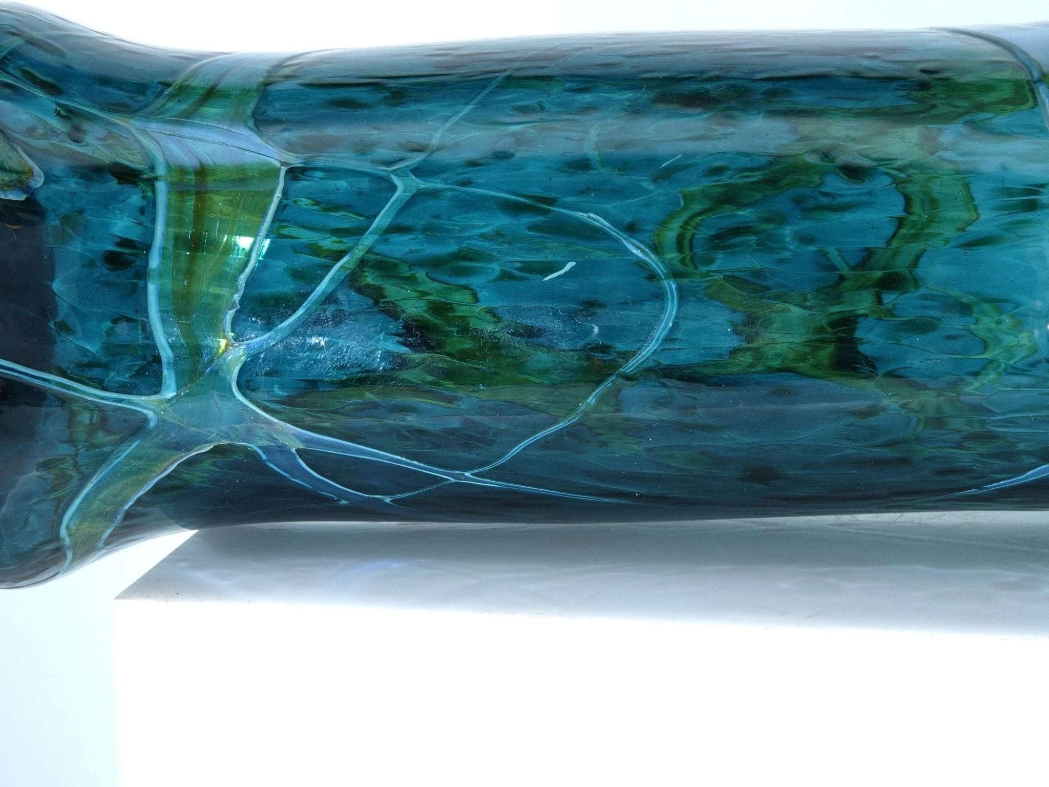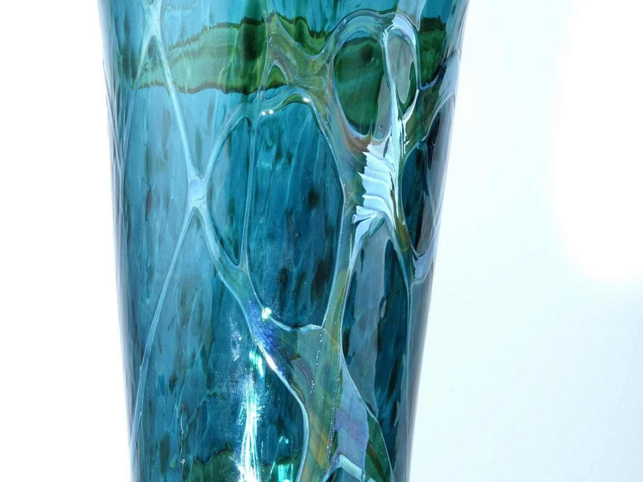 14" Huge Wimberly Glassworks art glass fan vase. 8" wide at rim with no cracks, chips, restorations, or wear. Signed WGW 2007 on base. While not very old, this would retail for about $400-$500 new from Wimberly Glassworks and it's in new condition, handmade. TW221