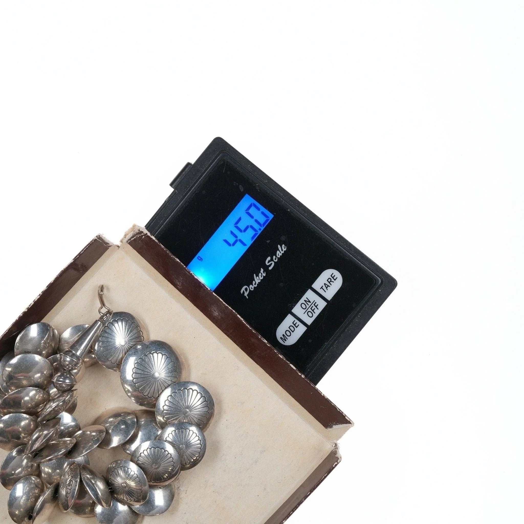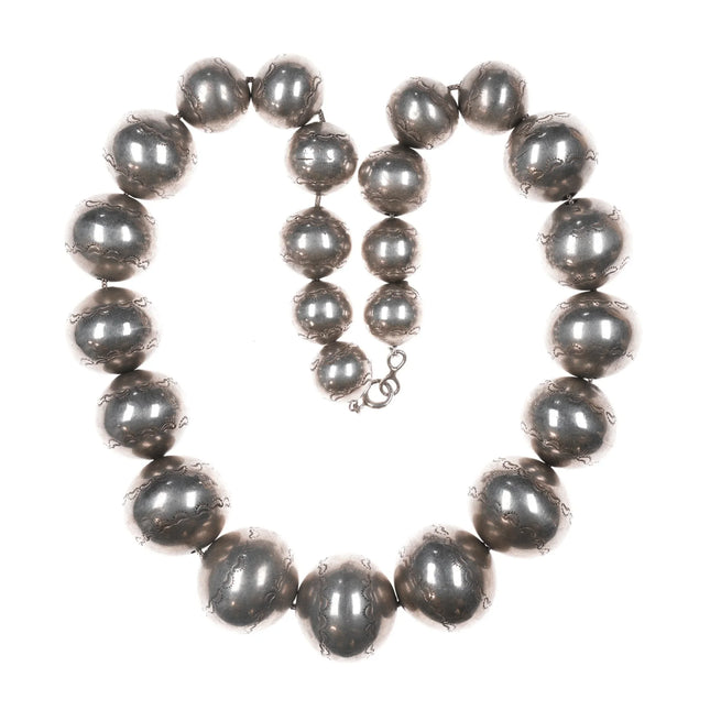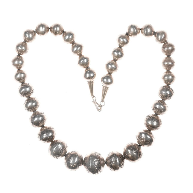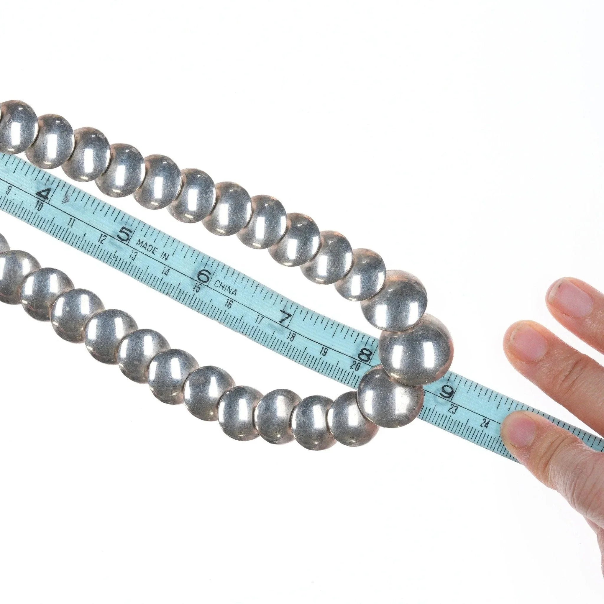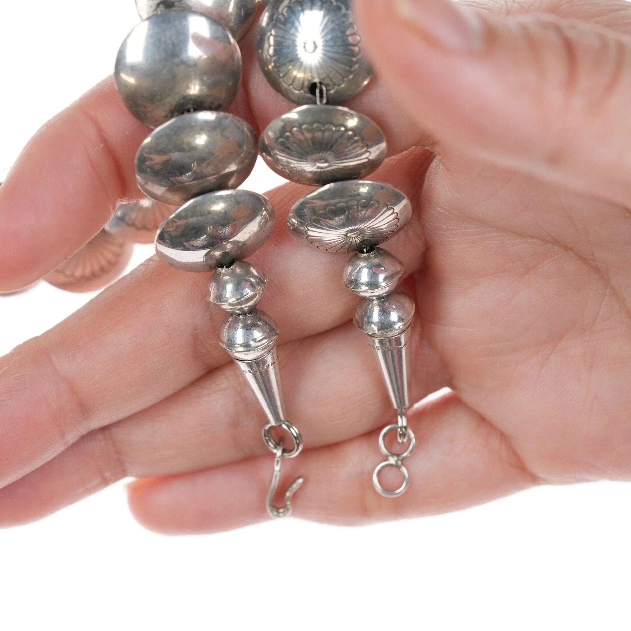 18" Native American Sterling Beaded discs necklace. Bottom disk is 7/8".<br><br>All precious metals are tested and guaranteed, if Stated sterling it's<br>guaranteed to be 90% silver or more, all clasps are functional, I will not offer<br>anything here with any significant issues. Measurements and weight should be<br>shown in the pics if not otherwise described in the listing.