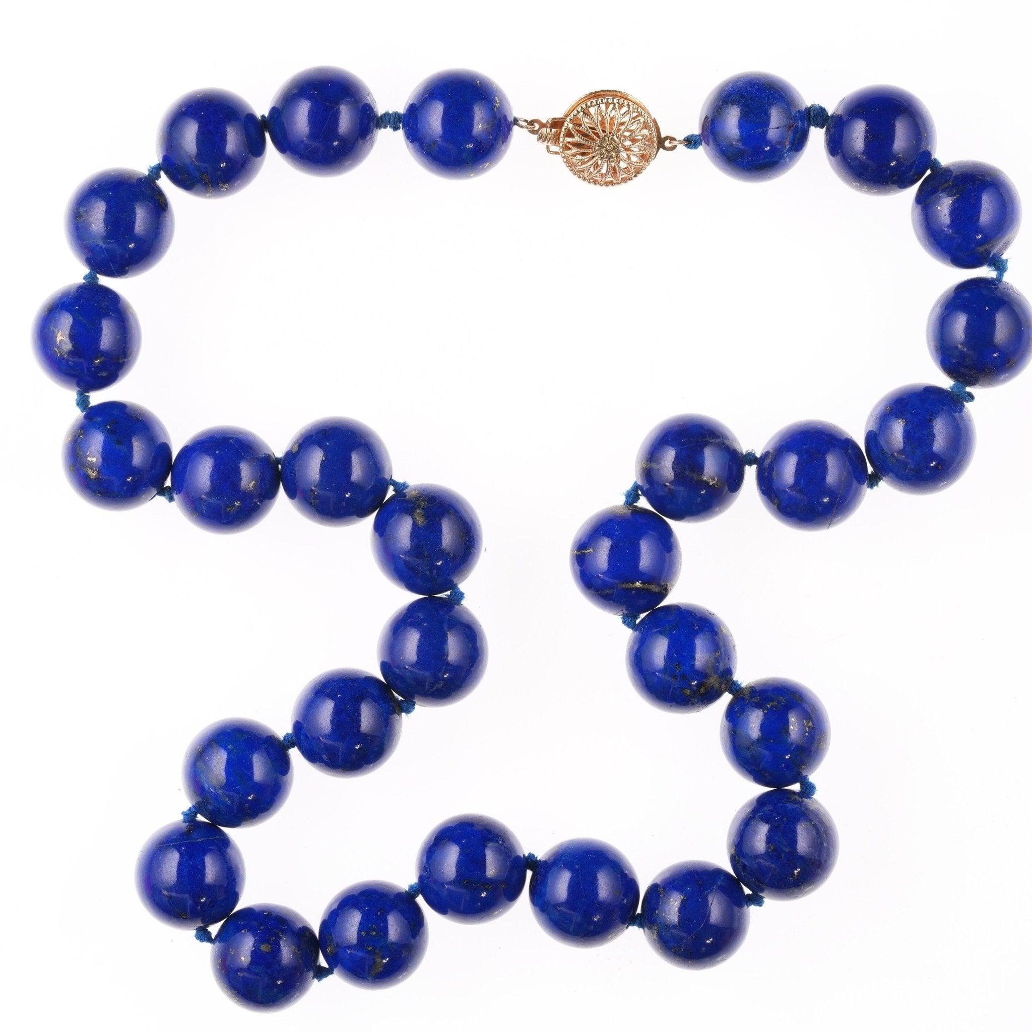 19" Vintage 14k clasp 14-15mm lapis lazuli beaded necklace. Nice quality vintage necklace with no issues. 122.2 grams. anderas