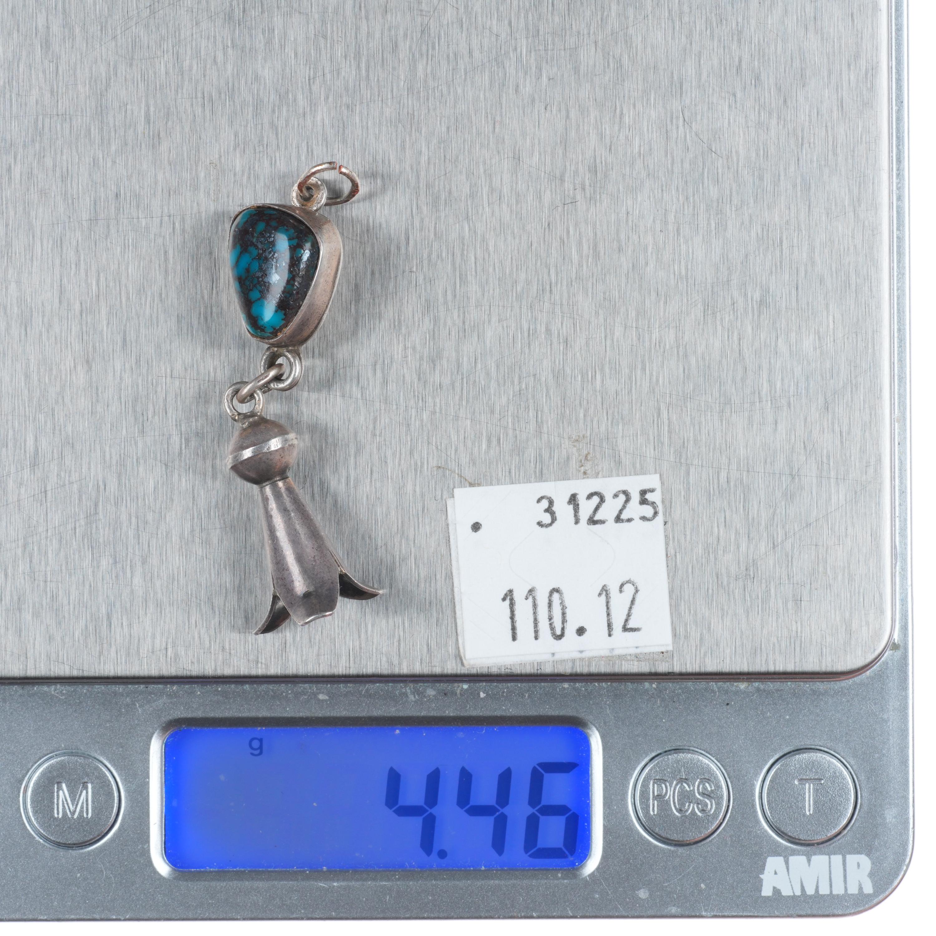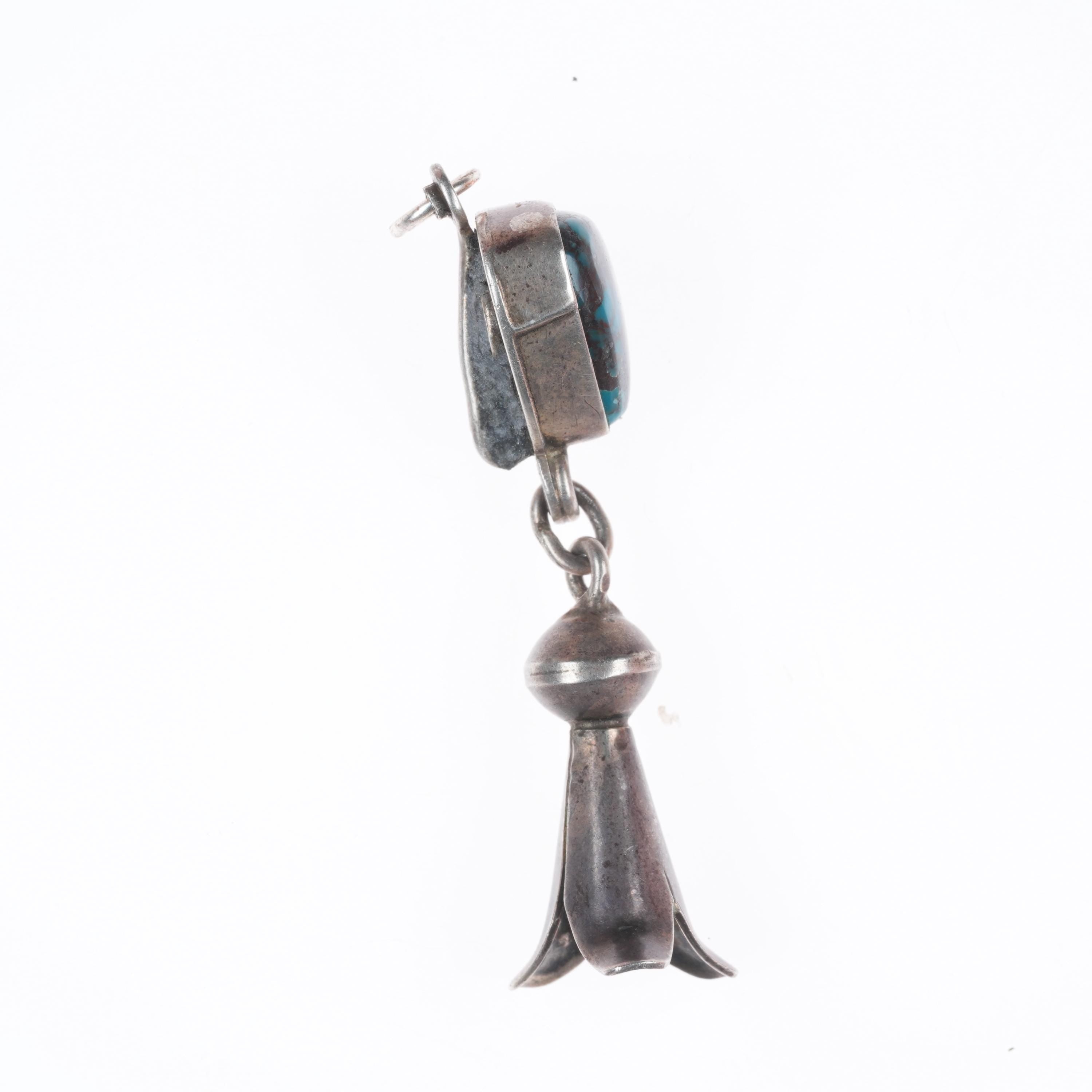 1950's Navajo high grade Bisbee turquoise enhancer pendant w/Pomegranate blossom