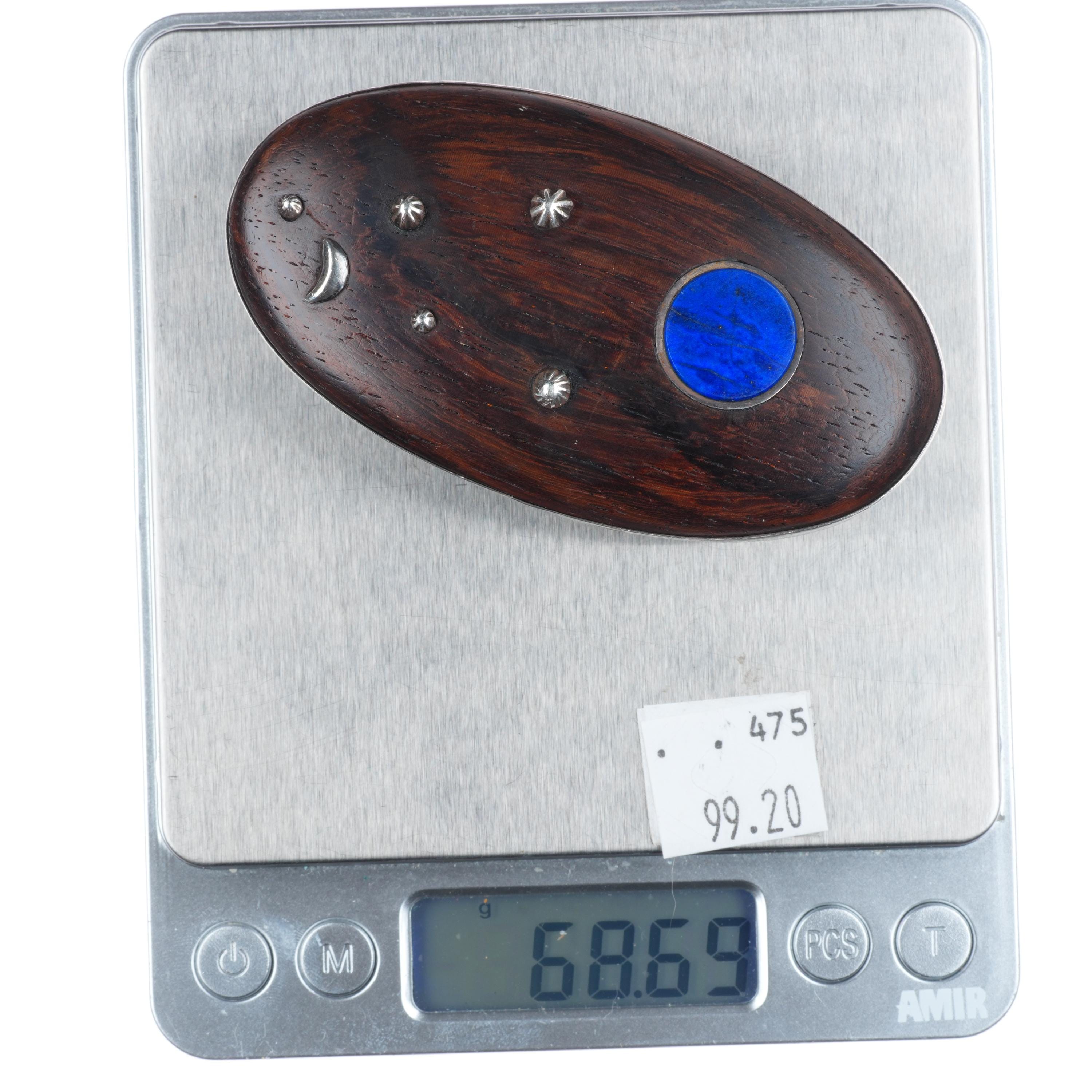 1977 Native American Modernist Sterling silver ironwood/lapis moon belt buckle