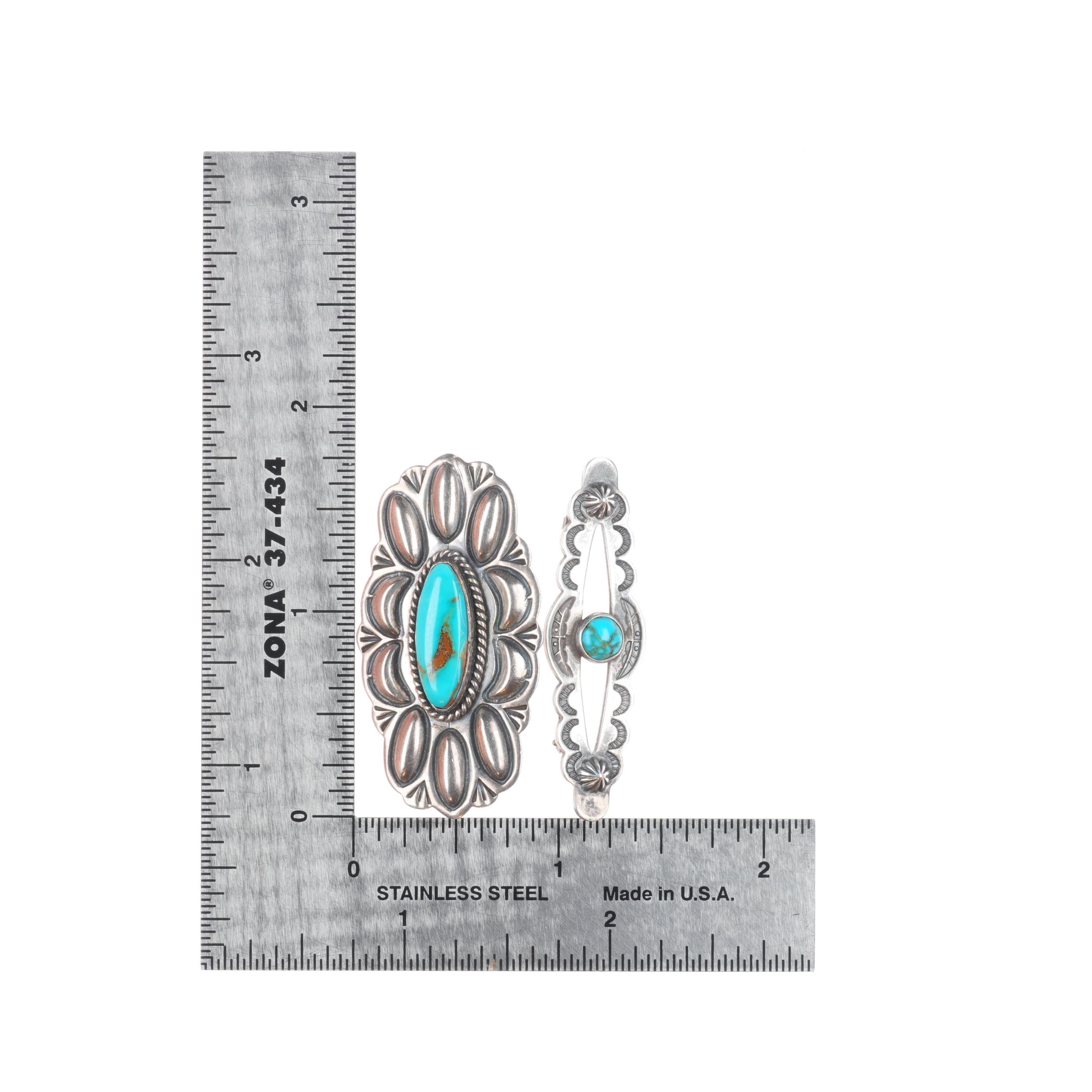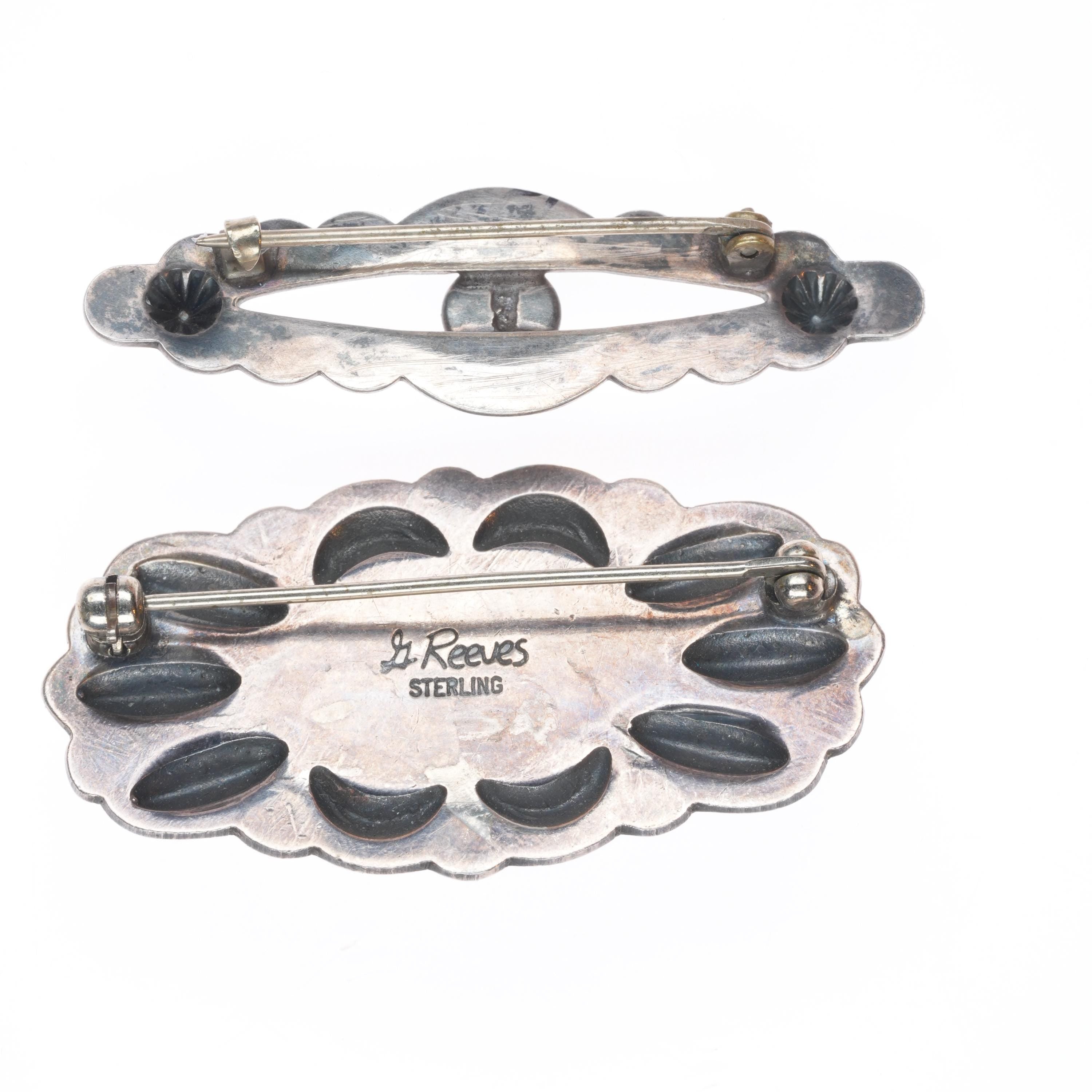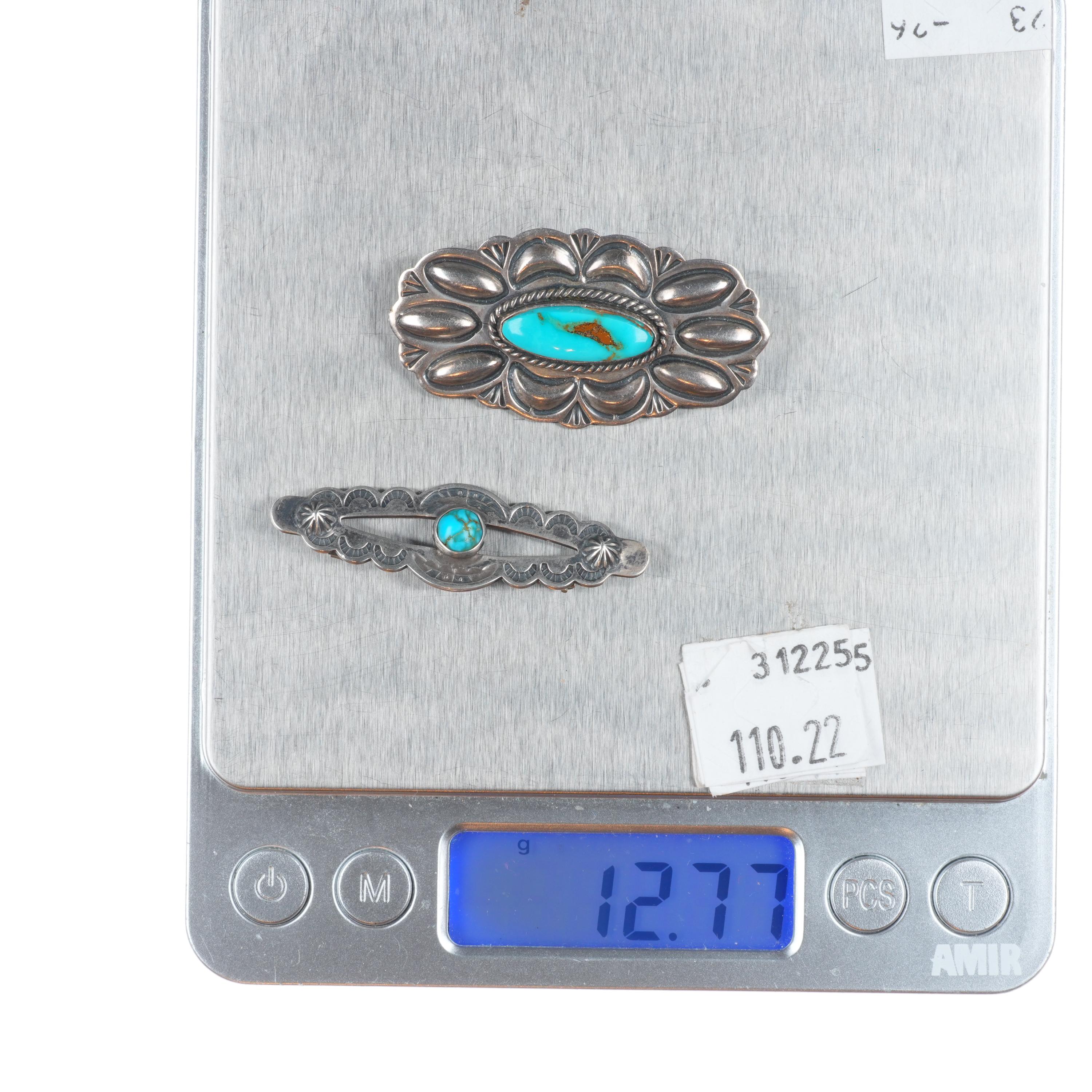 2 Vintage Navajo sterling silver pin/brooch w/nice turquoise Gary Reeves/c1940