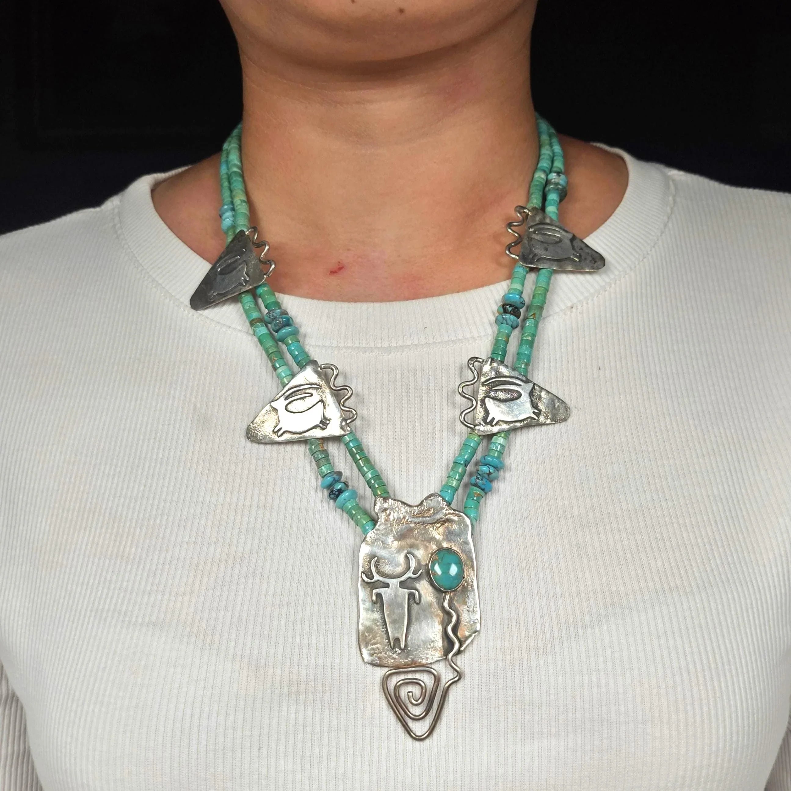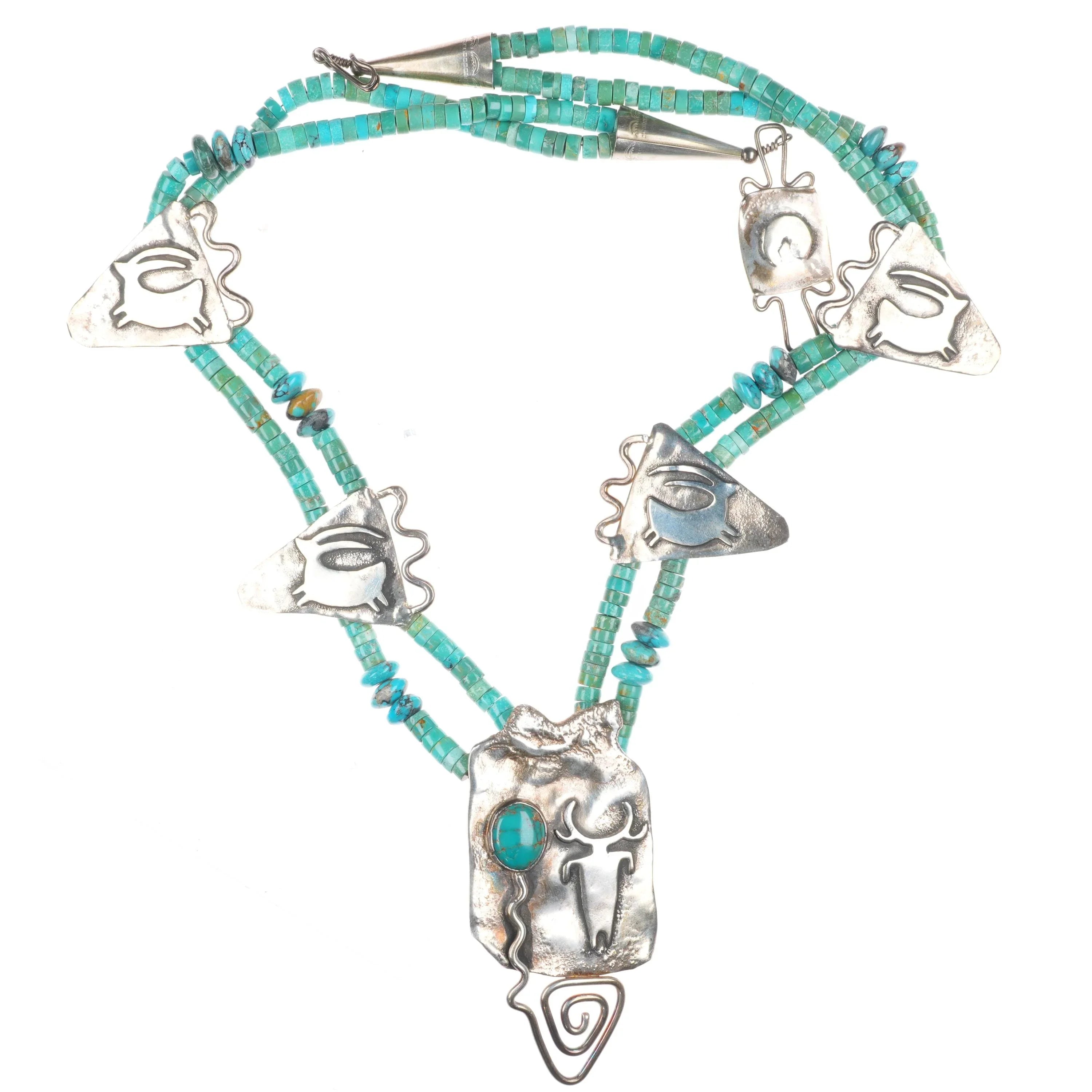 21" Shaman's Dream sterling silver petroglyph turquoise heishi necklace