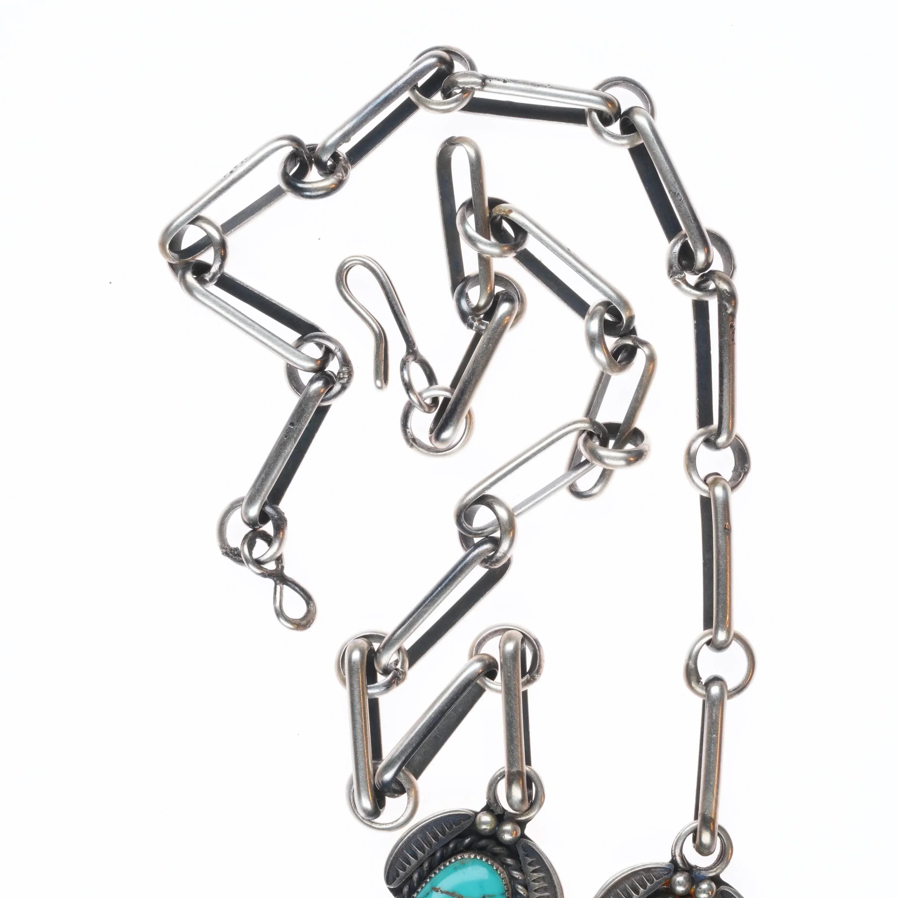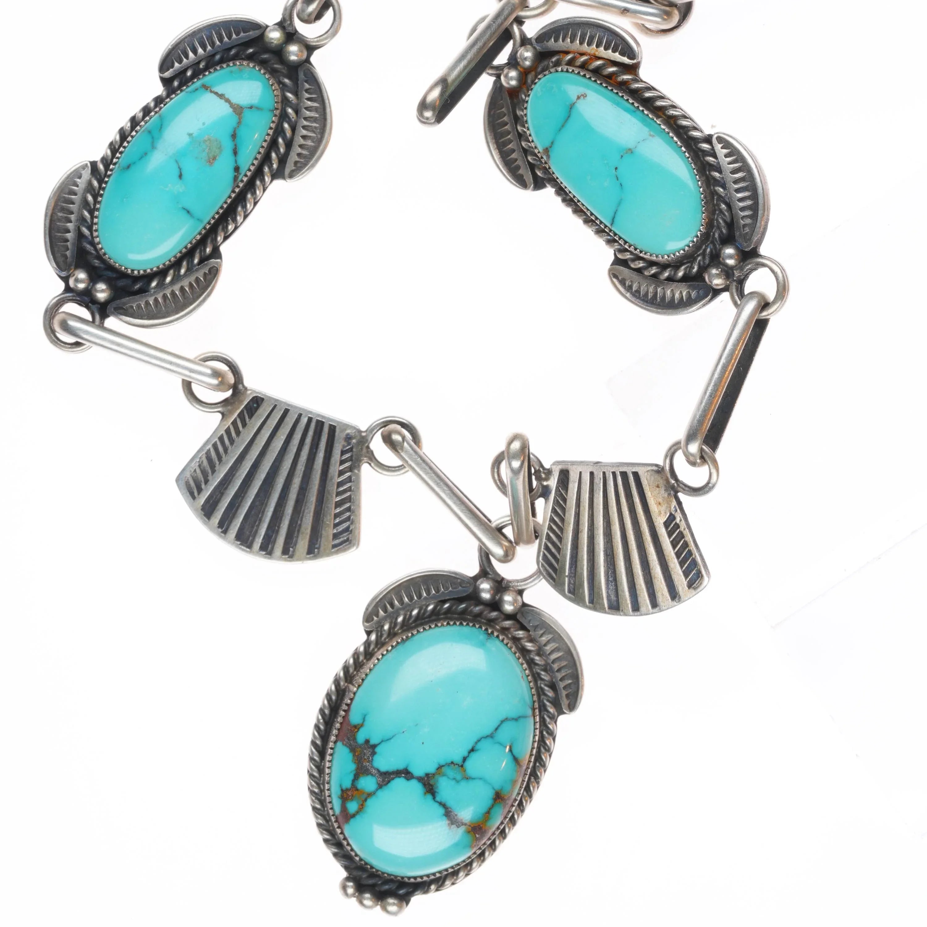 22" 40's-50's Navajo sterling silver high grade turquoise necklace nice stamping