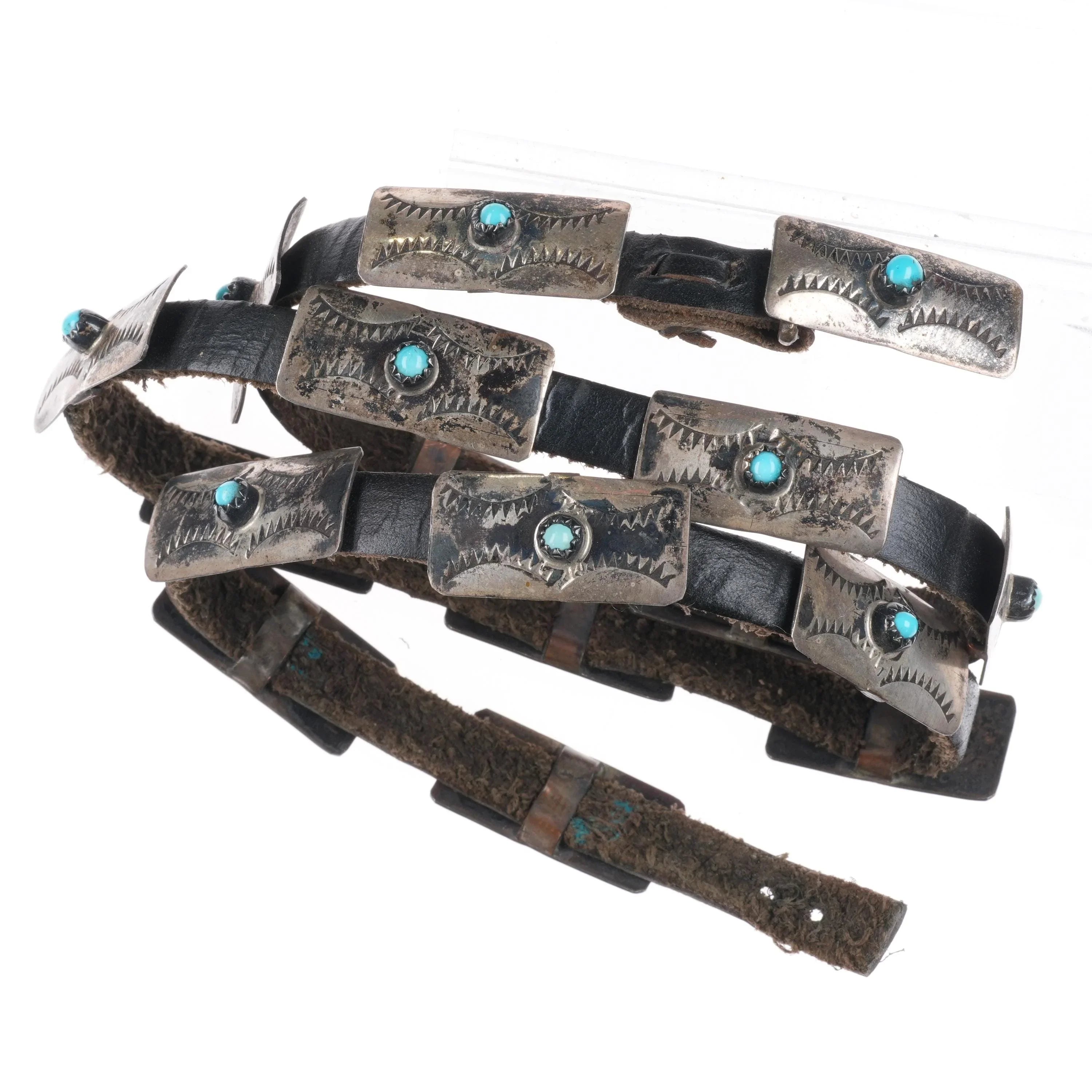 24.5" Navajo sterling silver and turquoise conchos hatband on leather