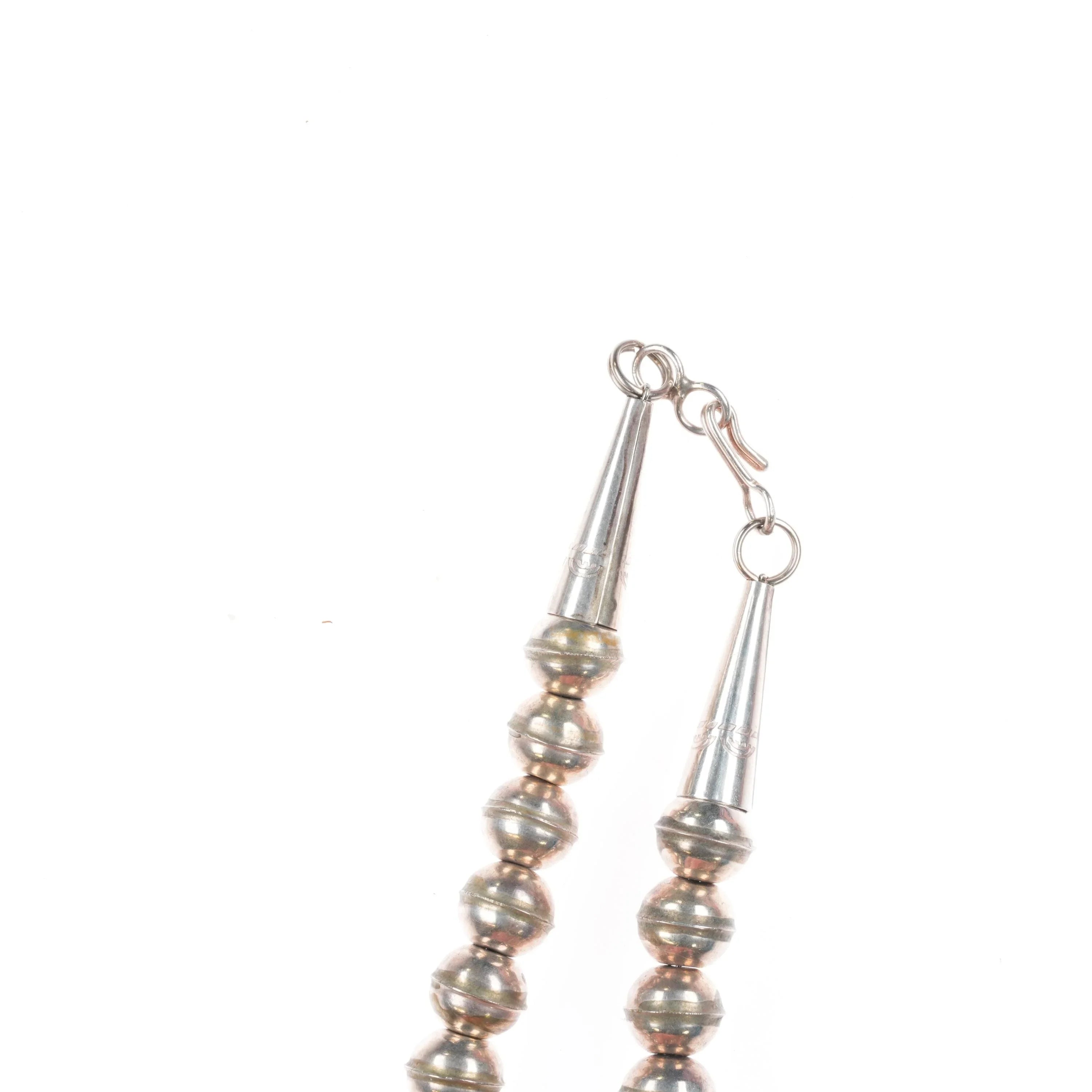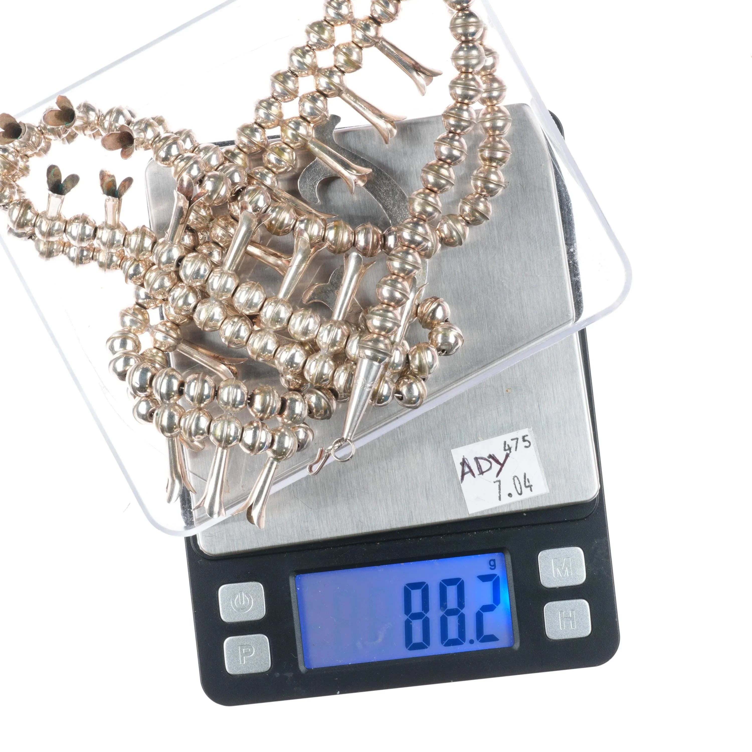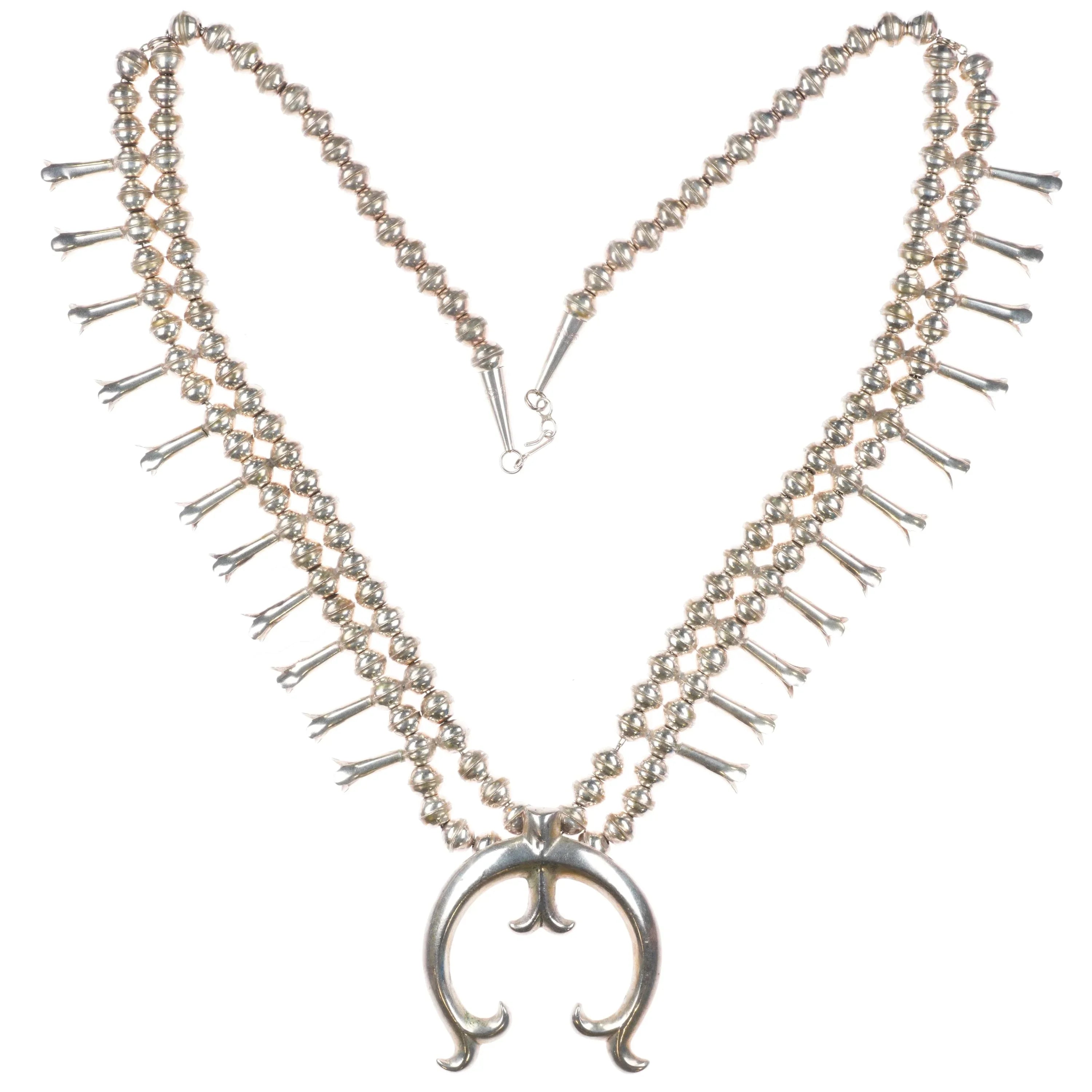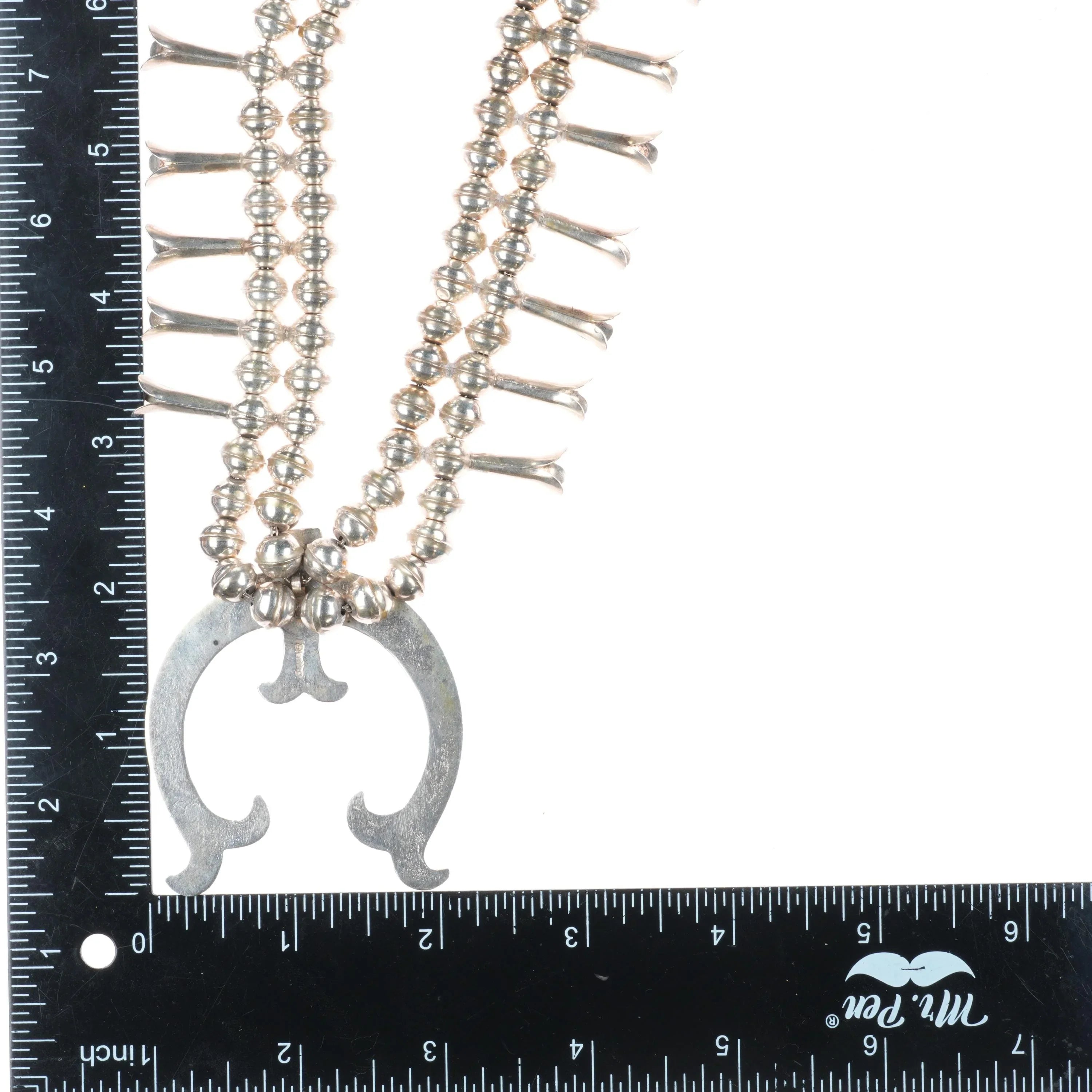 28.5" c1980's Vintage sterling silver Navajo squash blossom necklace cast naja