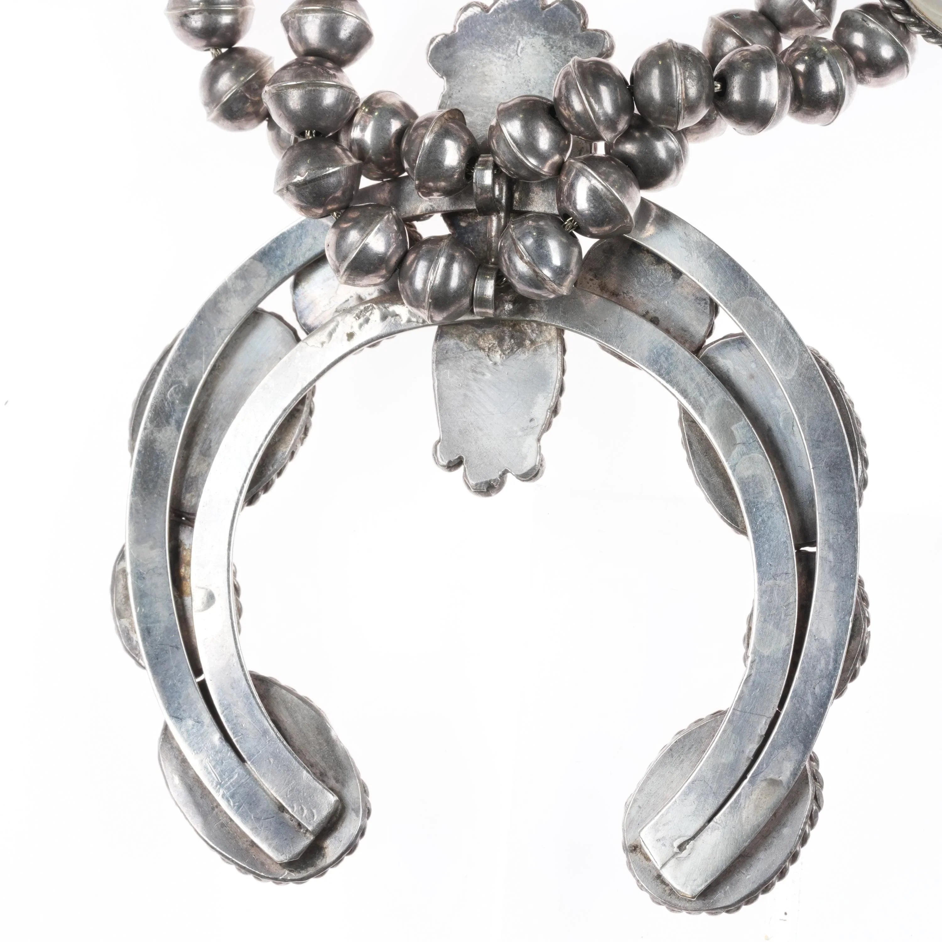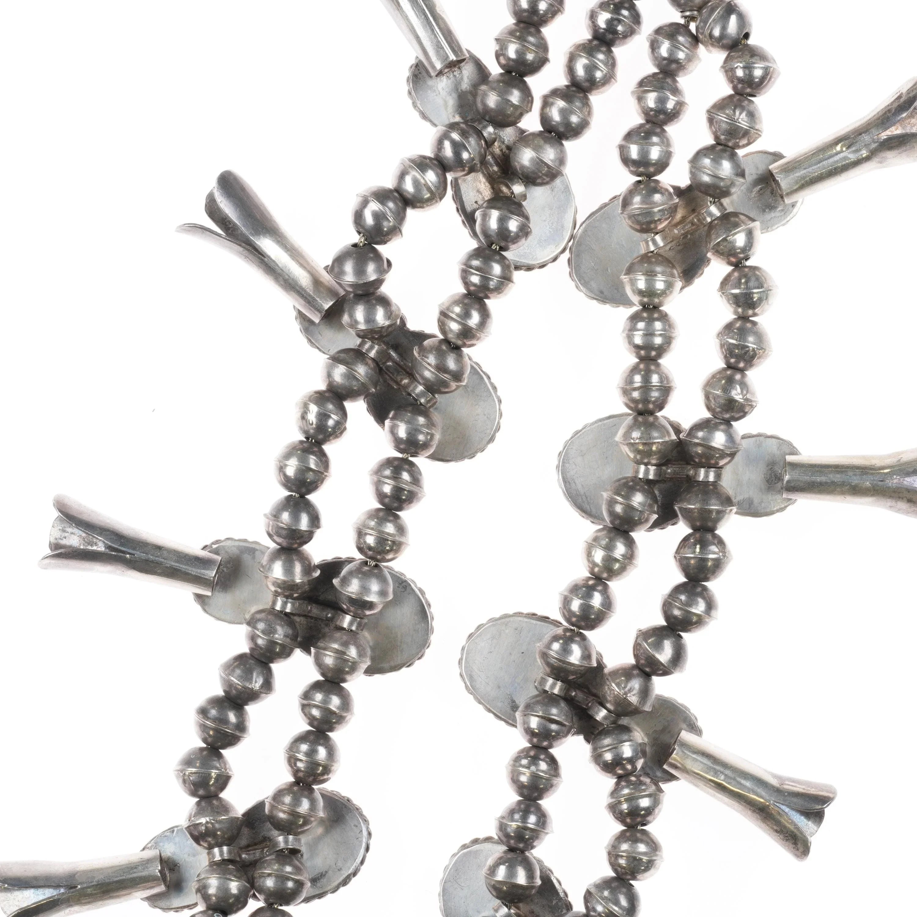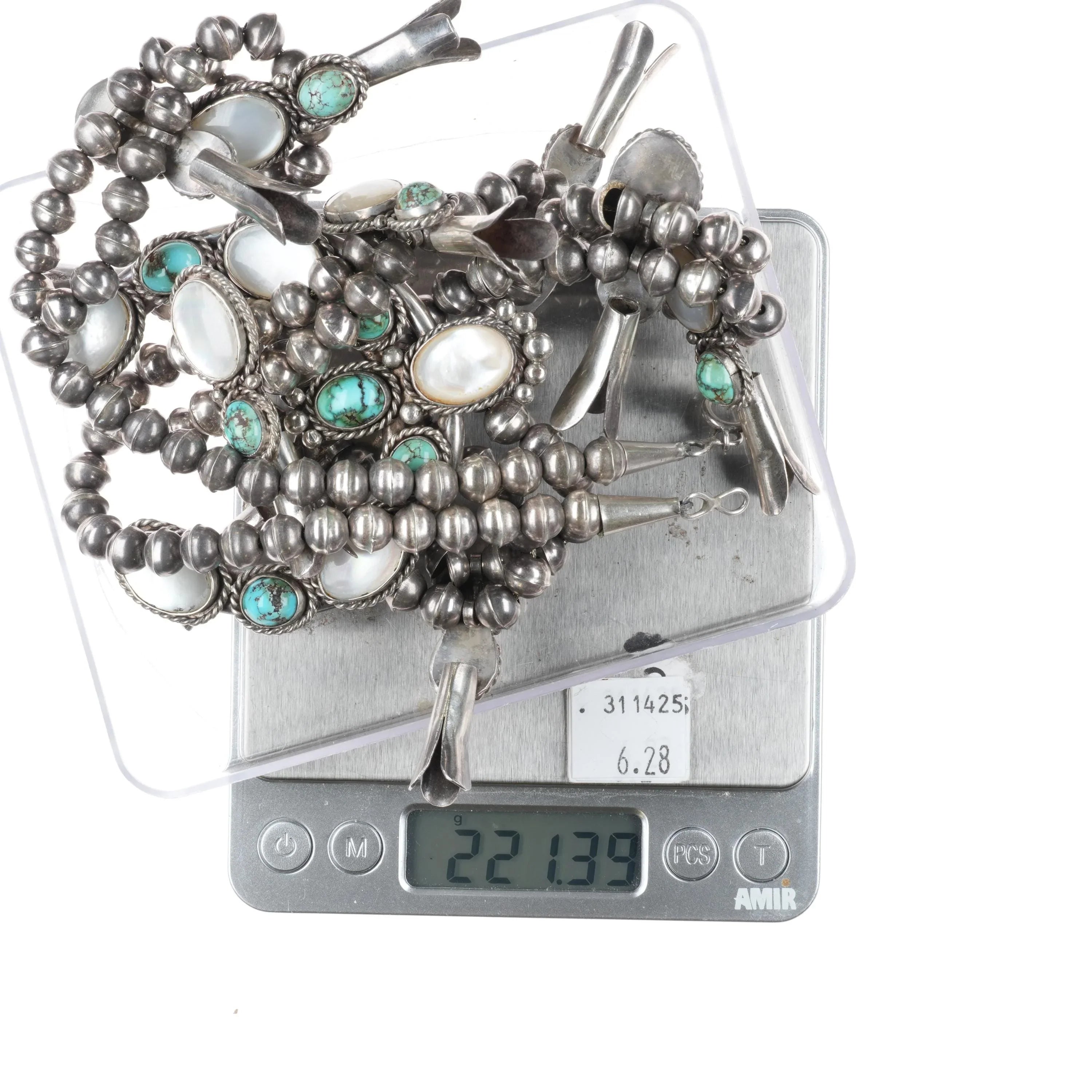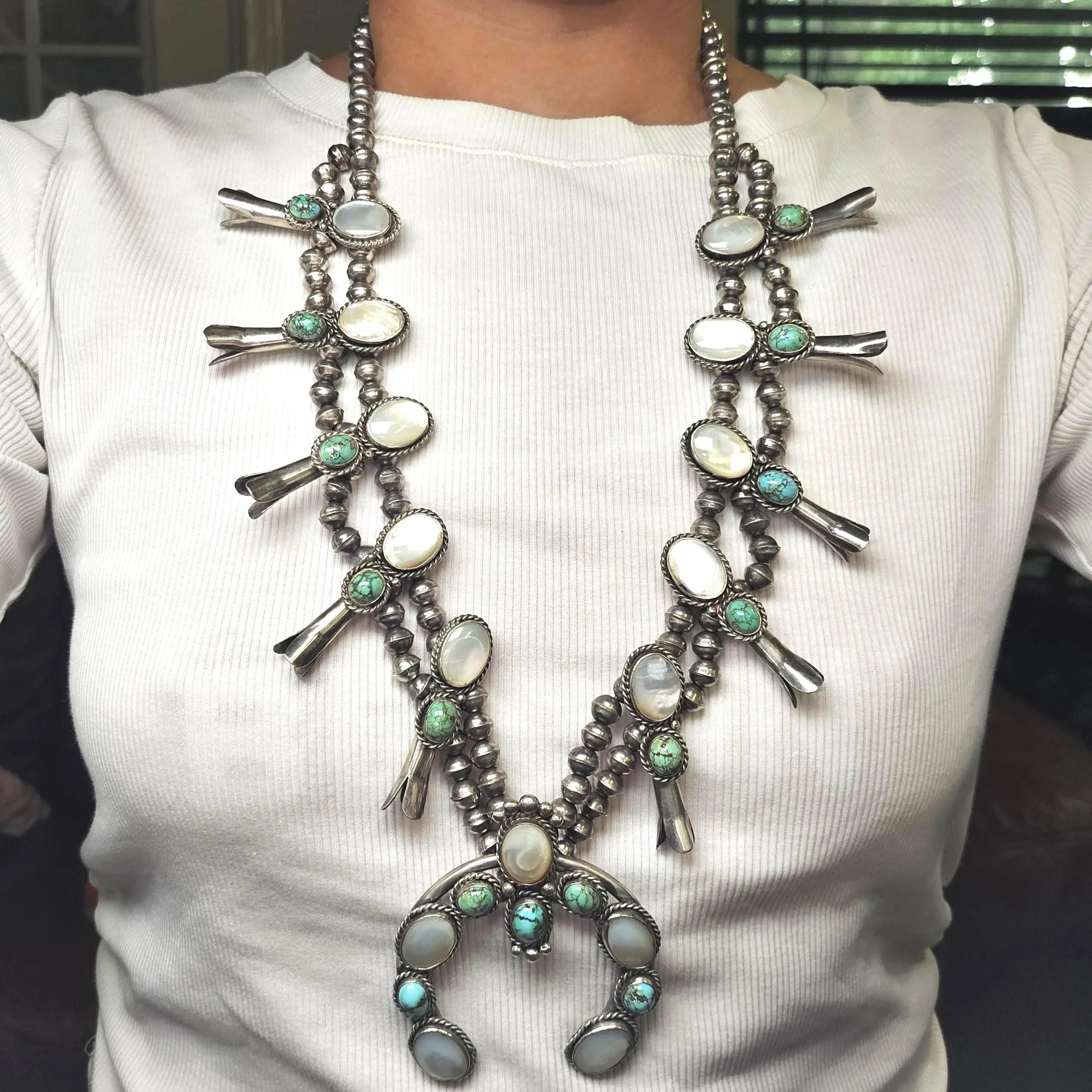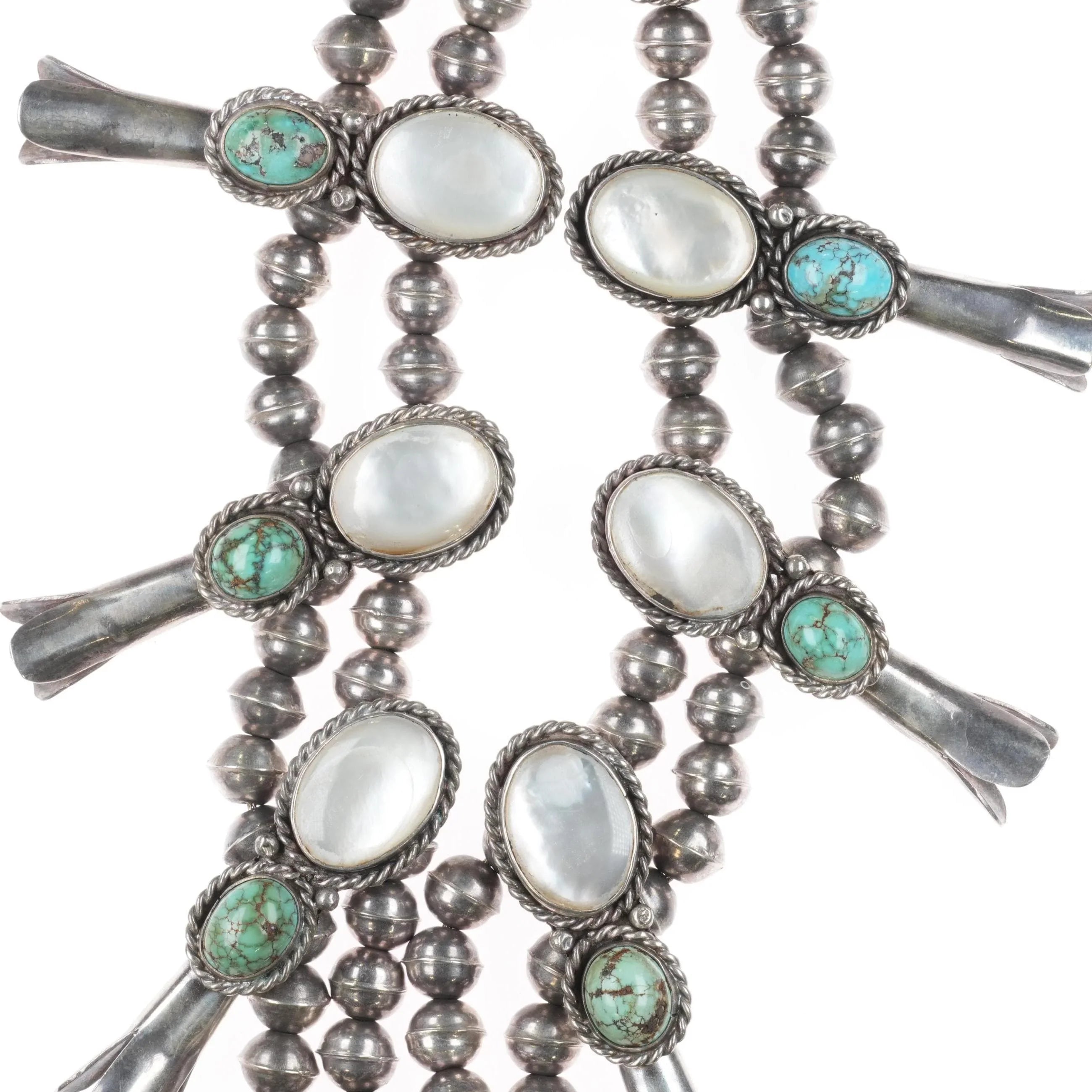 30" Vintage Navajo turquoise/shell MOP sterling silver squash blossom necklace