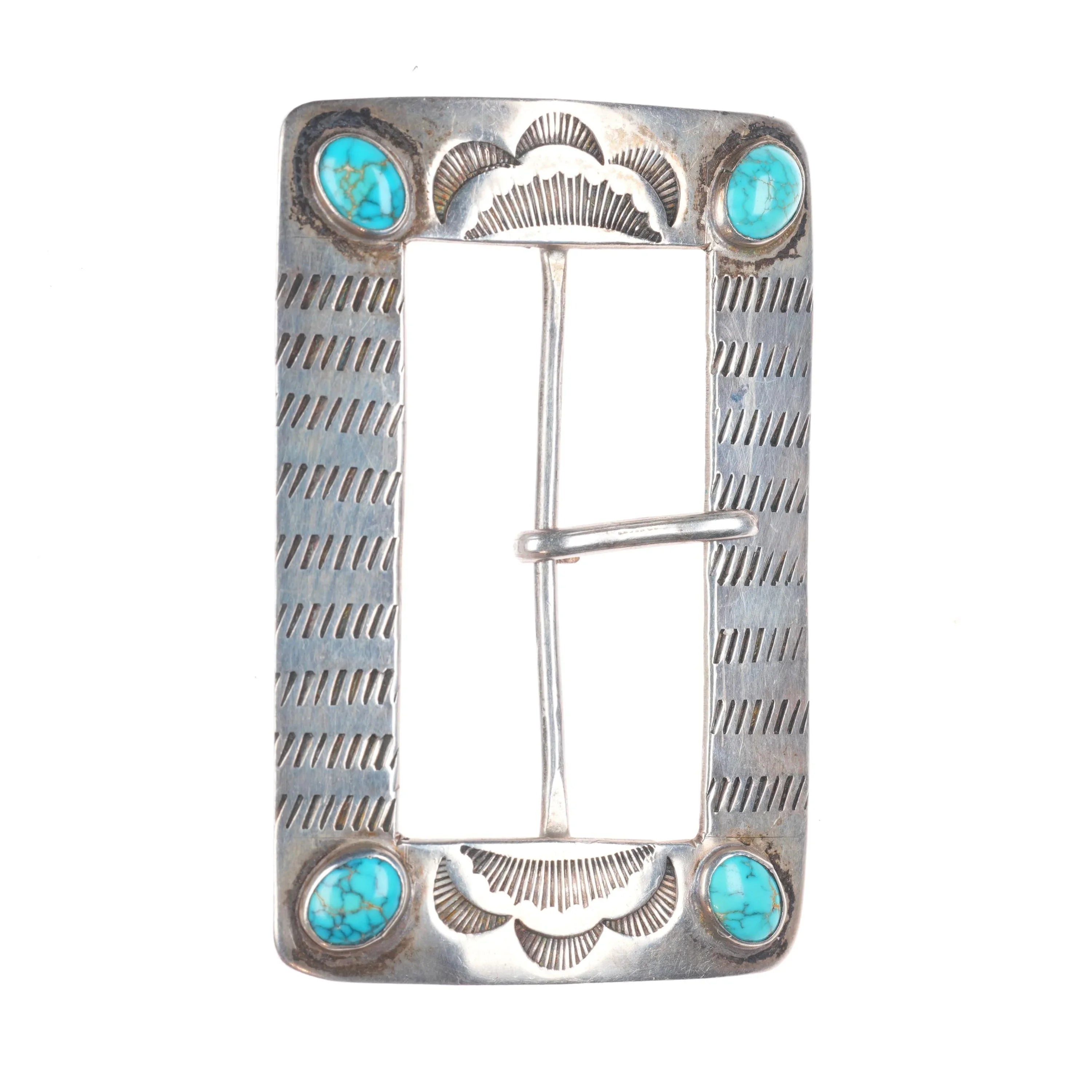 30's-40's Navajo Lone Mountain Turquoise sterling silver concho belt buckle