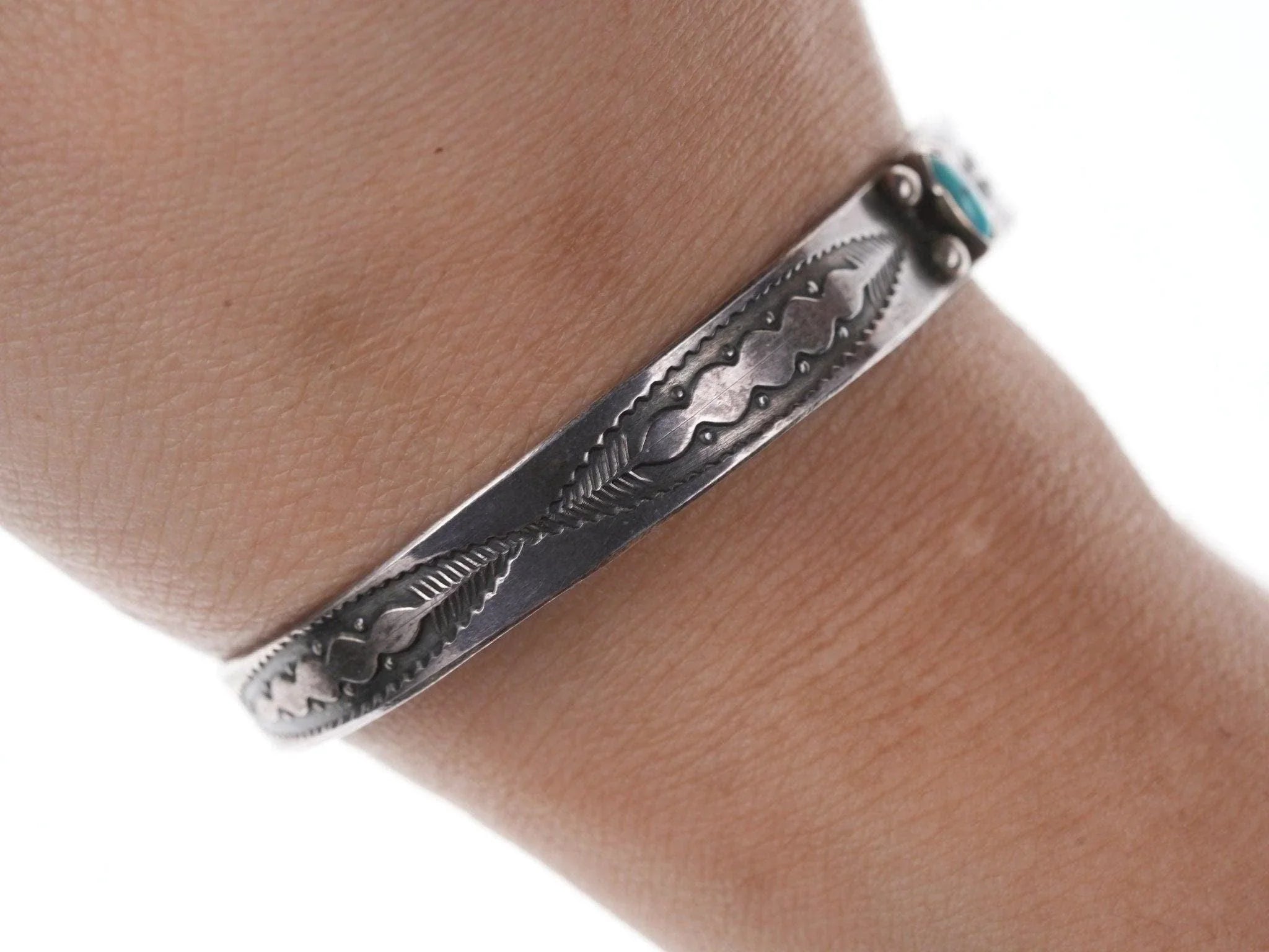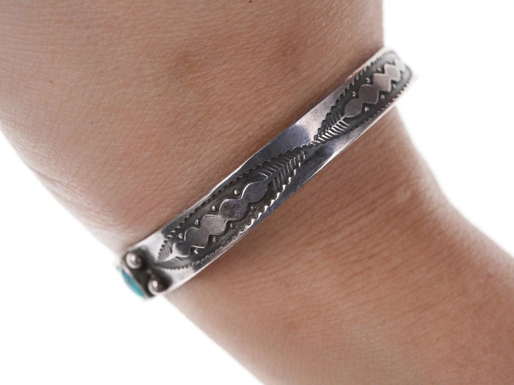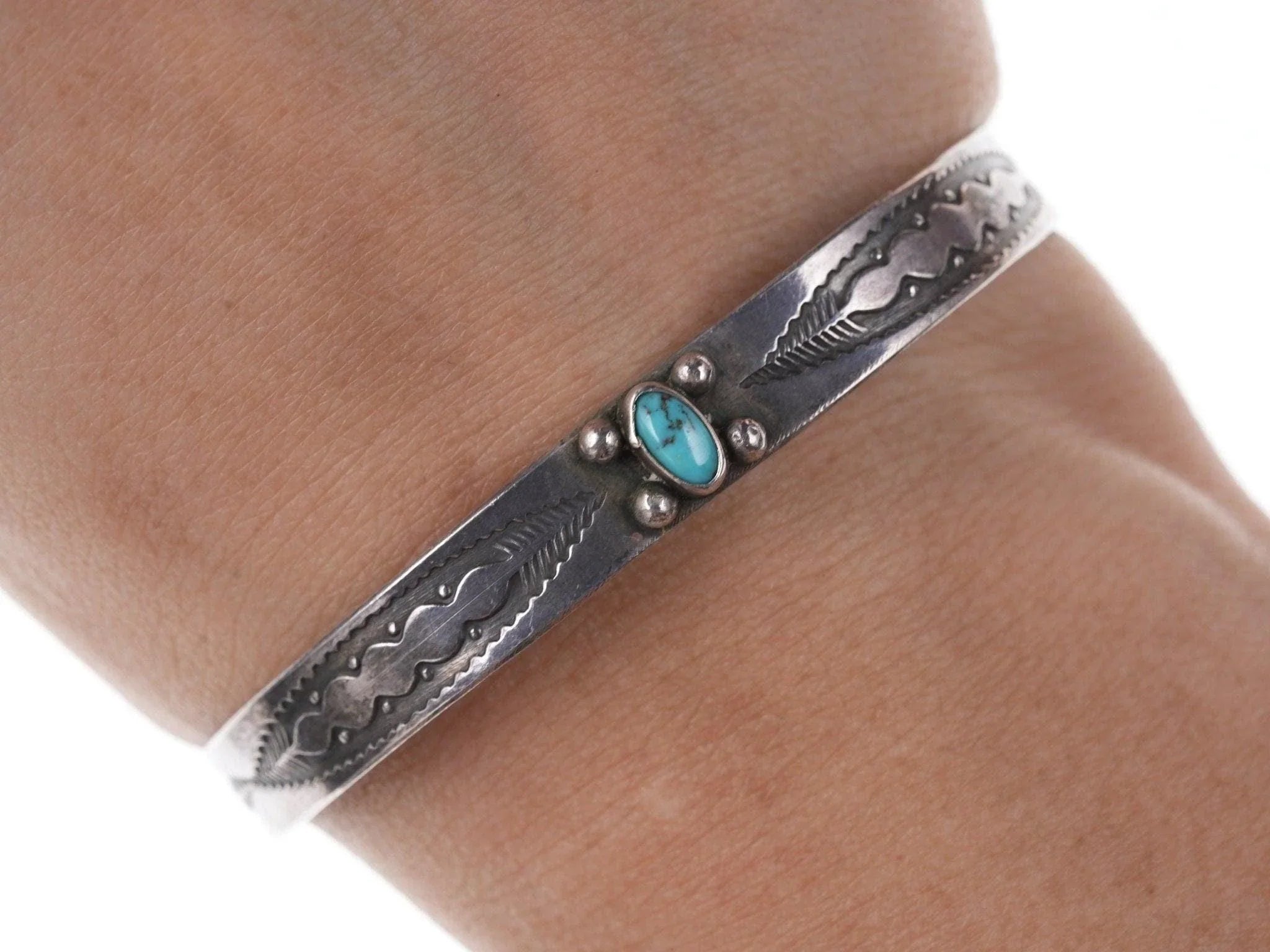 6.12" 30's-40's Navajo Sterling/turquoise slim stacker cuff bracelet