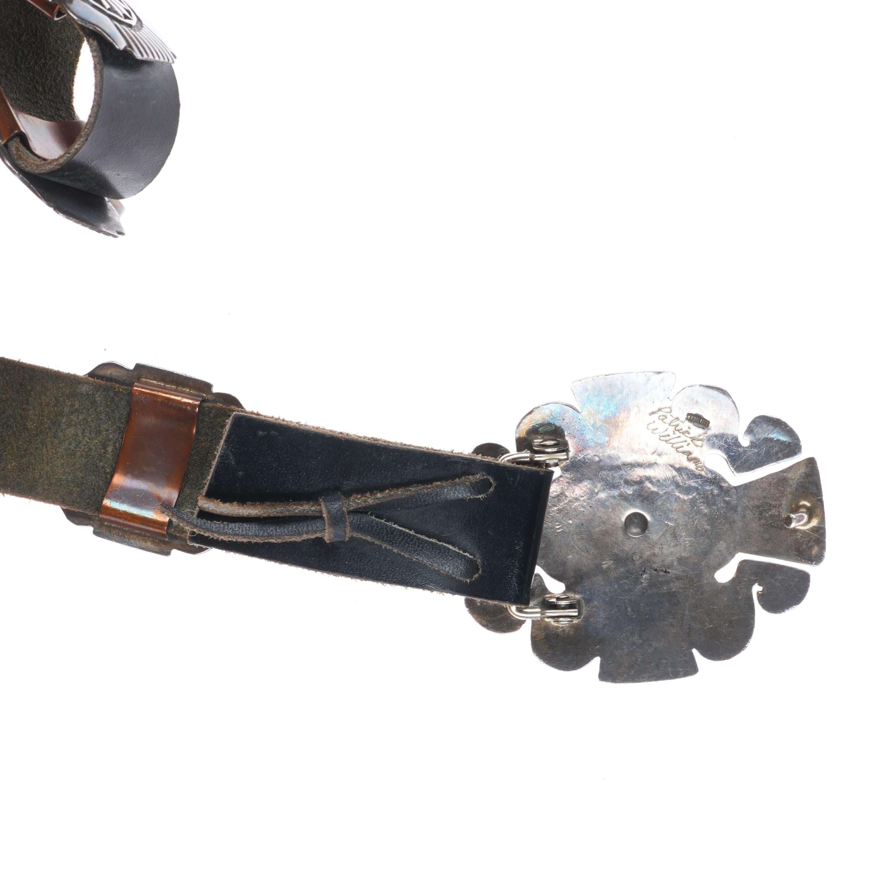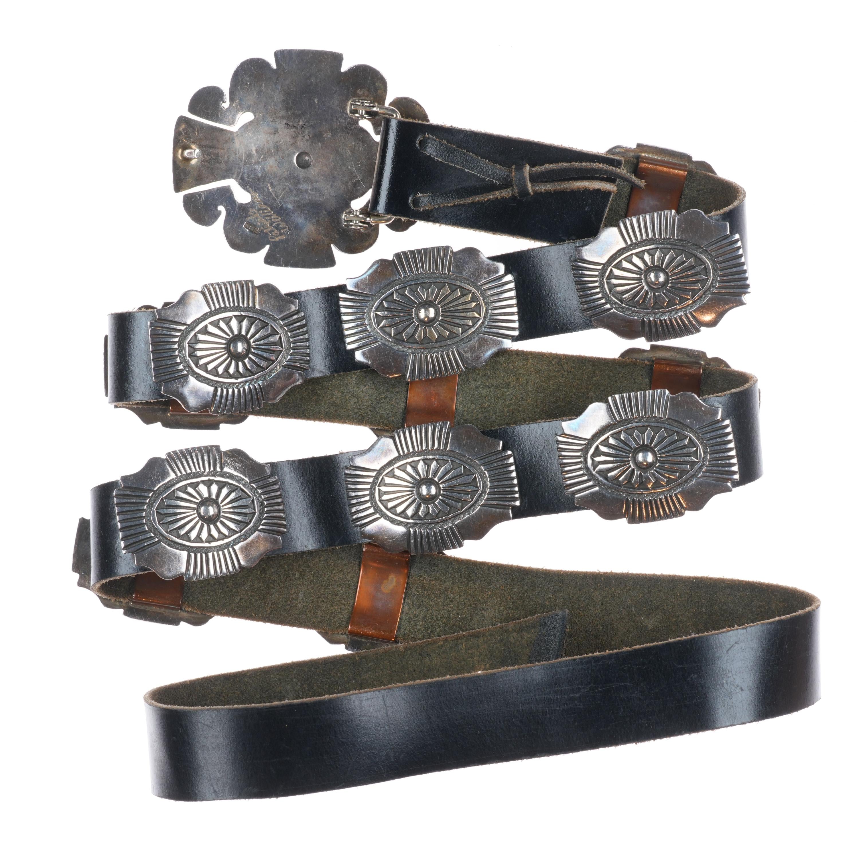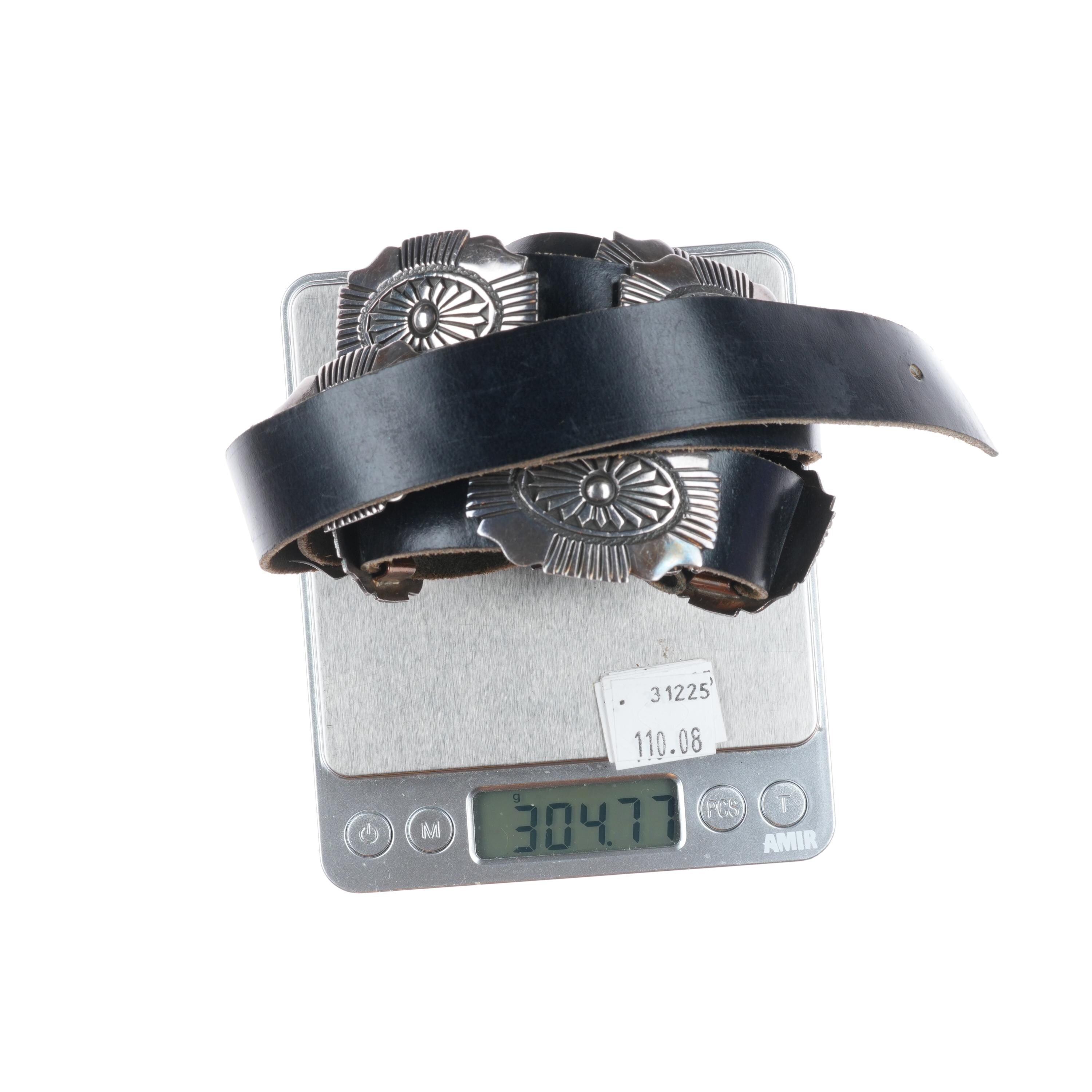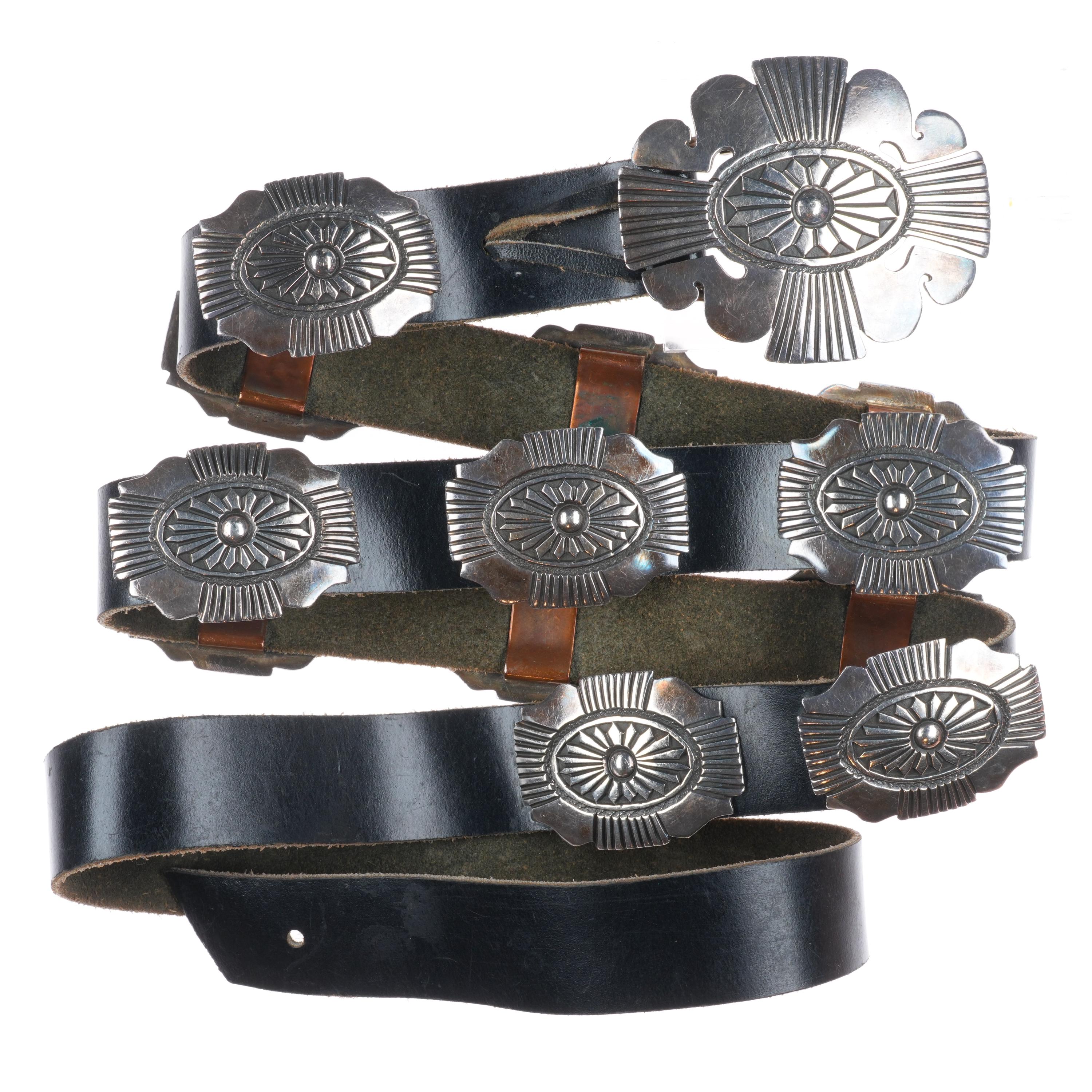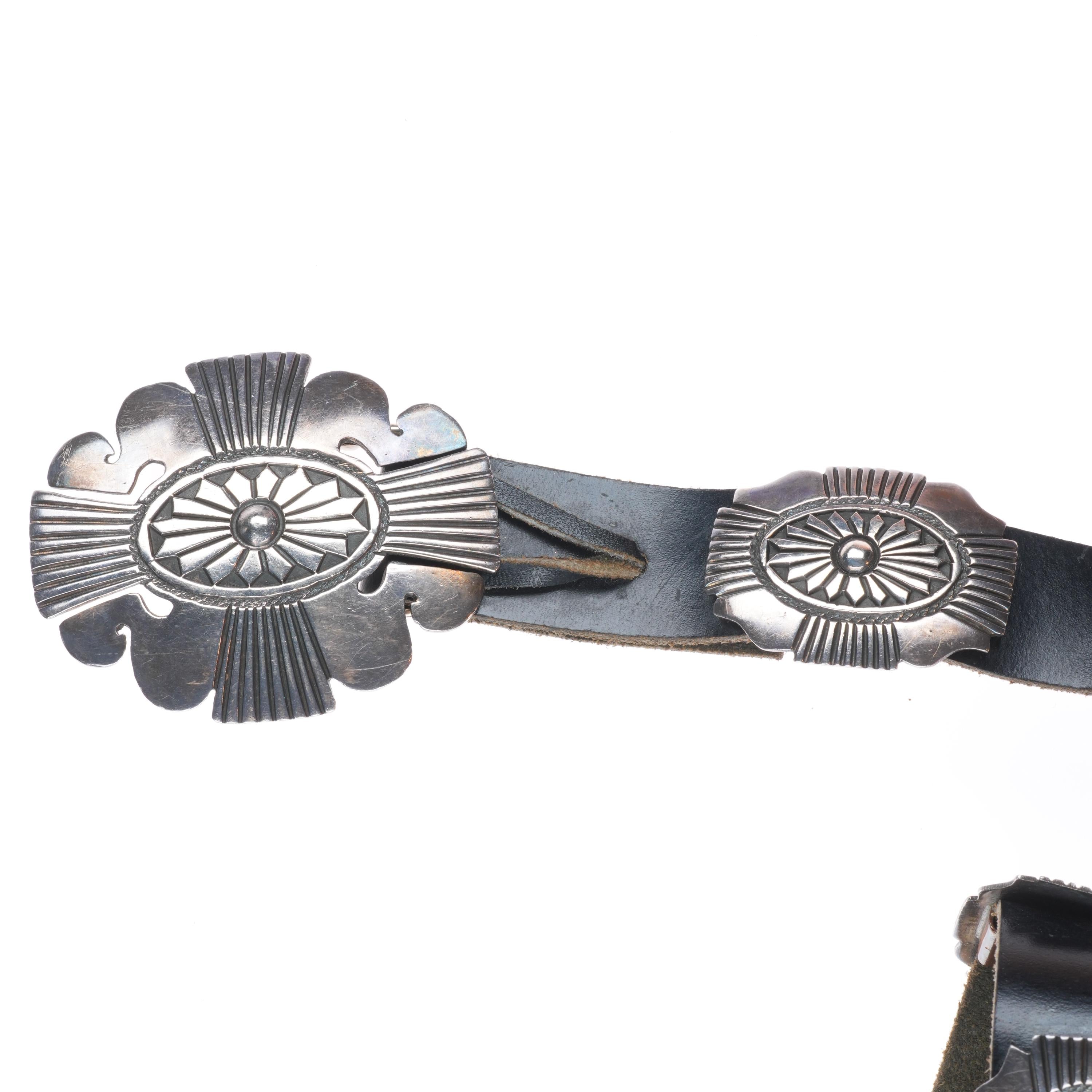 49" Vintage Navajo sterling silver ketoh style concho belt Patrick Williamst. Fits up to a 49" waist with existing holes, but can be hooked shorter or a few holes could be added later. Tape measure shown in pics.. Weight and measurements in pictures. No damage or issues, tested and guaranteed solid sterling silver. 1 buckle and 12 conchos, circa last quarter of the 20th century.