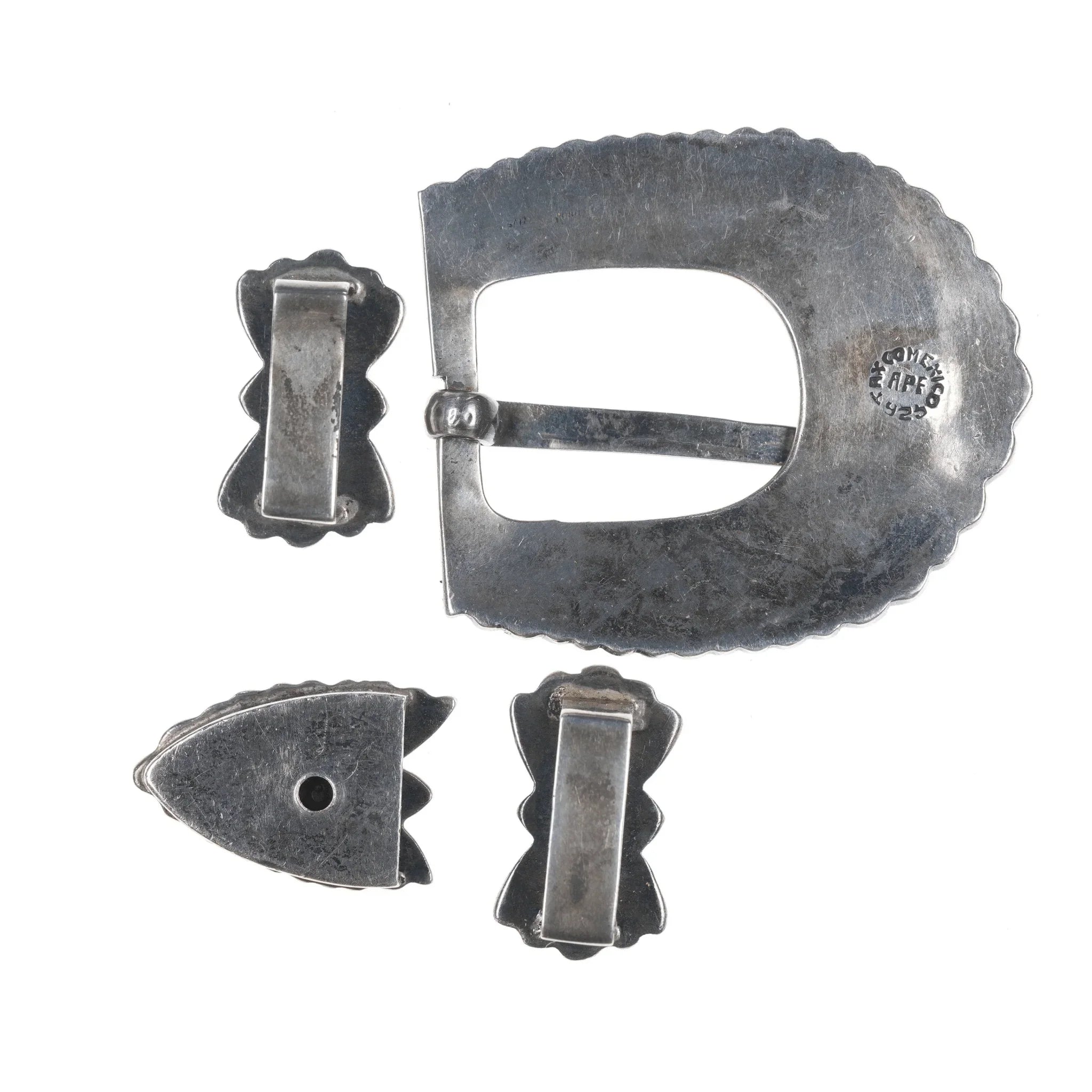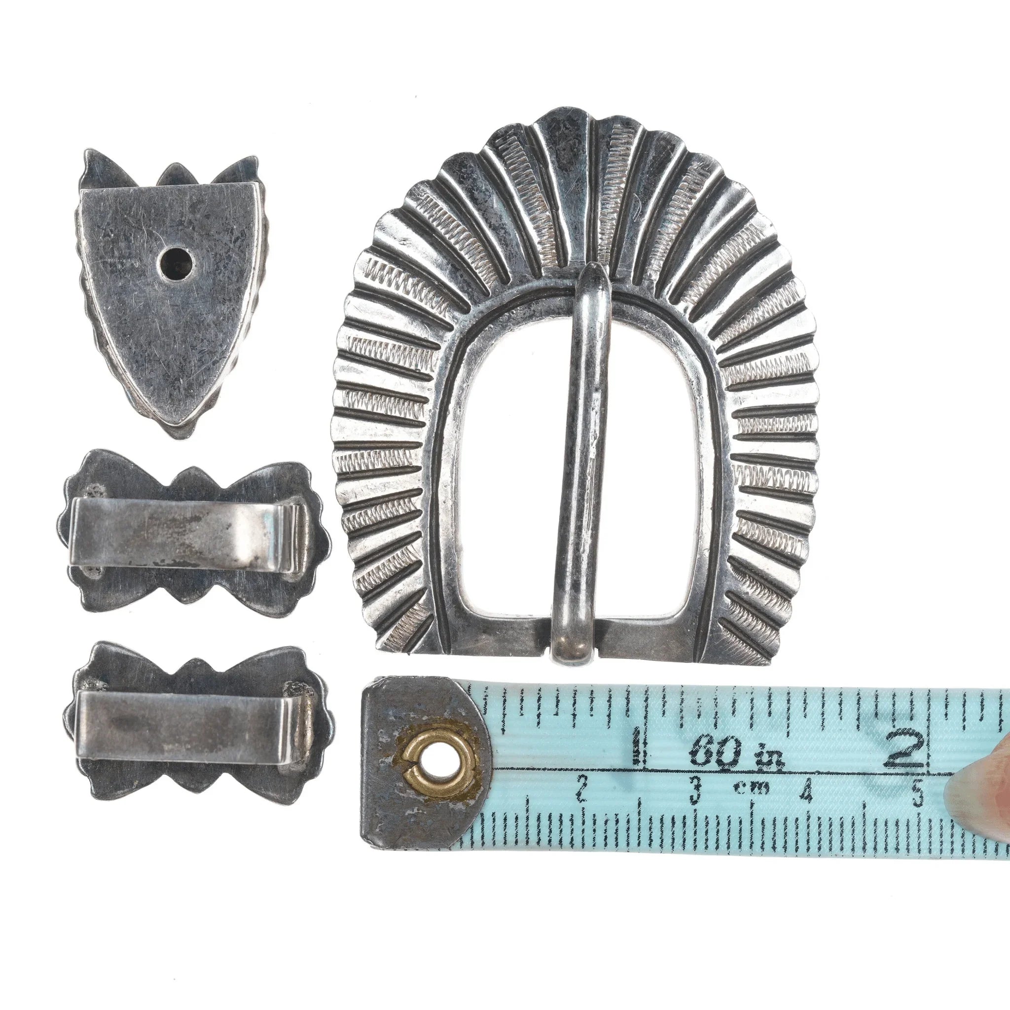 5/8" Taxco Sterling hand chiseled rocker engraved ranger belt buckle set