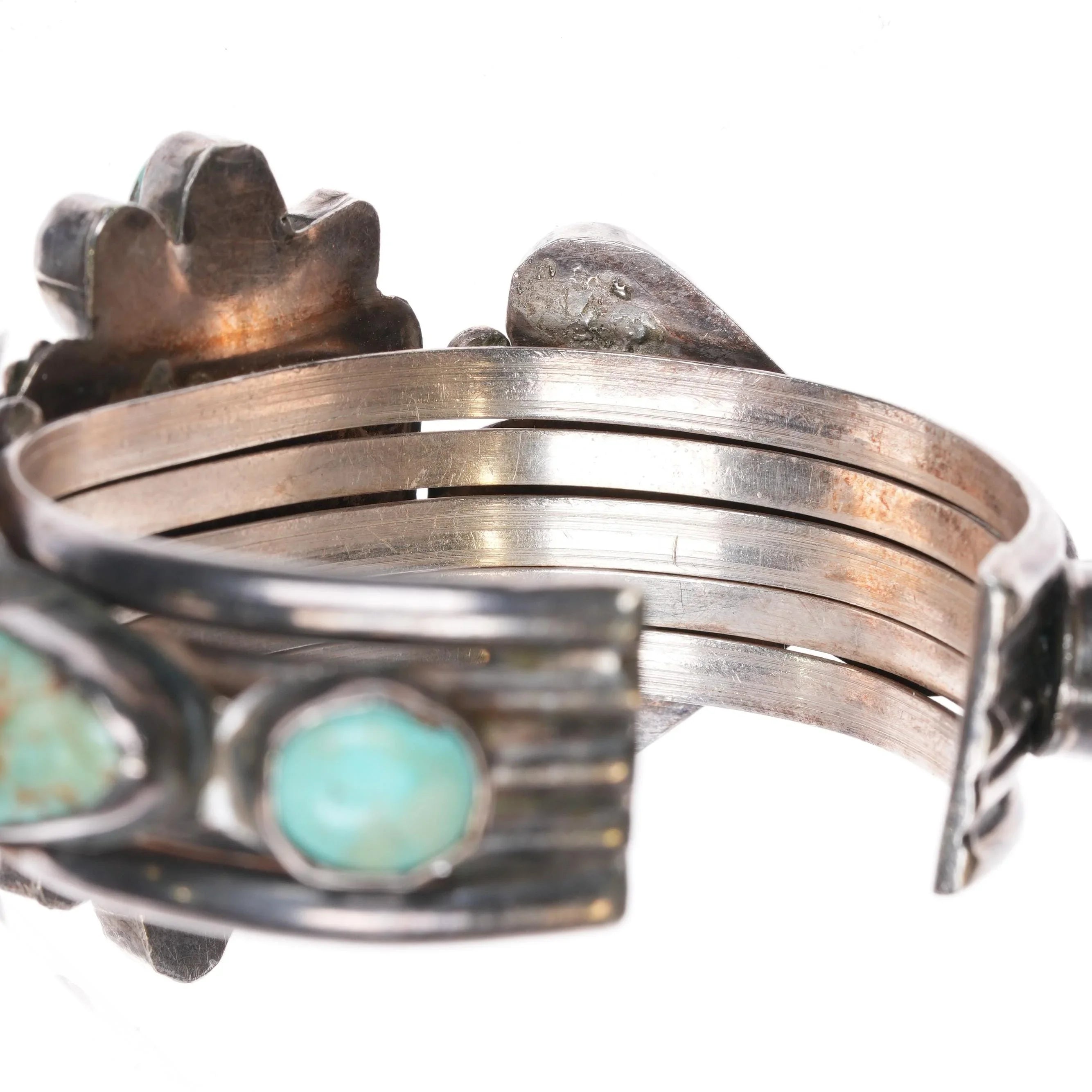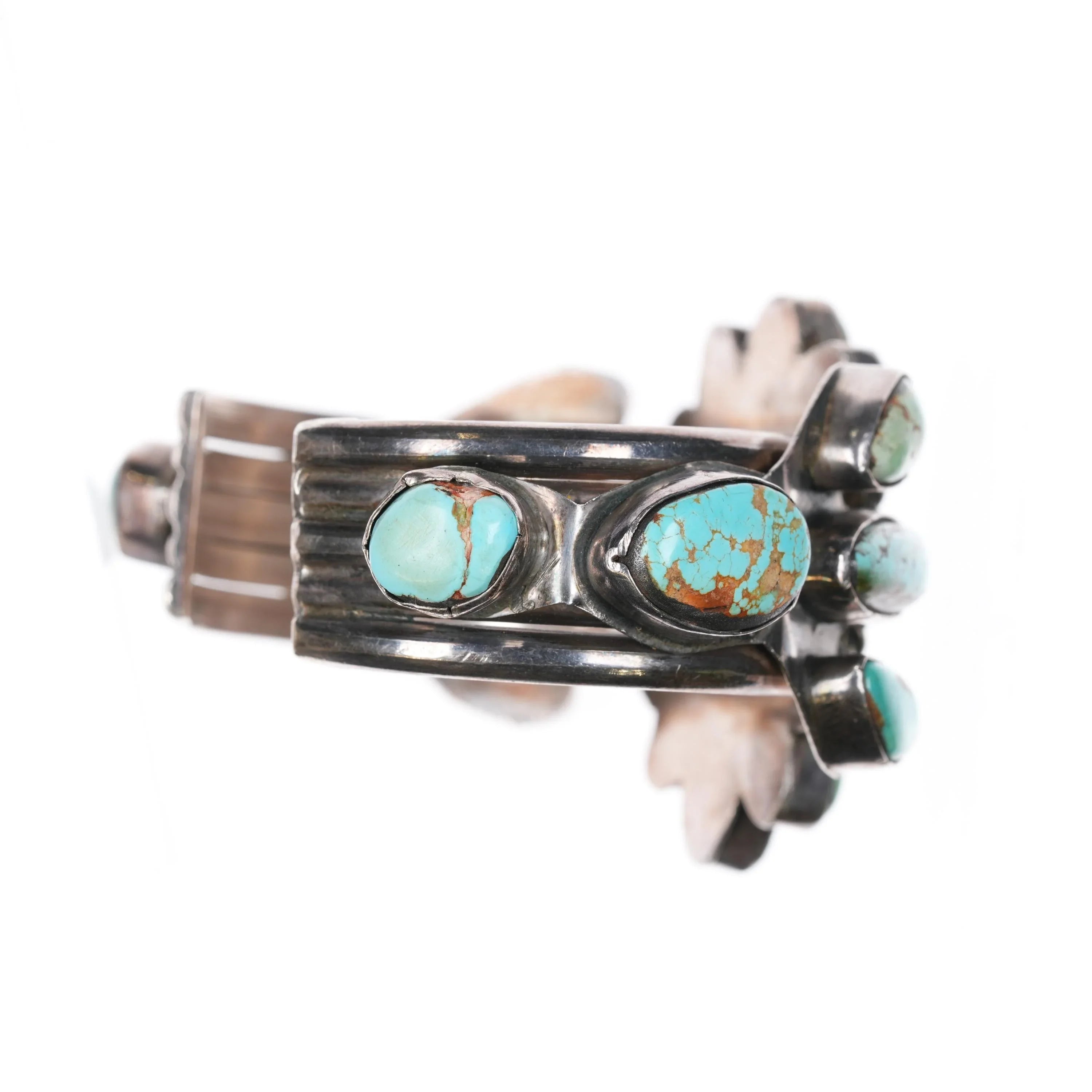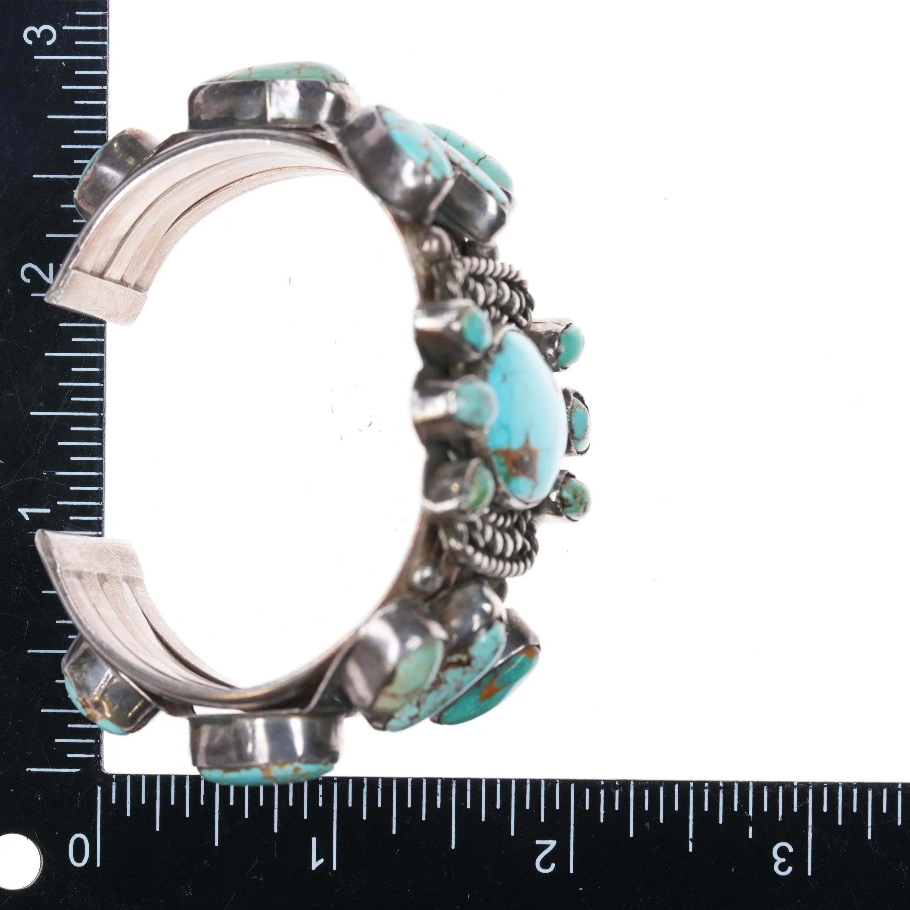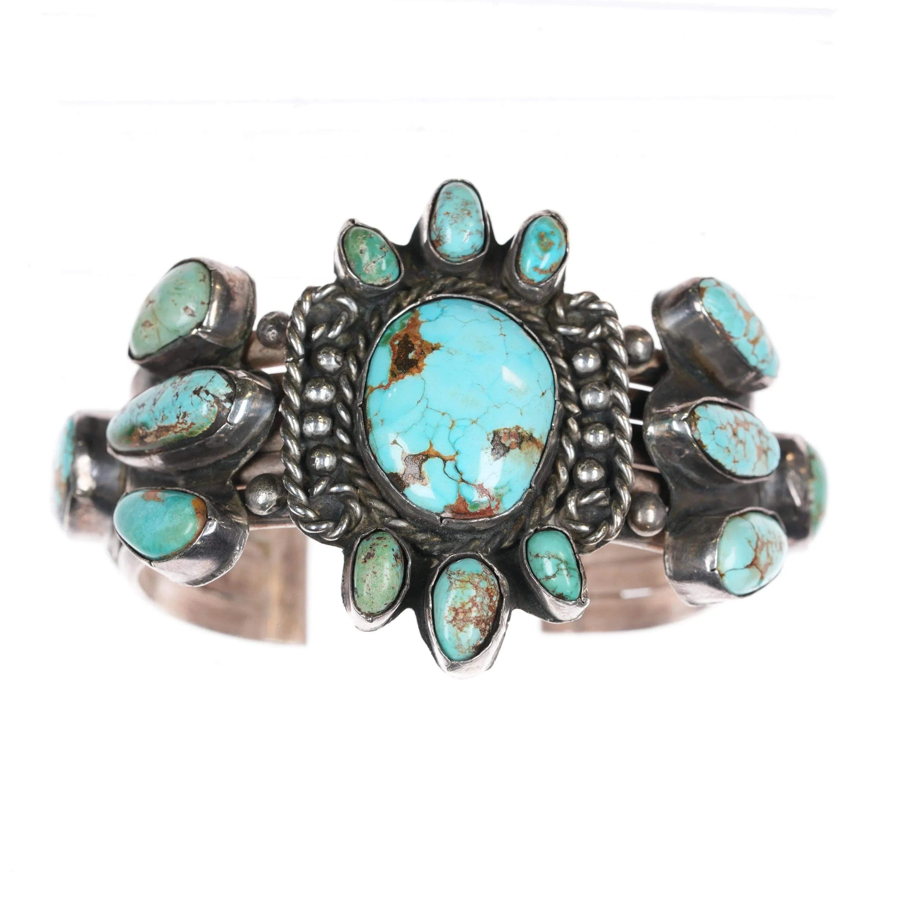 6.1" 40's-50's Navajo turquoise cluster cuff bracelet side stone sterling silver