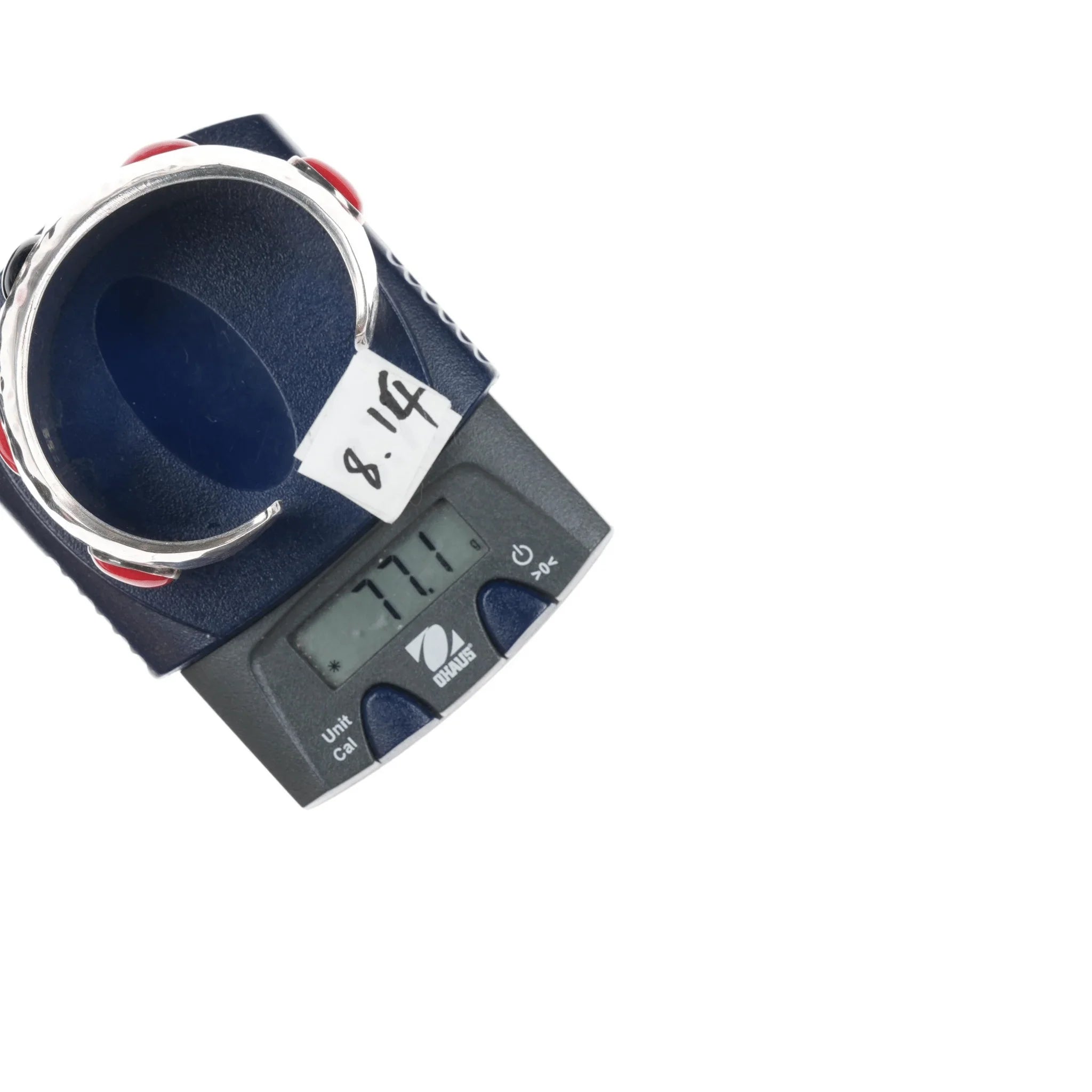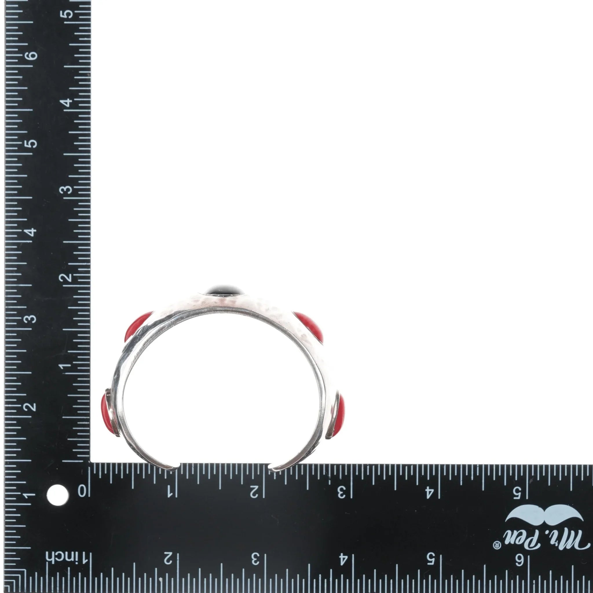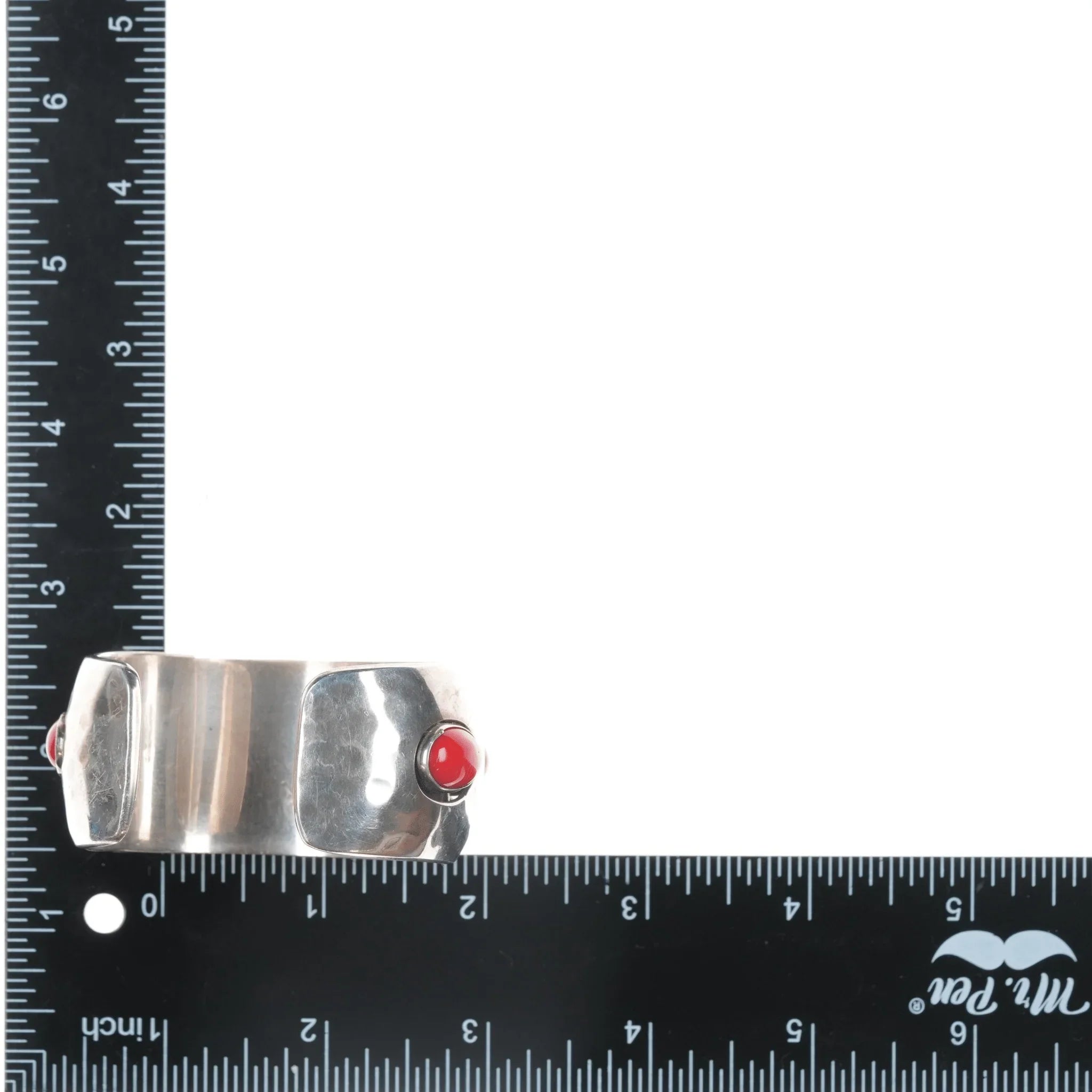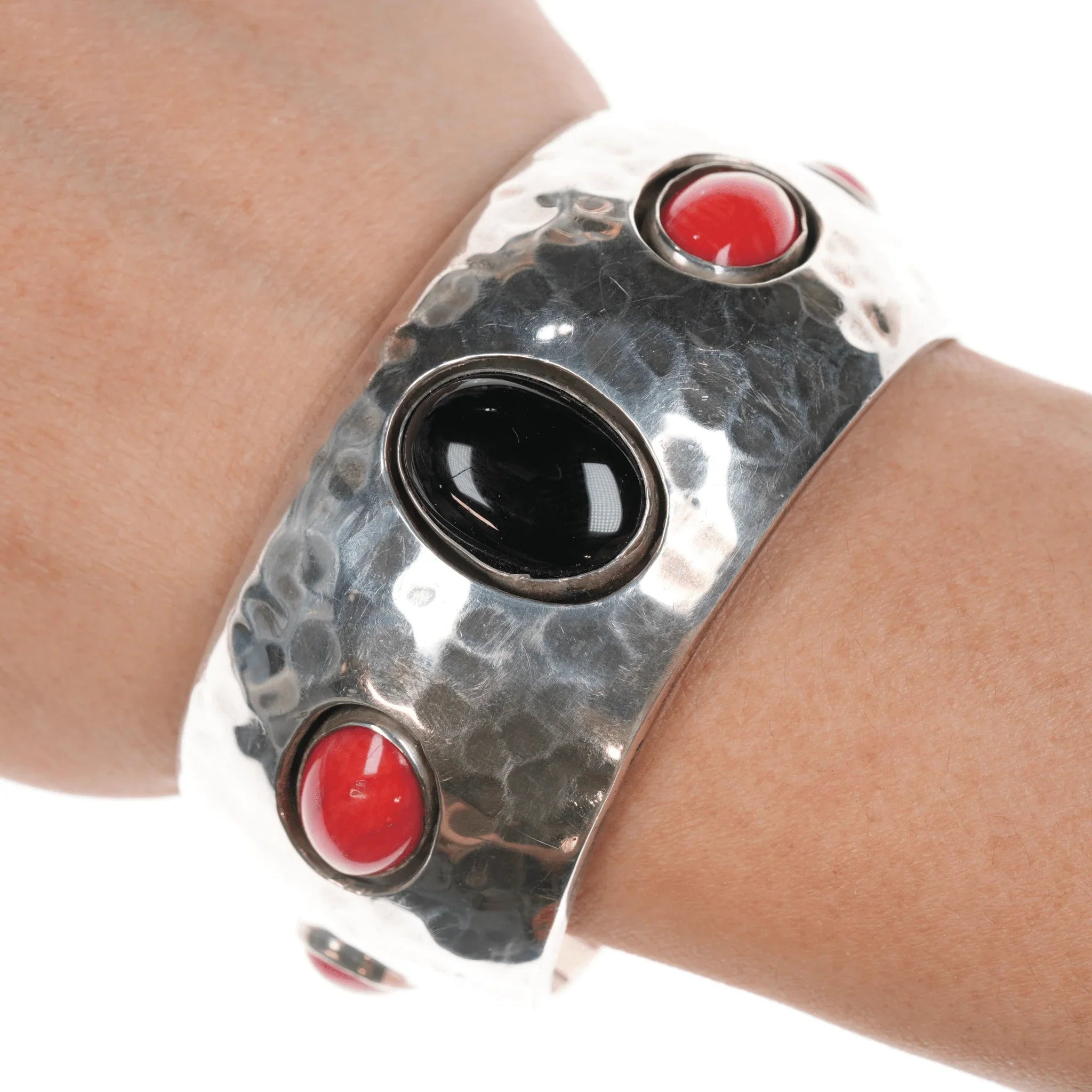 6.12" 1980's J Wright Southwestern modernist sterling onyx/red jasper cuff bracelet