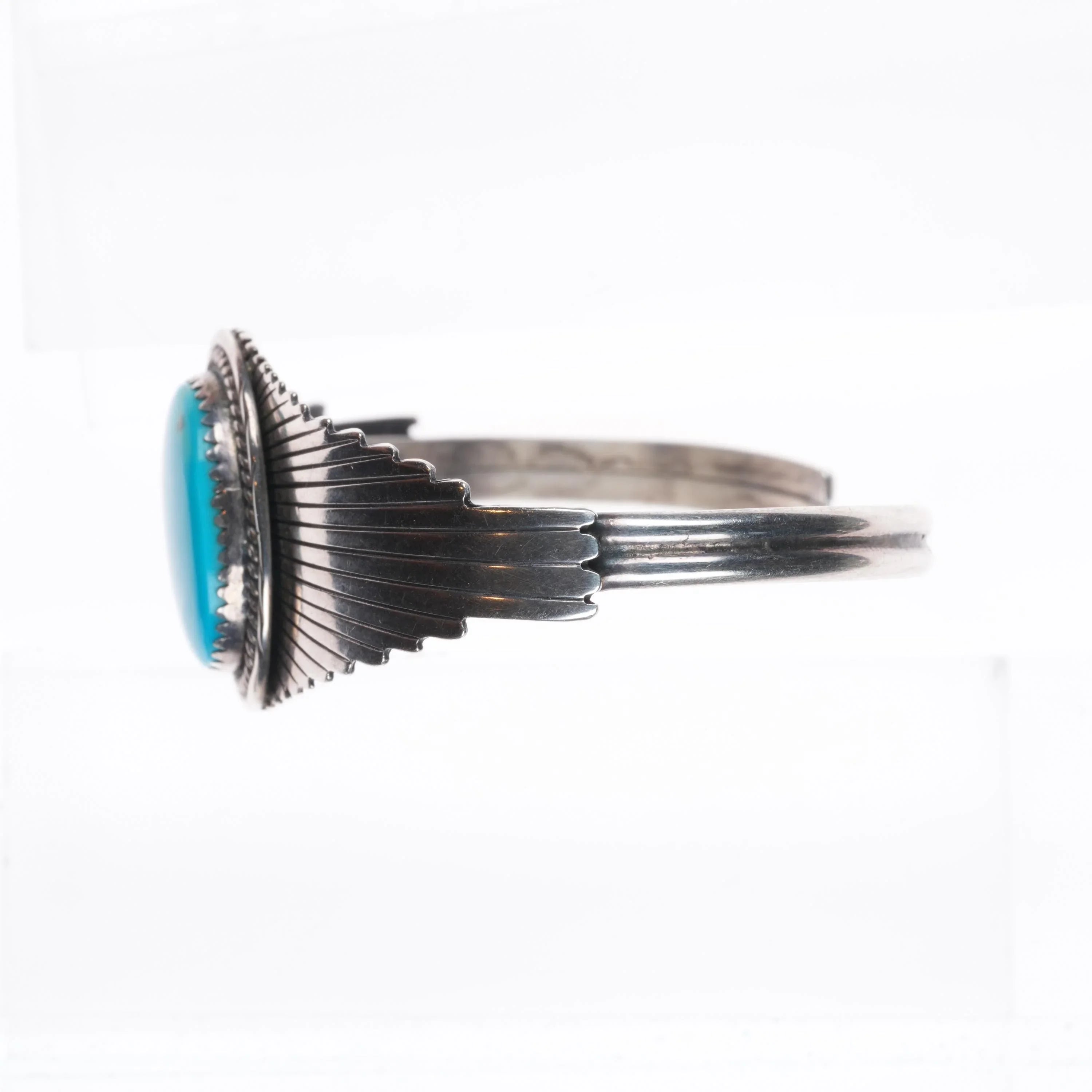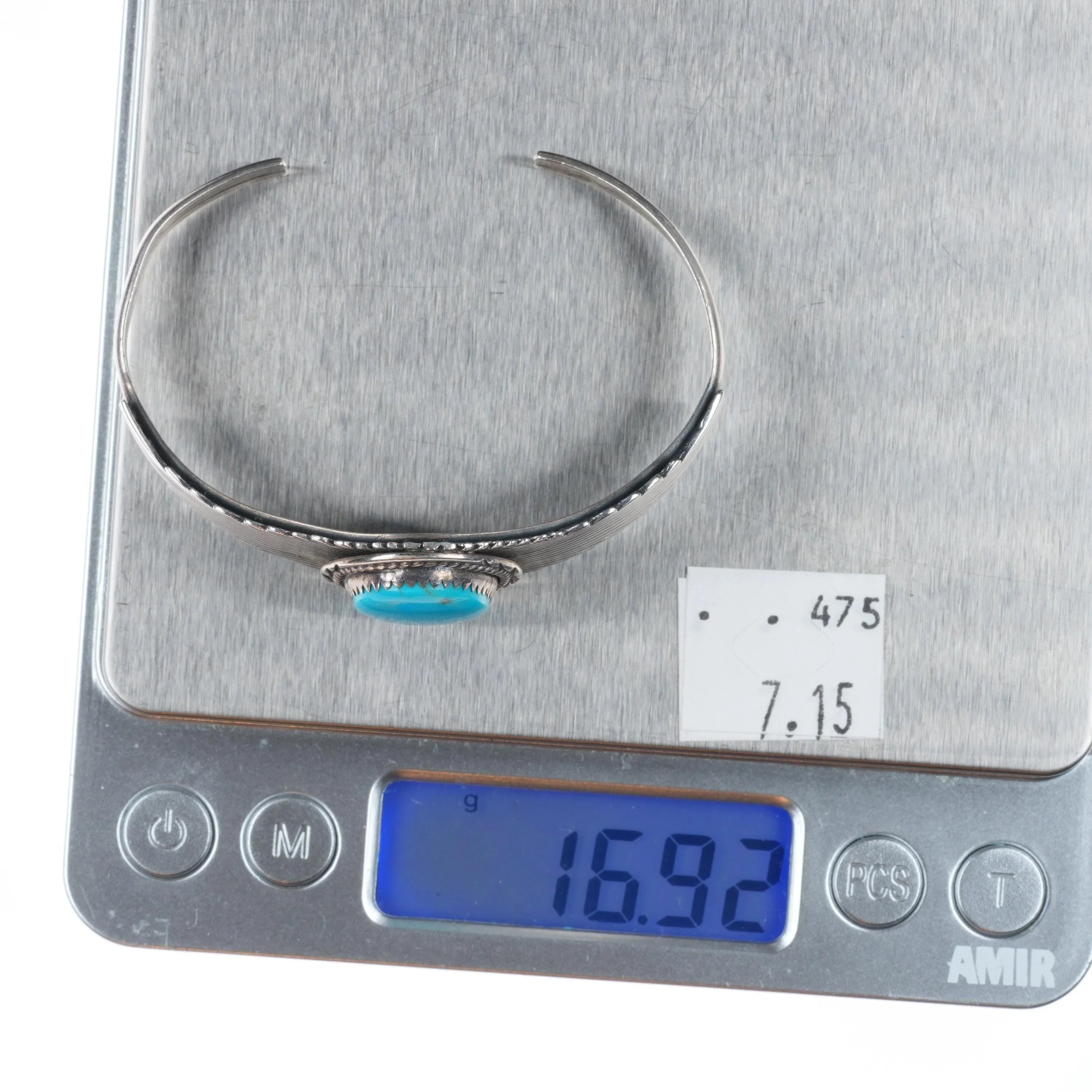 6.1" James Mason Navajo sterling silver cuff bracelet w/nice turquoise