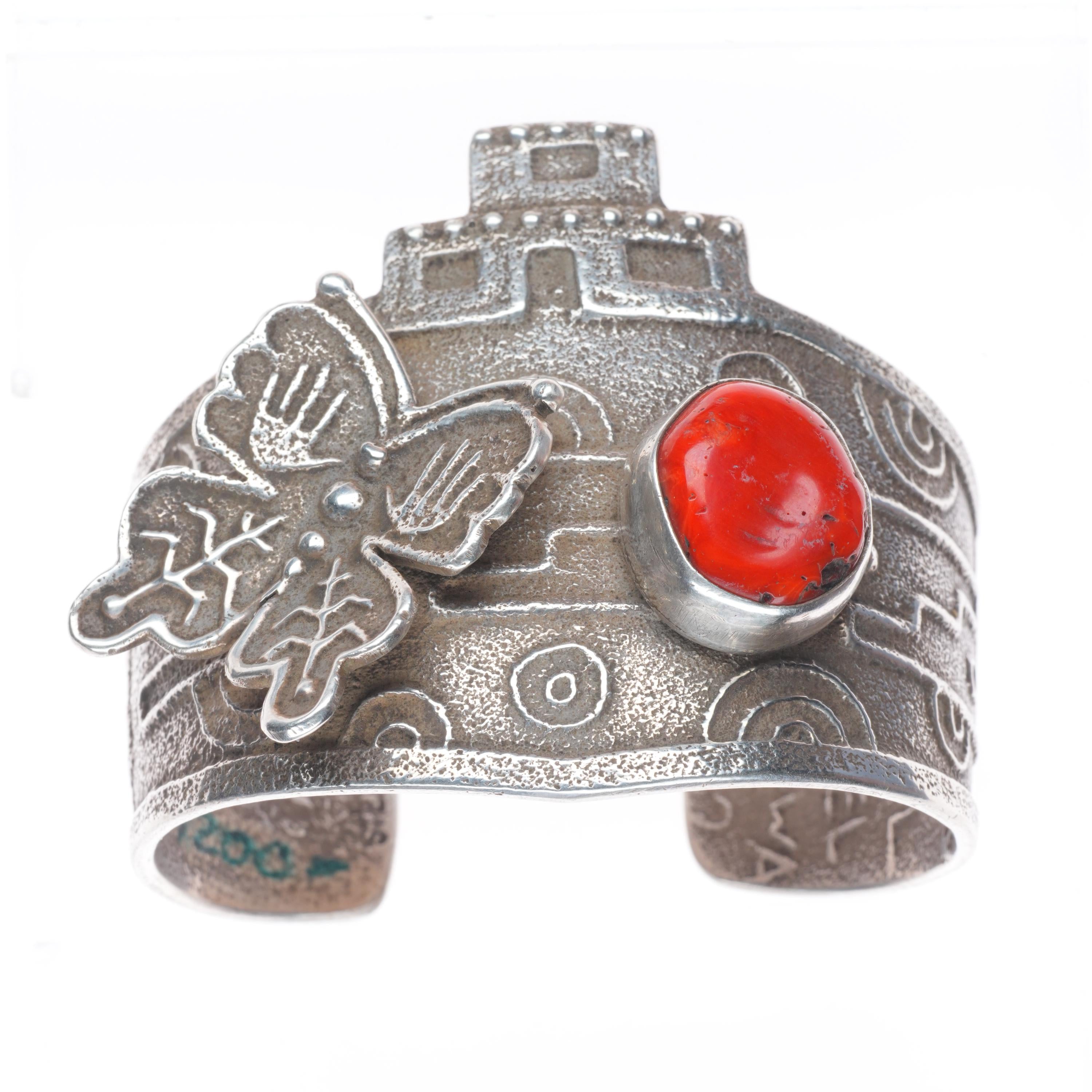 6.1" Joel Pajarito-Kewa Tufa Cast sterling silver butterfly Coral cuff bracelet. Tested and guaranteed solid sterling silver with weight and measurements in pictures. No issues, new old stock condition.