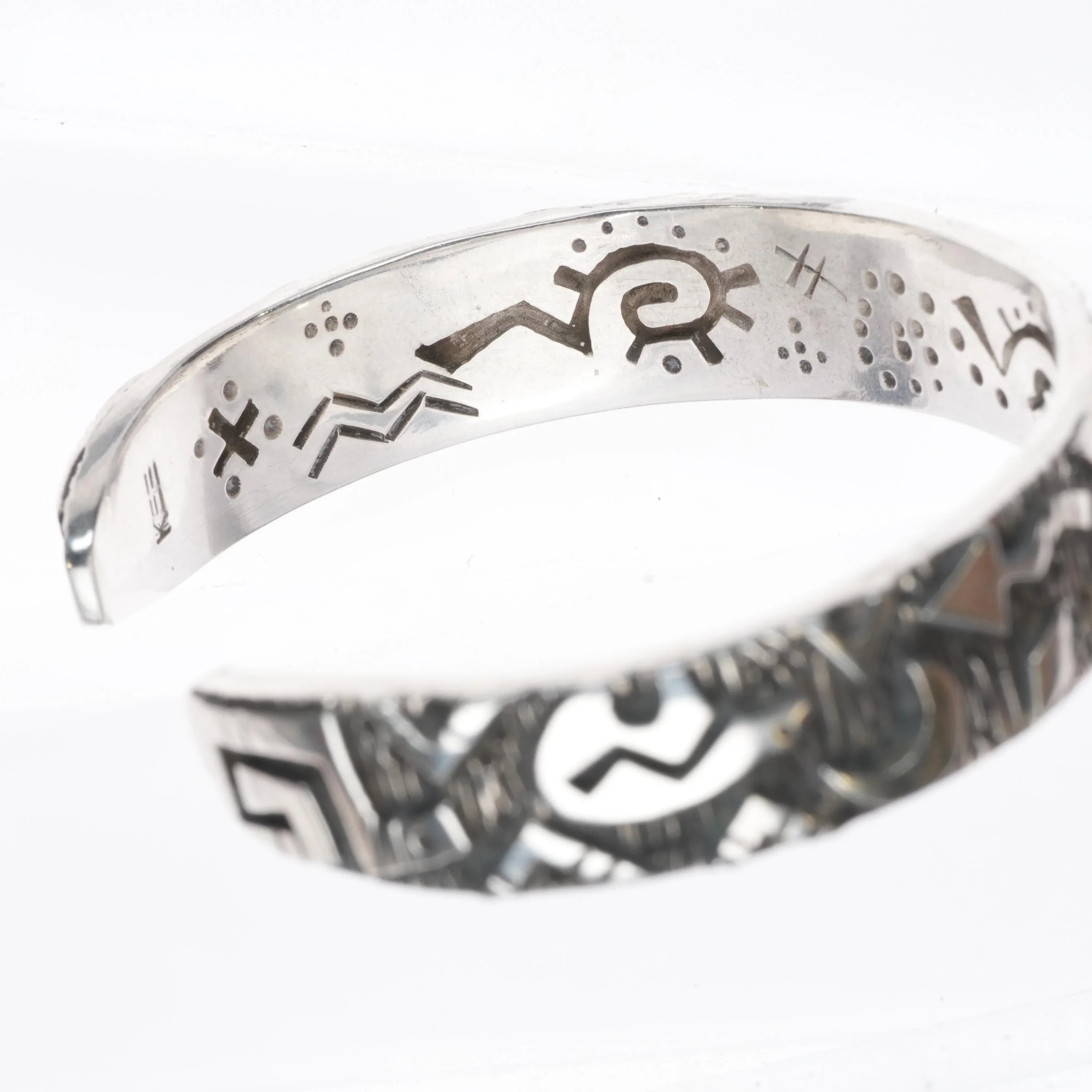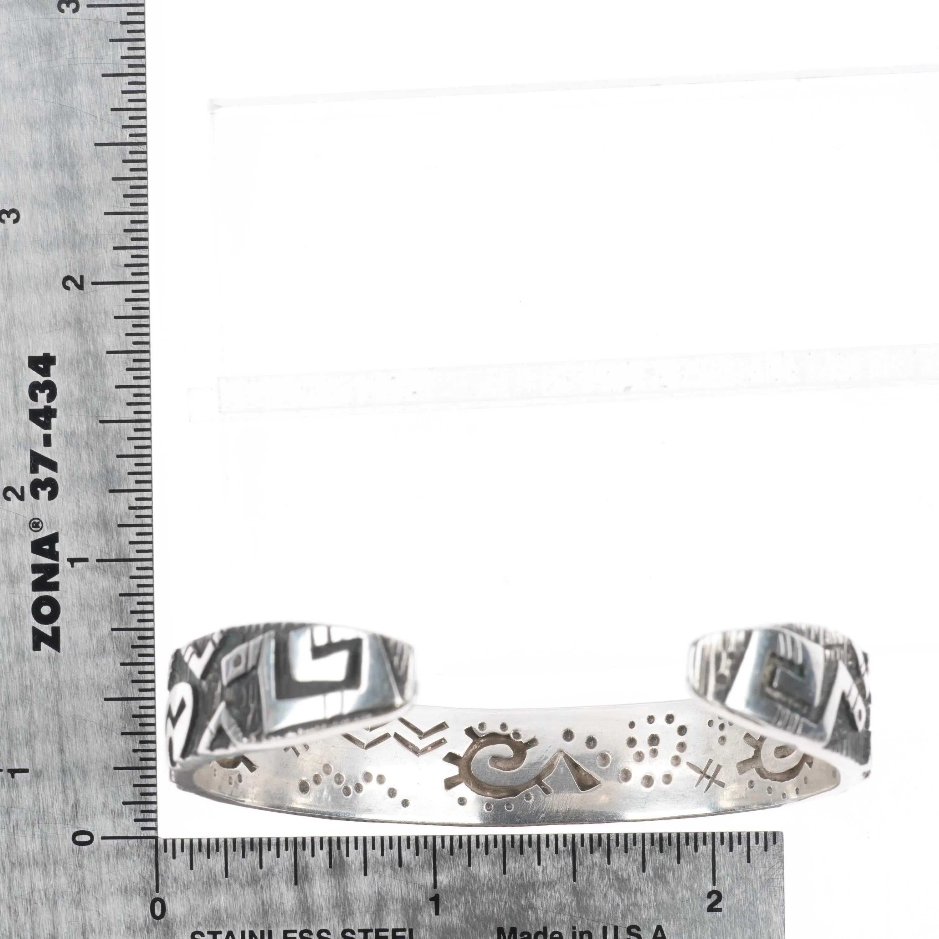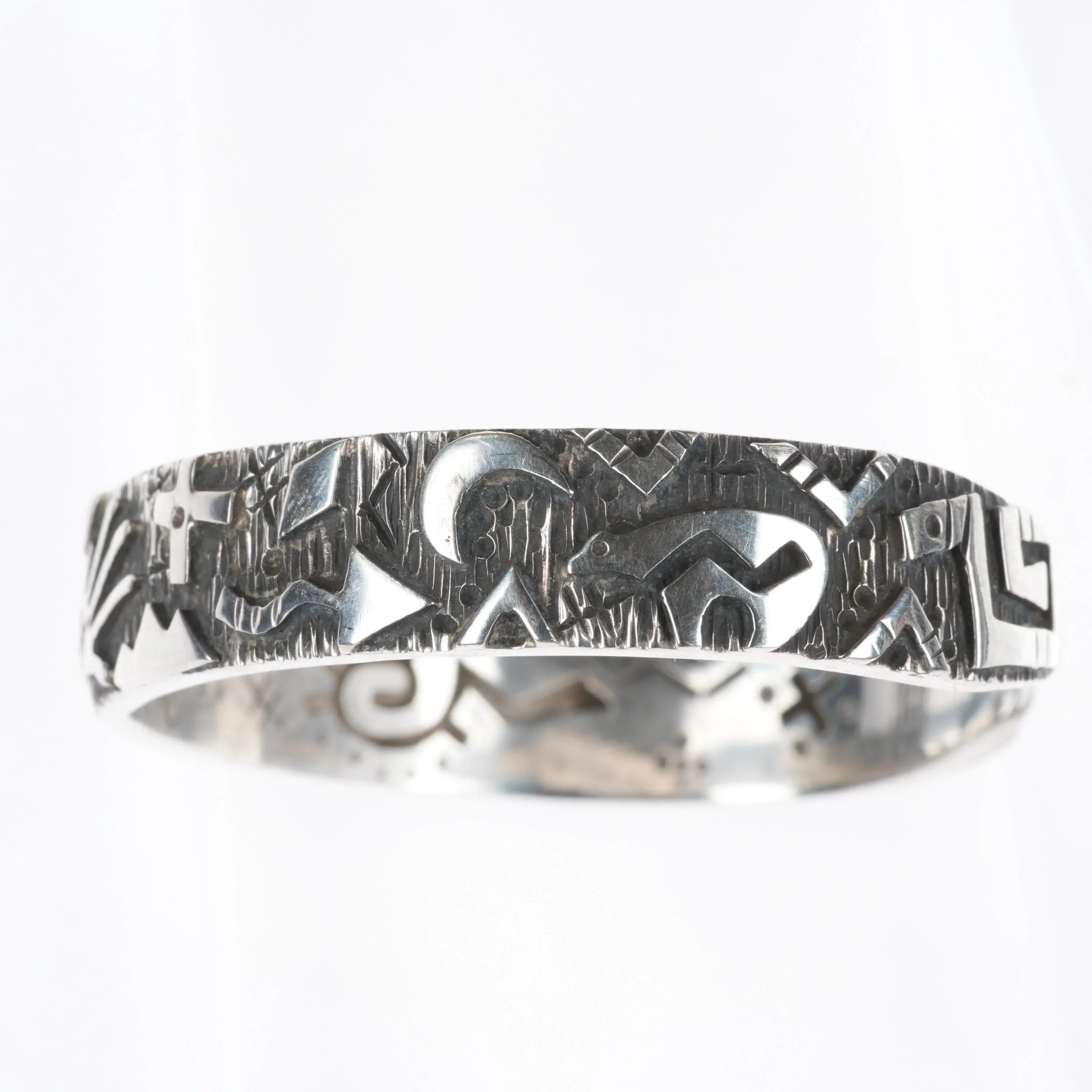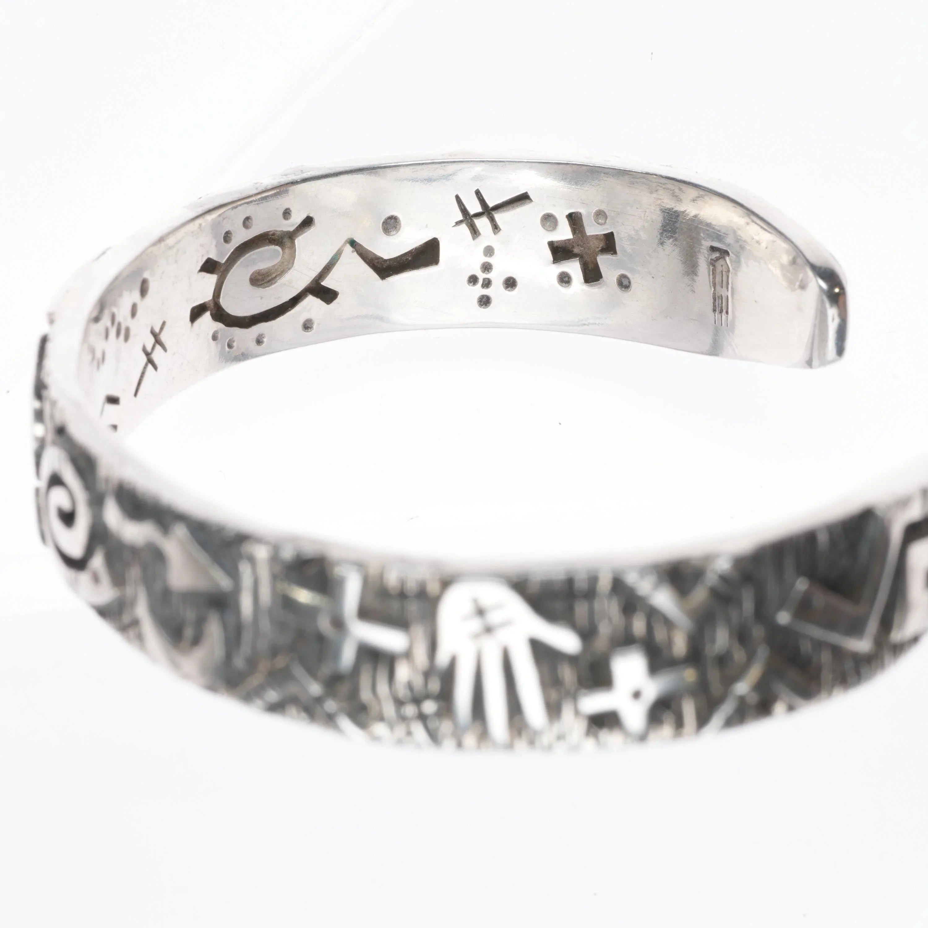 6.1" Kee Yazzie Navajo Petroglyph cuff bracelet sterling silver. Tested and guaranteed solid sterling silver. Weight and measurements in pictures. Good condition with no issues, appears to have been collected and likely never worn. Very high quality workmanship.