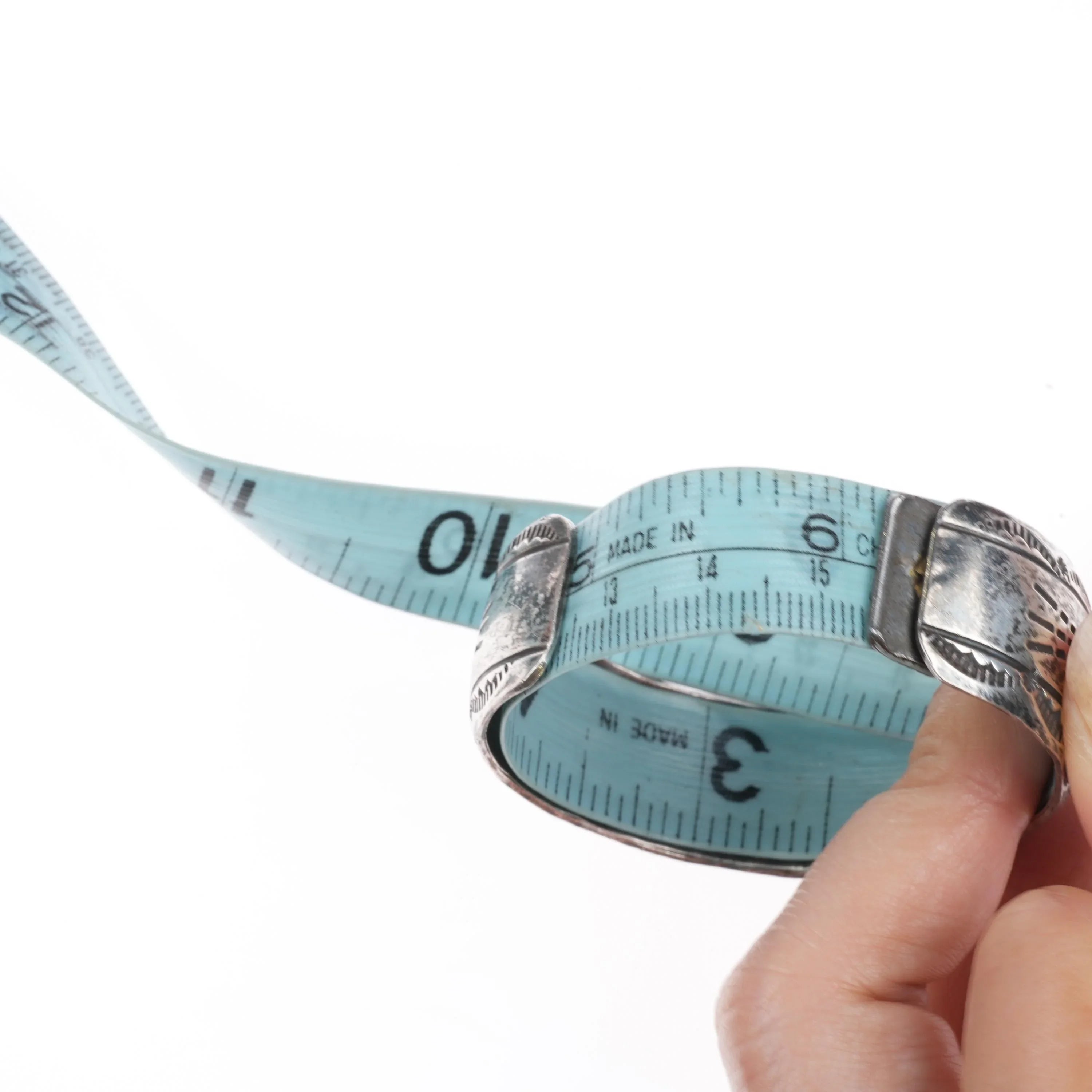 6.1" Nezzie Navajo sterling silver chip inlay cuff bracelet hand stamped edges