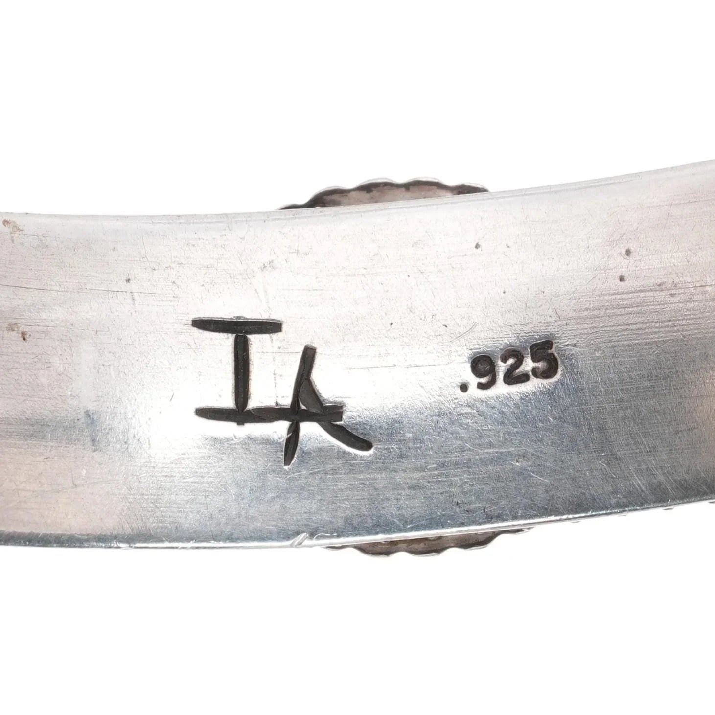 6.1" Southwestern sterling silver fancy cuff bracelet with nice turquoise. Weight and measurements in pictures, solid sterling silver. No damage, marked as shown. Fairly modern. Unsure of artist, didn‘t try to find out due to time limitations.