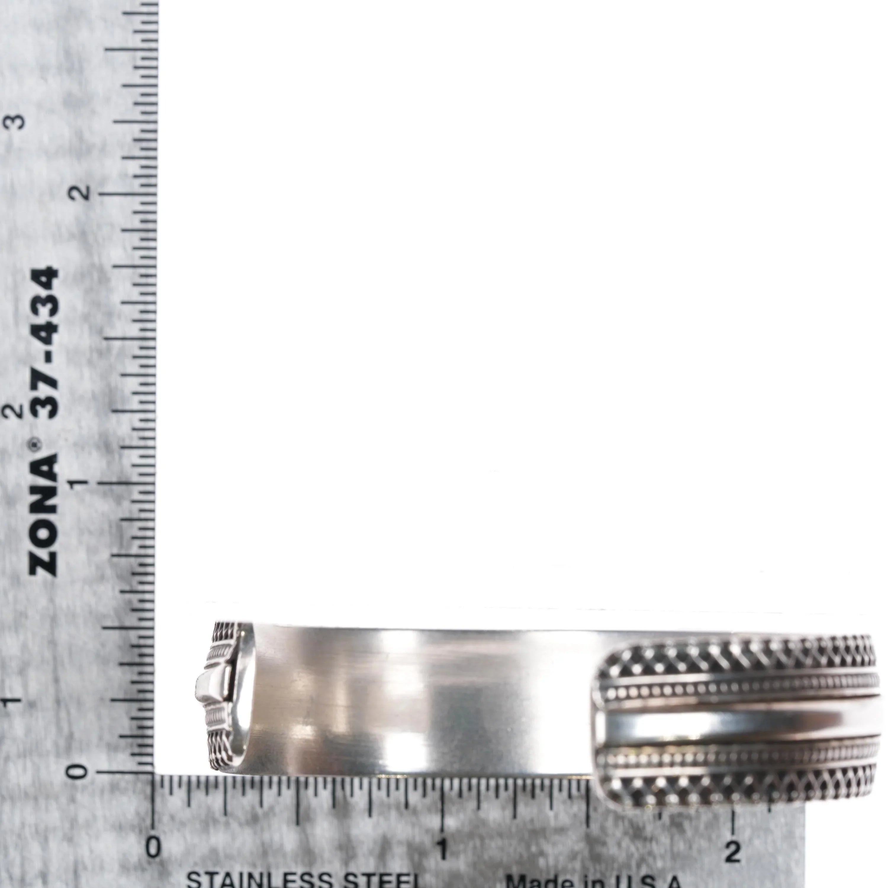 6.1" Southwestern sterling silver fancy cuff bracelet with nice turquoise